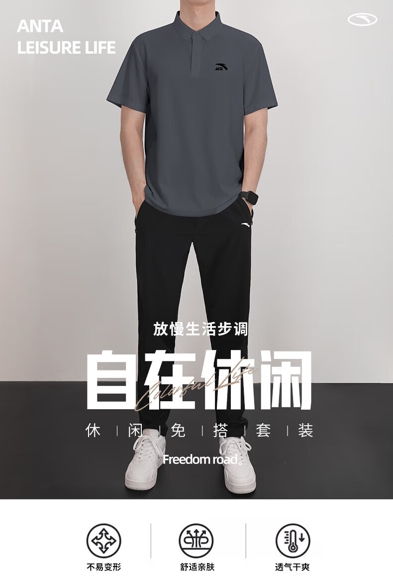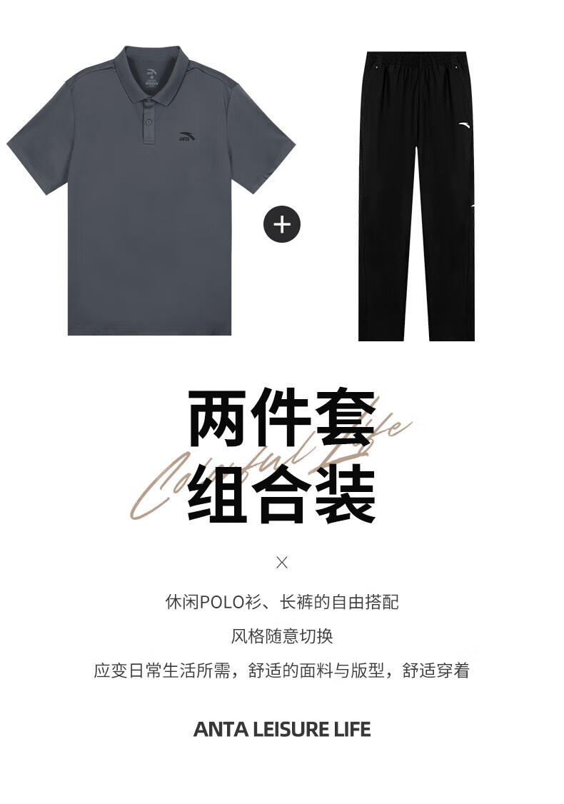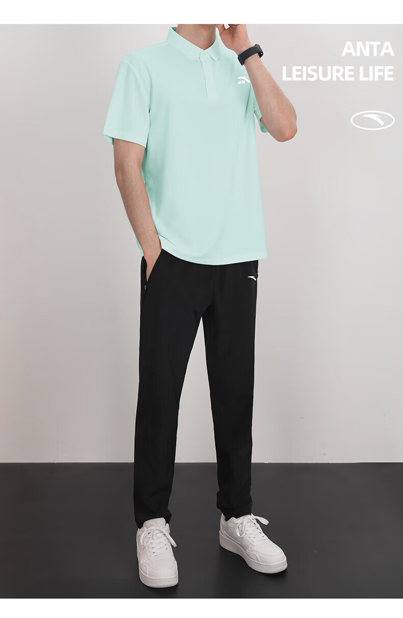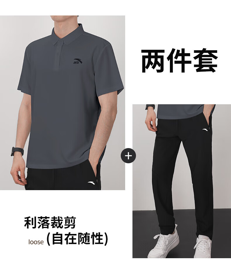ANTA Traje deportivo para hombres y mujeres, pantalones de invierno de seda de hielo de secado rápido, ropa deportiva para correr, uniformes de equipo de dos piezas para parejas, compra grupal - 7 Conjunto de dos piezas de polo + pantalón verde Oxford M/170