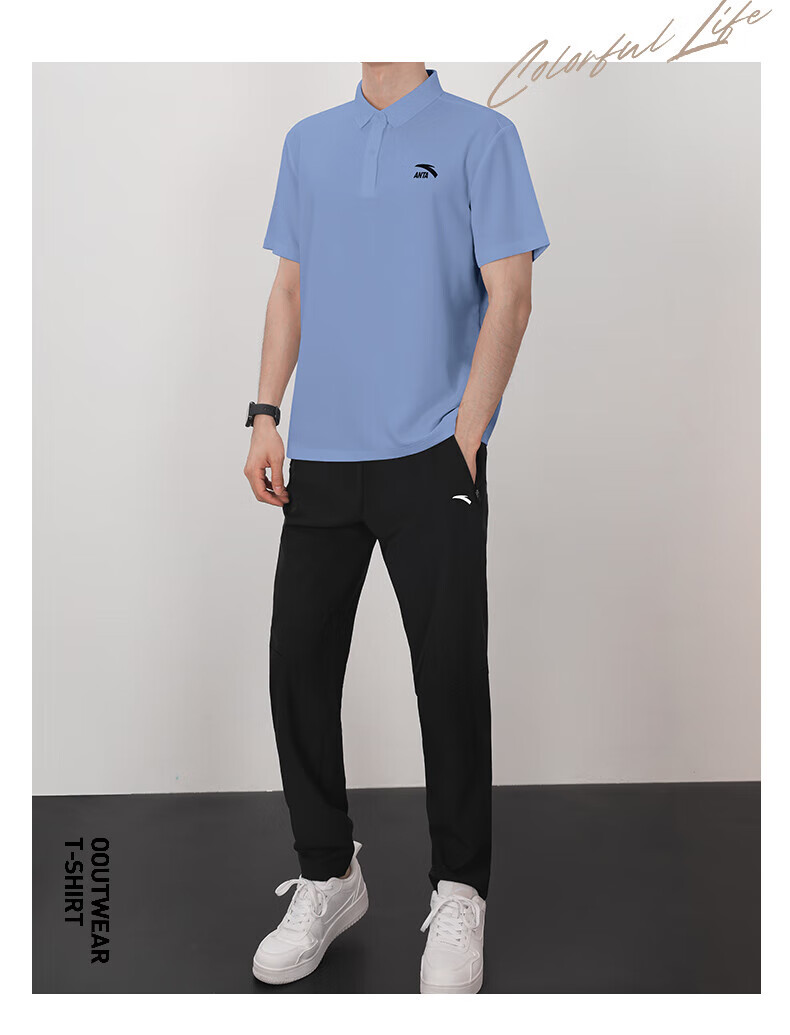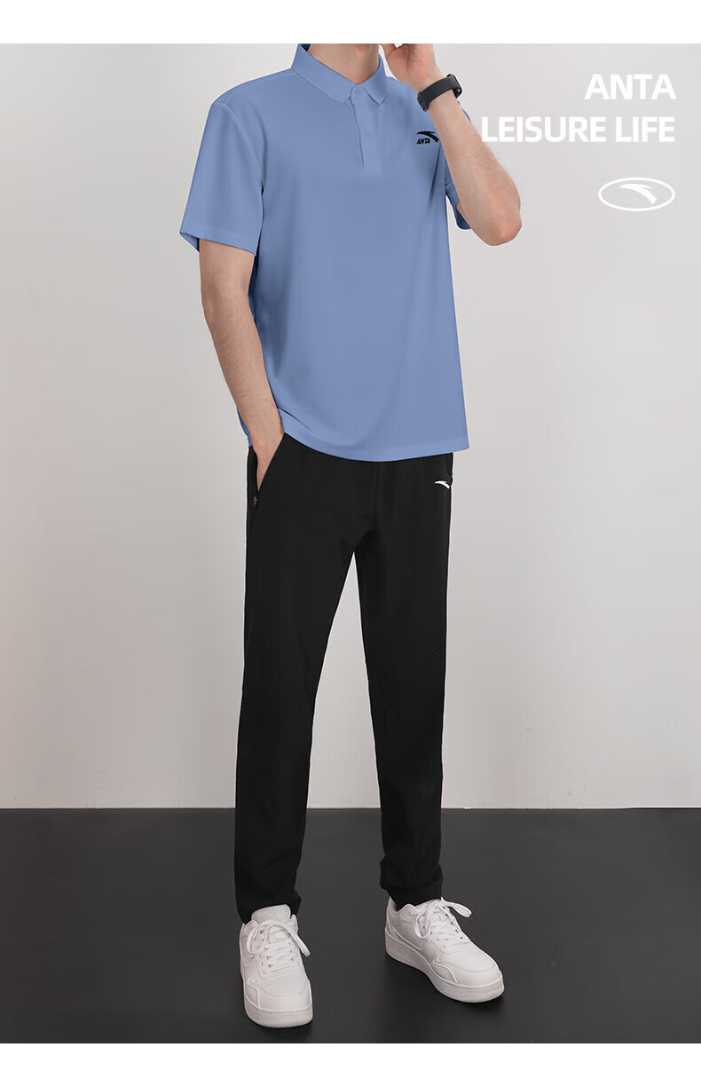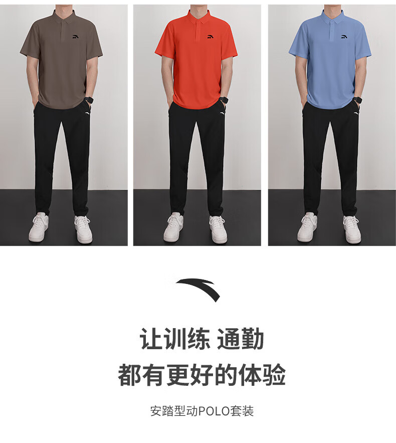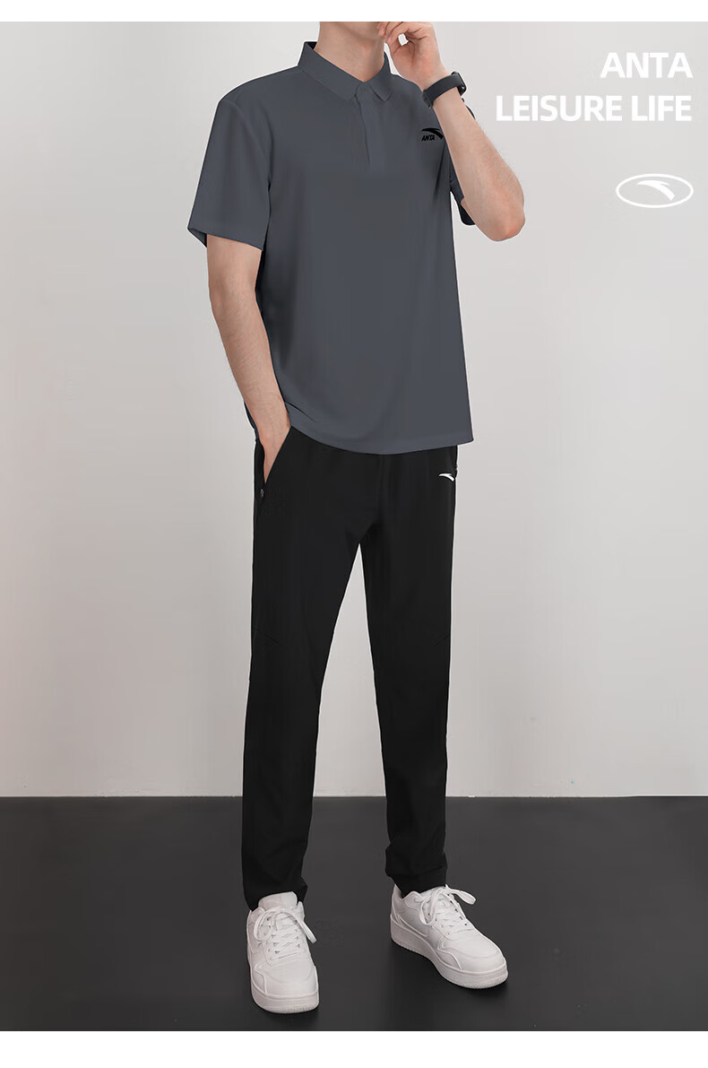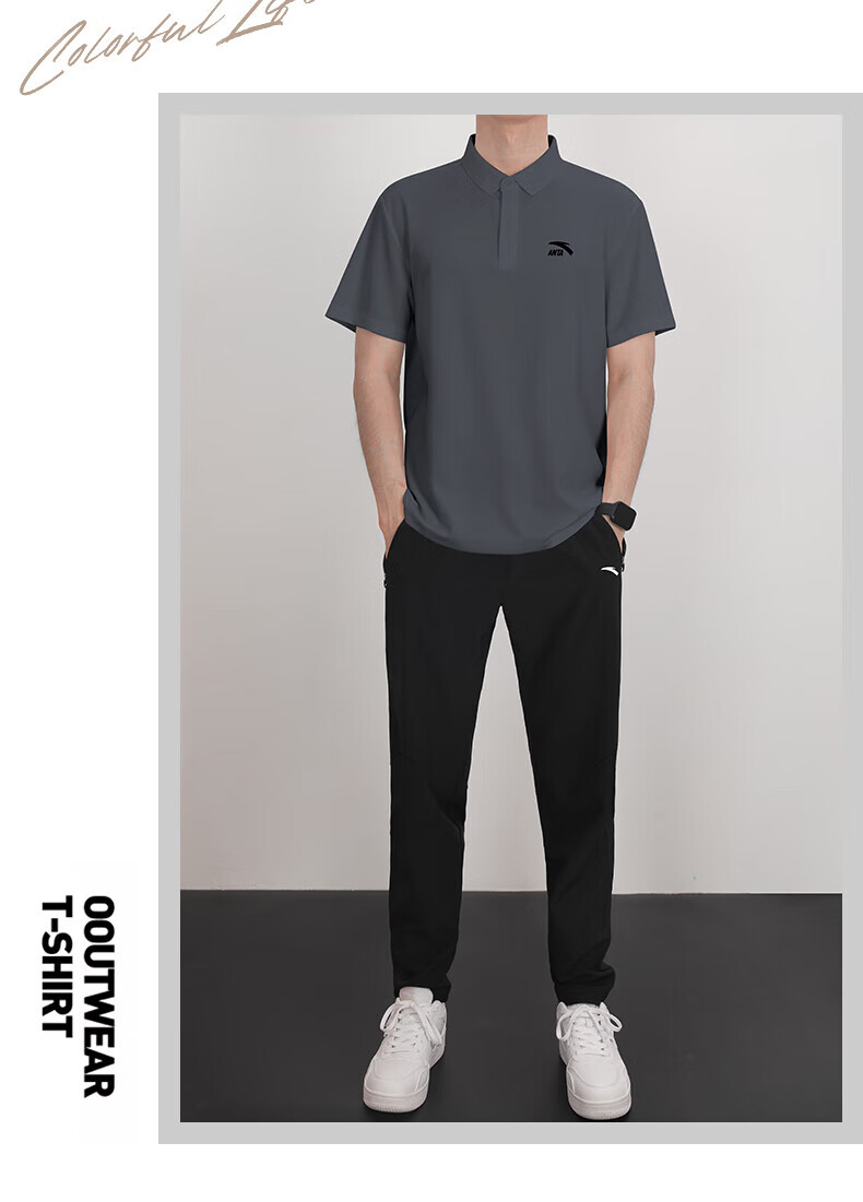 ANTA Traje deportivo para hombres y mujeres, pantalones de invierno de seda de hielo de secado rápido, ropa deportiva para correr, uniformes de equipo de dos piezas para parejas, compra grupal - 7 Conjunto de dos piezas de polo + pantalón verde Oxford M/170
