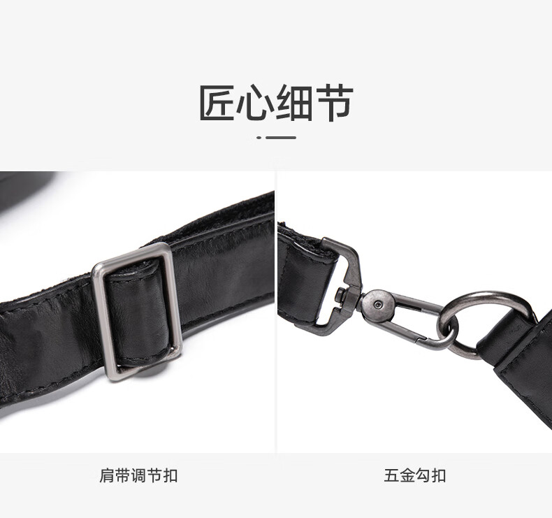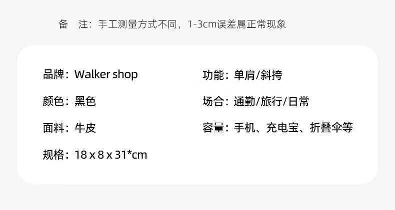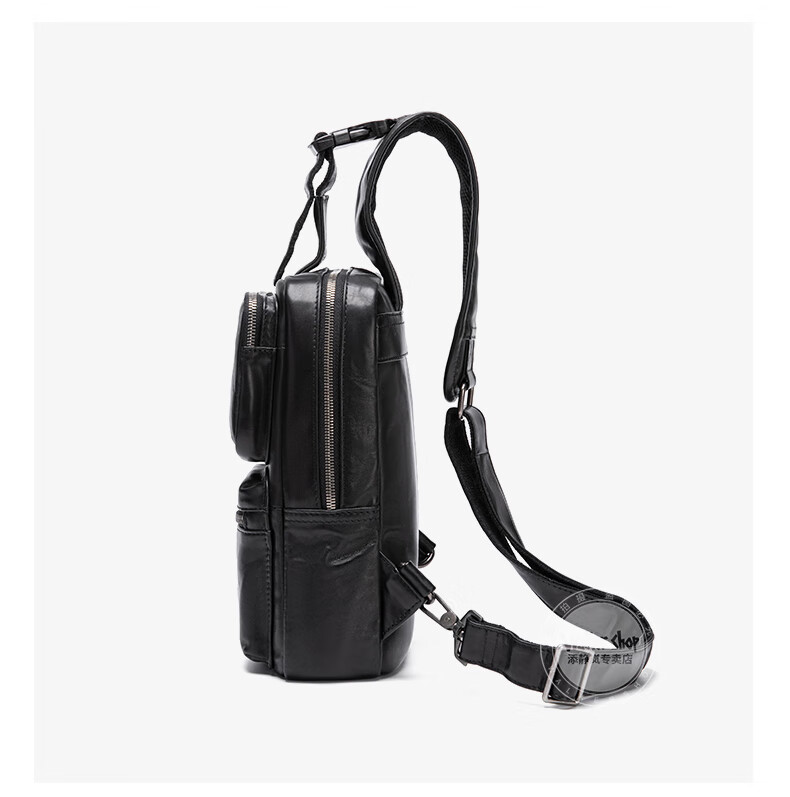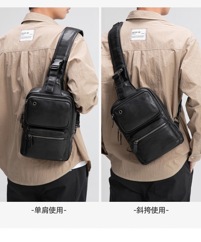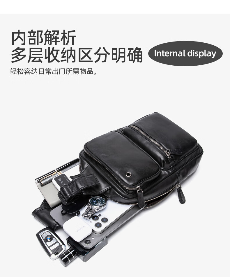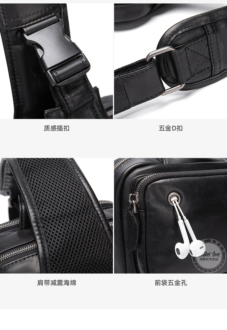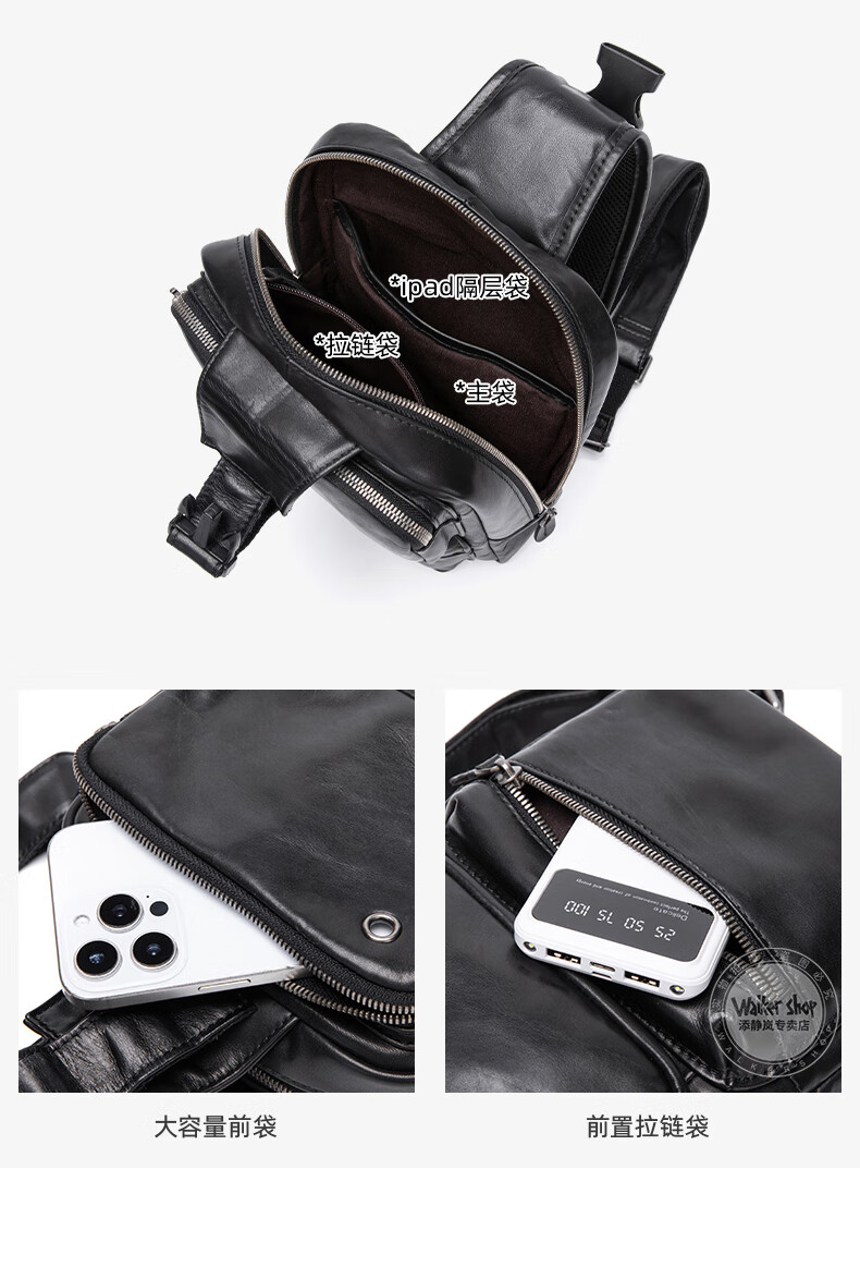 Walker Shop胸包男士【头层牛皮面料】休闲潮流单肩包青年时尚男士斜跨包 黑色 31cm*8cm*18cm