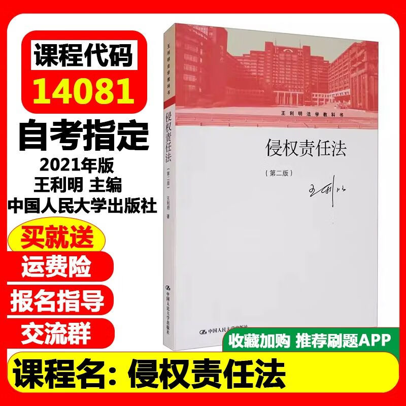福建自考教材 14081侵权责任法第二版 王利明 2021年版 中国人民大学出版社 97873002 【福建】自考教材