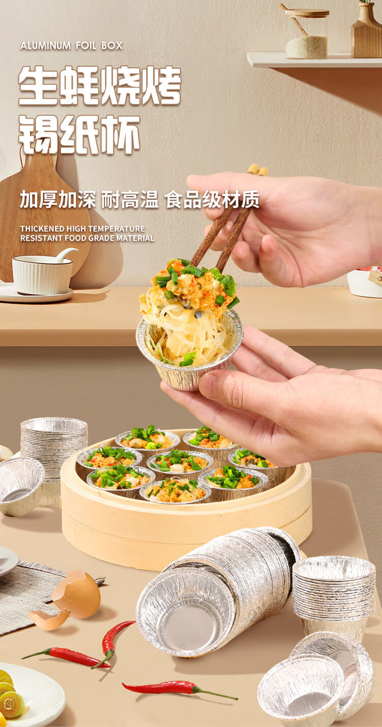 蛋挞锡纸托生蚝托蒸锅用发糕碗蛋糕模具蛋挞杯一次性锡纸材质耐高 14081(中)口径8CM生蚝碗 50个装