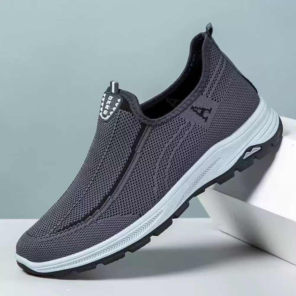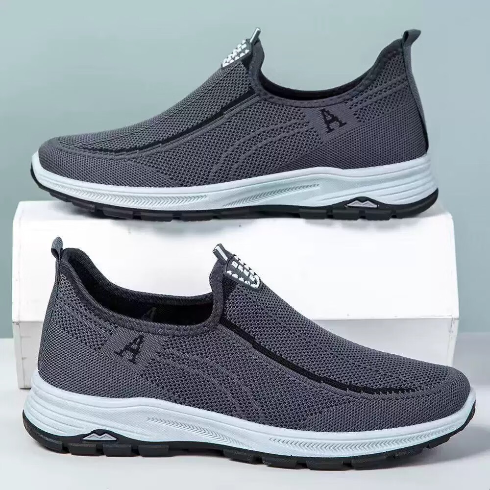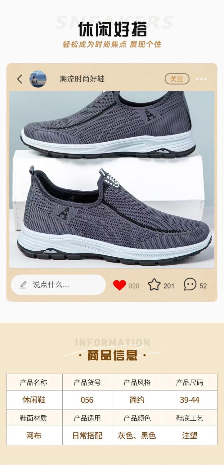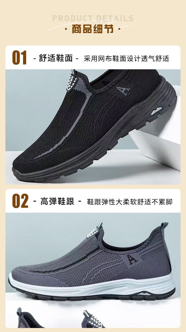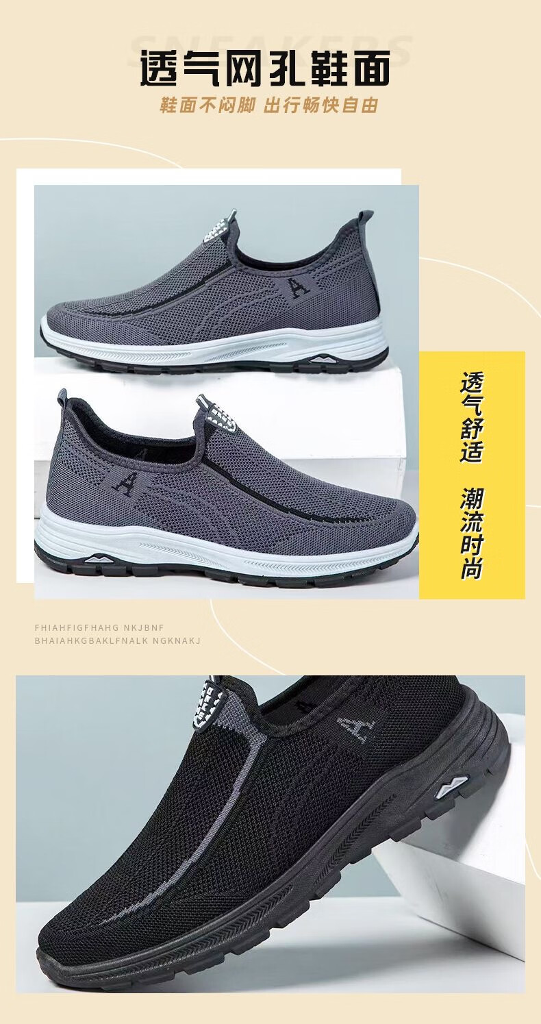 老北京布鞋男鞋夏季老人鞋休闲网眼网面透气中老年人爸爸健步鞋 056-灰色 41