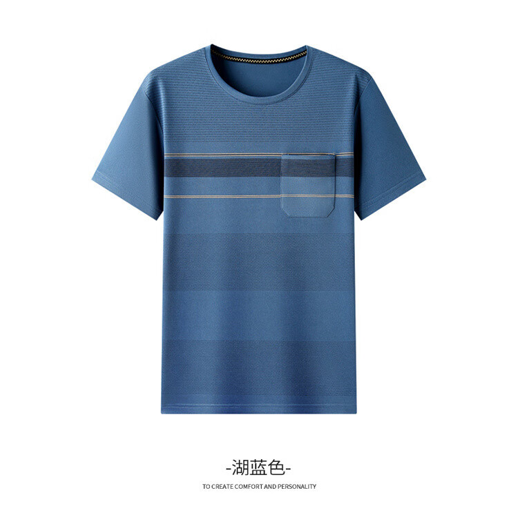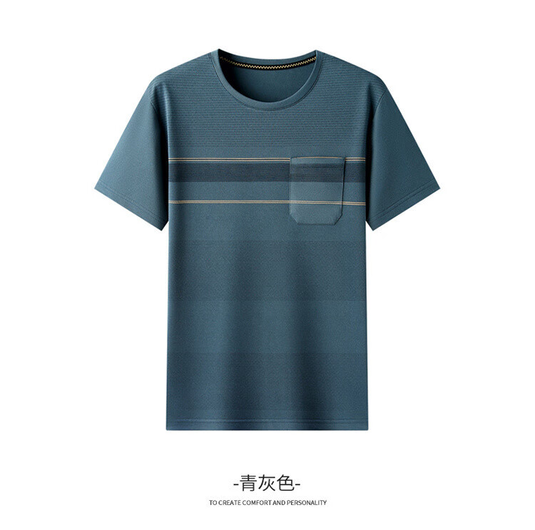 Kangaroo (DAISHU) skin-friendly silky middle-aged men's T-shirt summer fashion ice silk pocket dad summer round neck casual sports suit single piece 691 cleaning 4XL /190