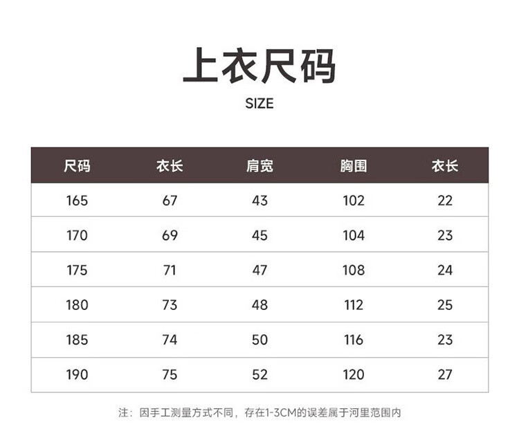 China (cm) 165 / 88-90 170 / 96-98 175 / 108-110 180 / 118-122 185 / 126-130