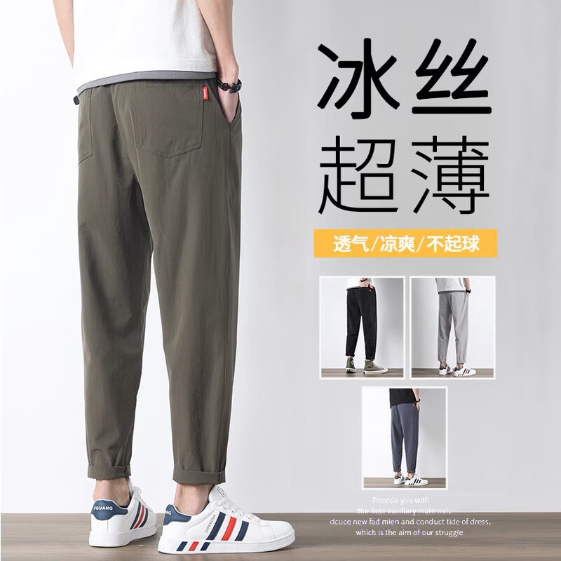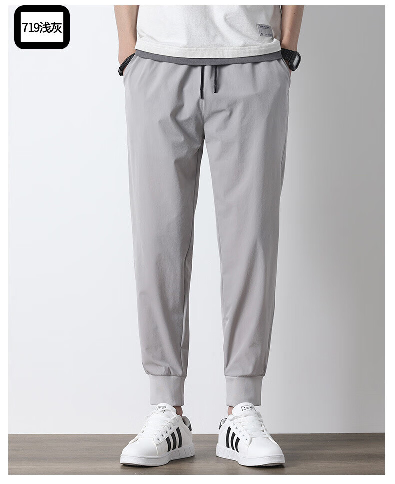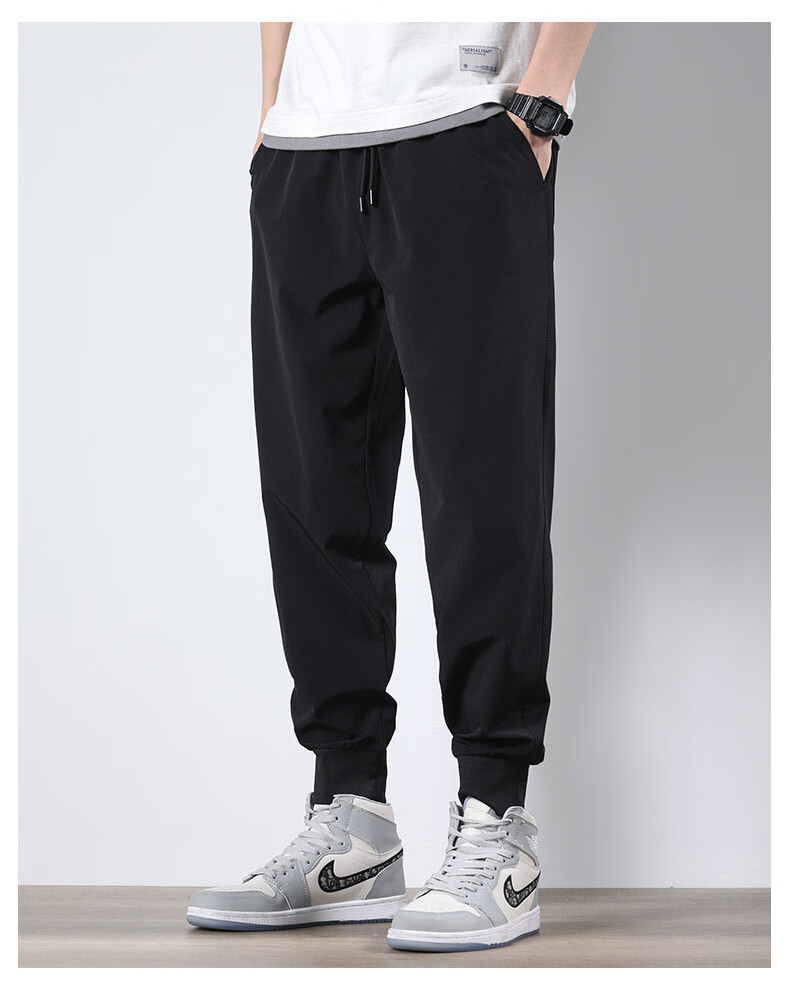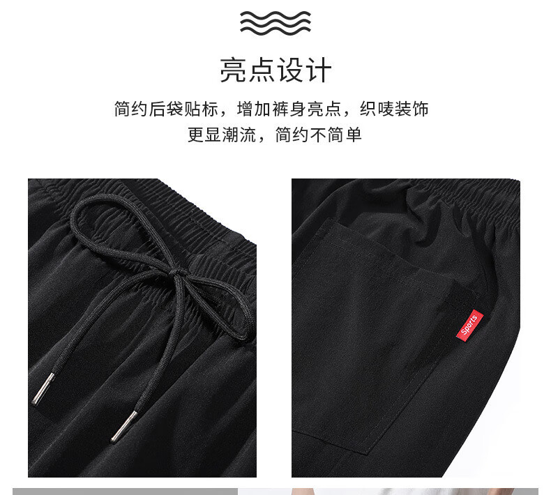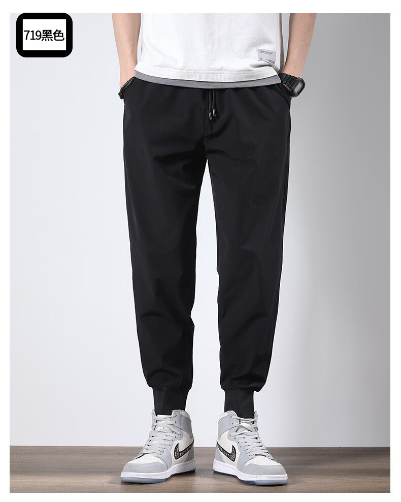 袋鼠(DAISHU)亲肤丝滑【多人收藏】运动裤男夏季夏天九分新款冰丝薄款 718黑色平脚+719黑色束脚 2条装 M 90-110斤