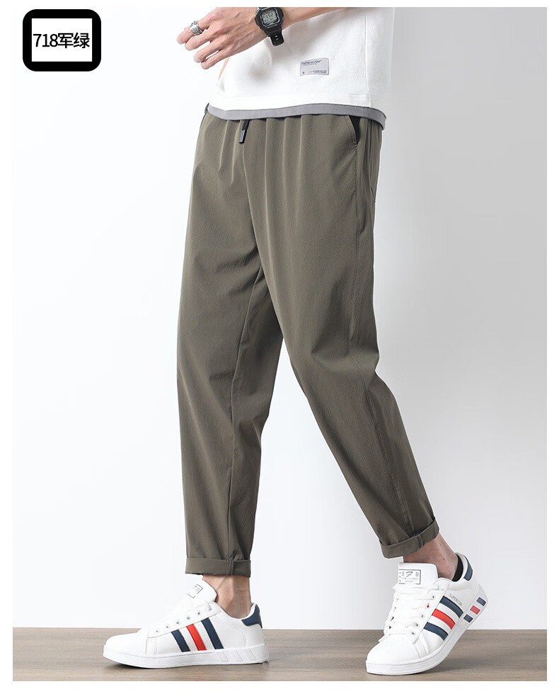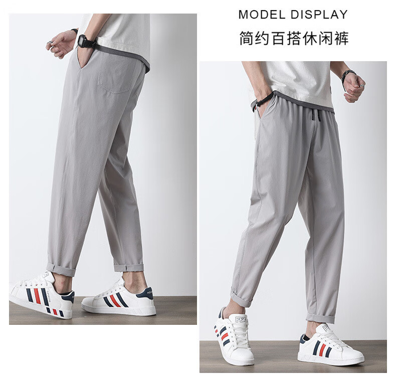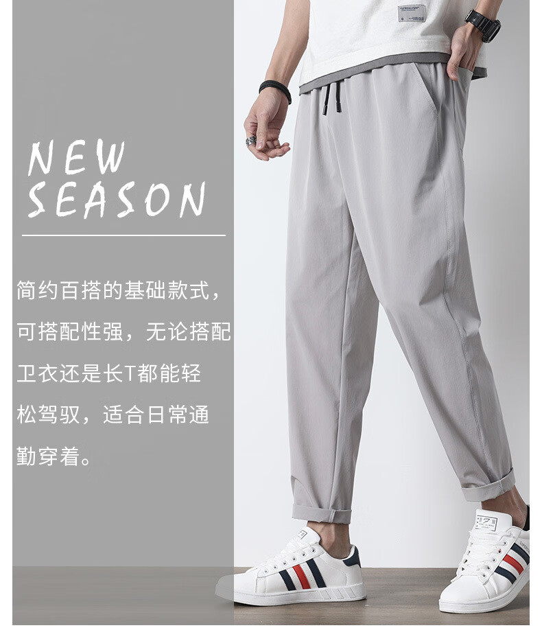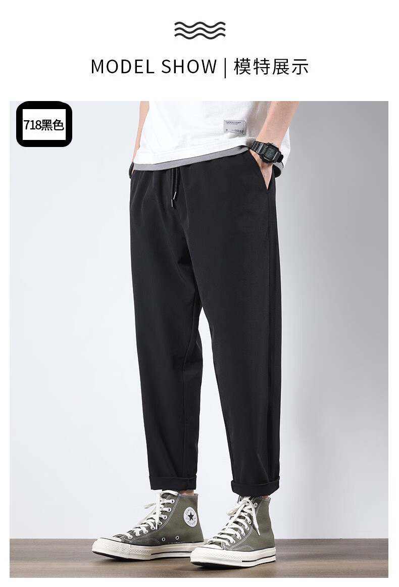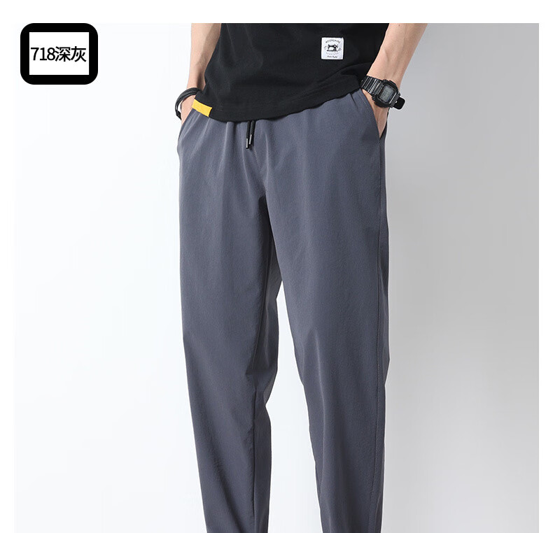 袋鼠(DAISHU)亲肤丝滑【多人收藏】运动裤男夏季夏天九分新款冰丝薄款 718黑色平脚+719黑色束脚 2条装 M 90-110斤