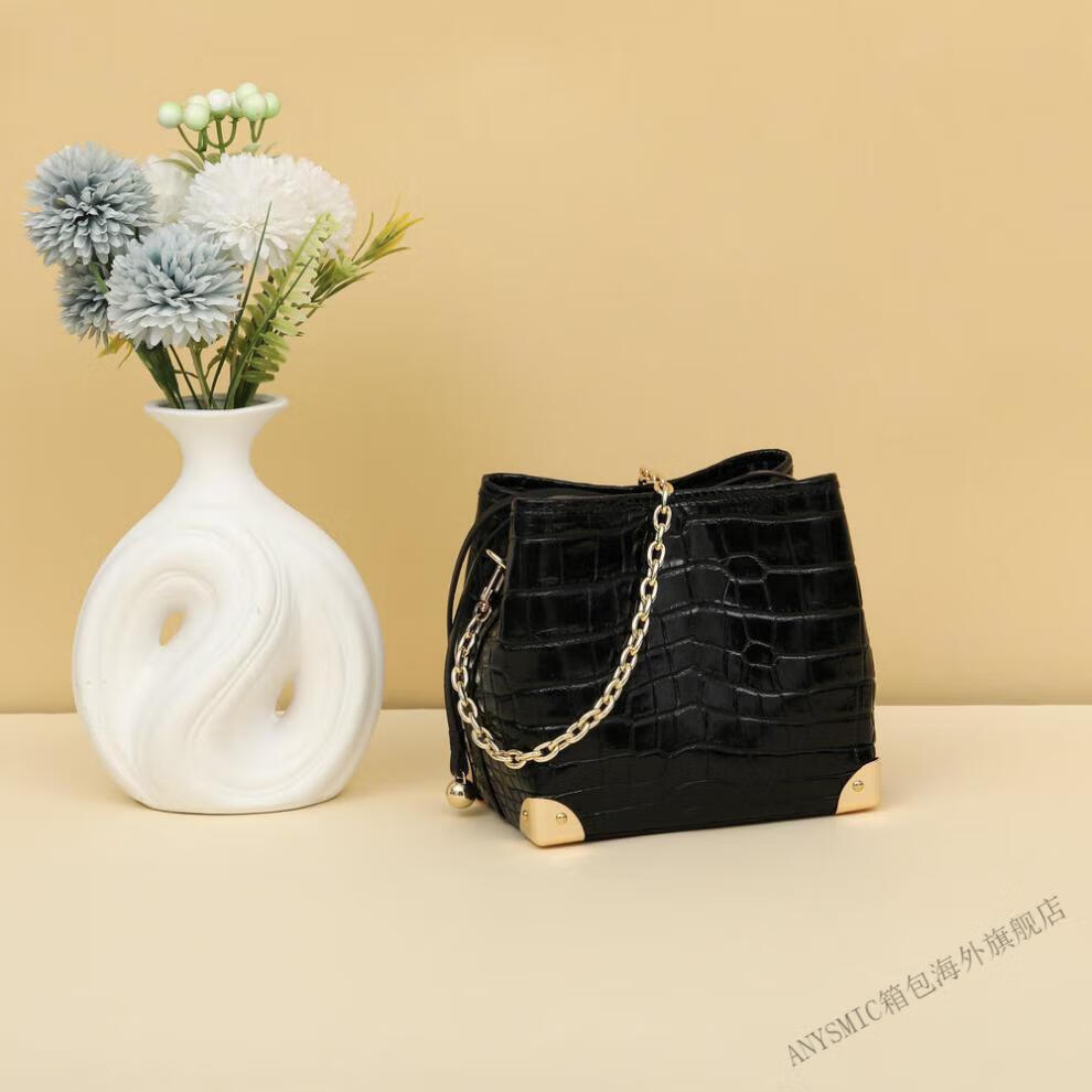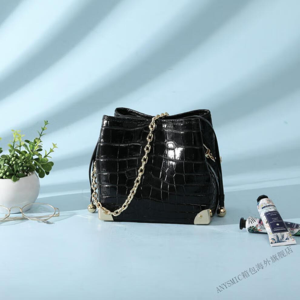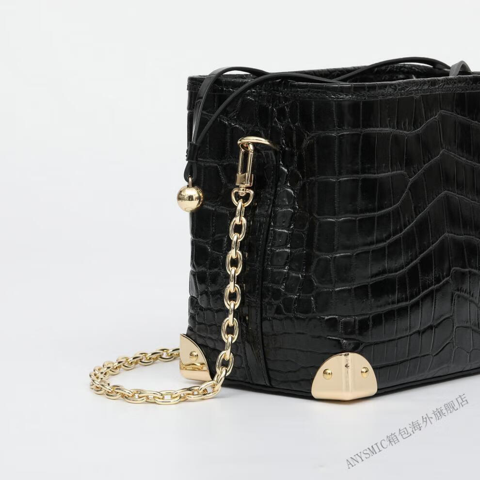 ANYSMIC官方正品包包奢侈品牌女包2025新款鳄鱼皮斜挎包女士包送女友老婆 黑色【礼盒包装】