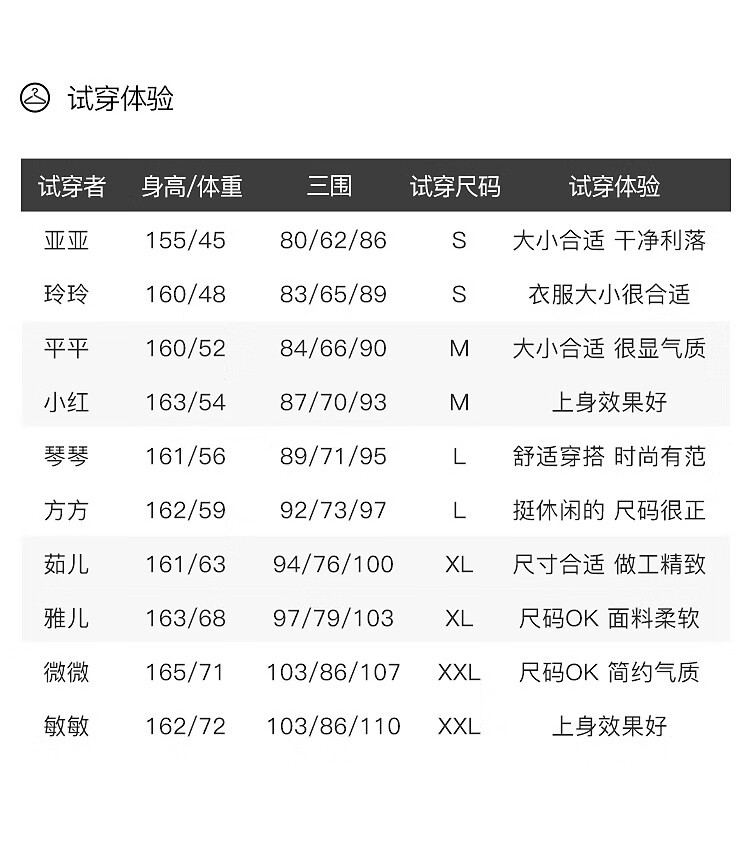 China (cm) 160-165/84-86 165-170 / 88-90 167-172 / 92-96 168-173 / 98-102 170-176 / 106-110