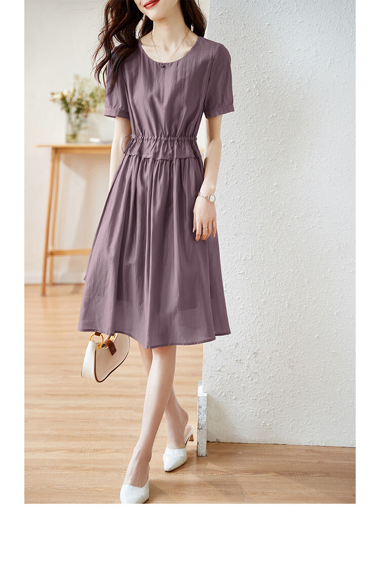 Ehangy国际大牌女装轻奢高端连衣裙夏季新款圆领短袖收腰显瘦气质长裙子 浅紫色【高端礼盒】 L