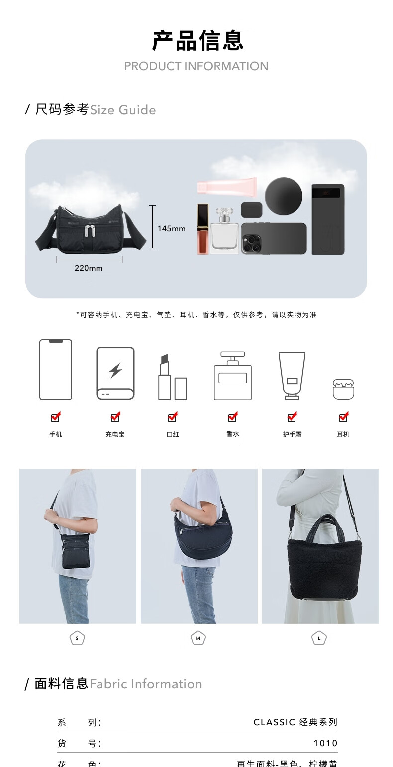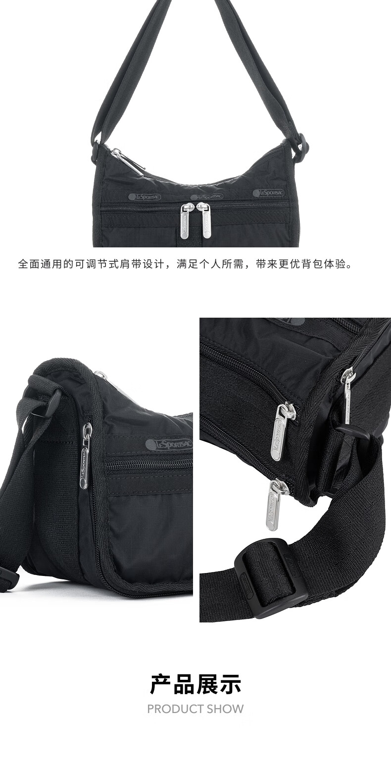 LeSportsac乐播诗CLASSIC系列百搭马鞍包多隔层单肩斜挎包送女生礼物 再生面料-黑色