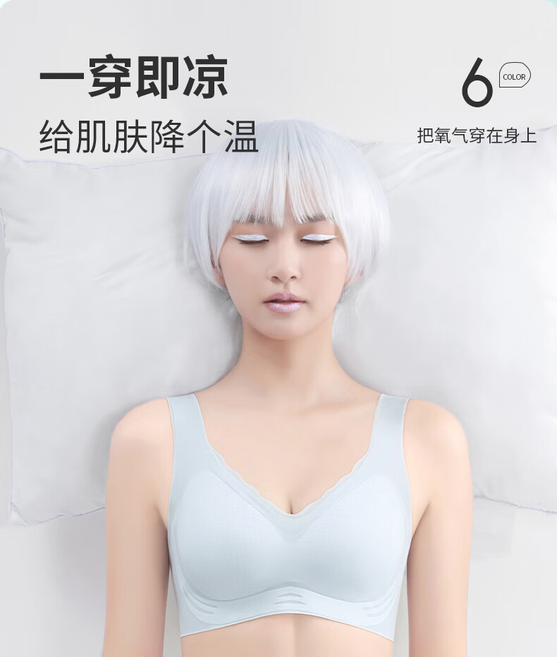 俞兆林女士内衣女夏季薄款冰丝透气无痕收副乳聚拢小胸显大无钢圈文胸罩 浅蓝+香槟【2件装】可备注颜色 L 【80ABC 体重105-120斤】