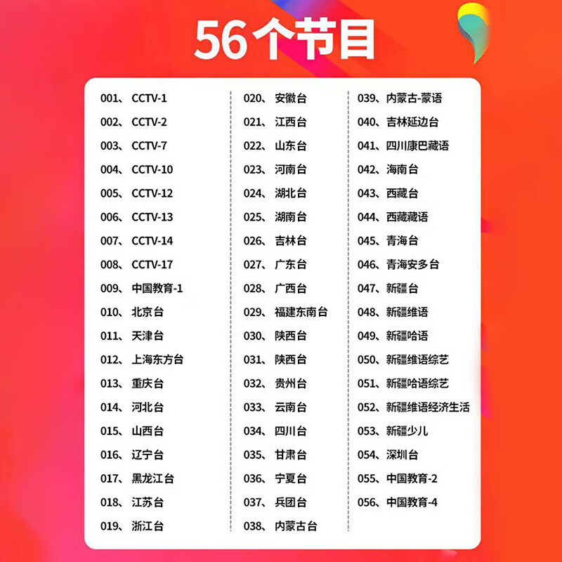 冉星辰全套户户通电视免费接收器农村专用全套高清城乡户户通用机顶盒无需网络看电视高清数字接收机 56个节目【三色接口】无需网络
