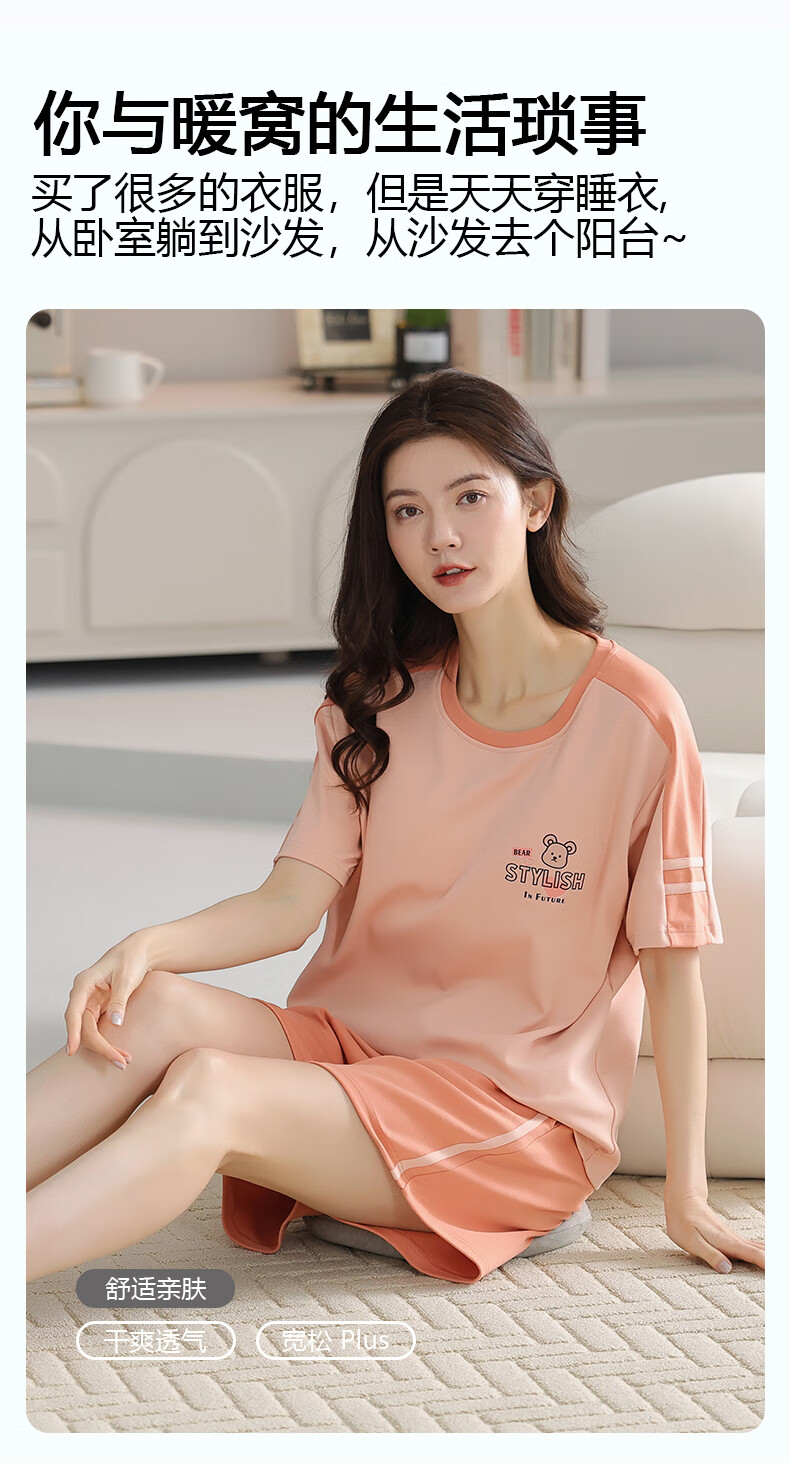 莫代尔仿丝纯棉夏季睡衣女士套头睡衣夏季短袖短裤舒适休闲家居服套装 Z9854 M [建议80-100斤穿]