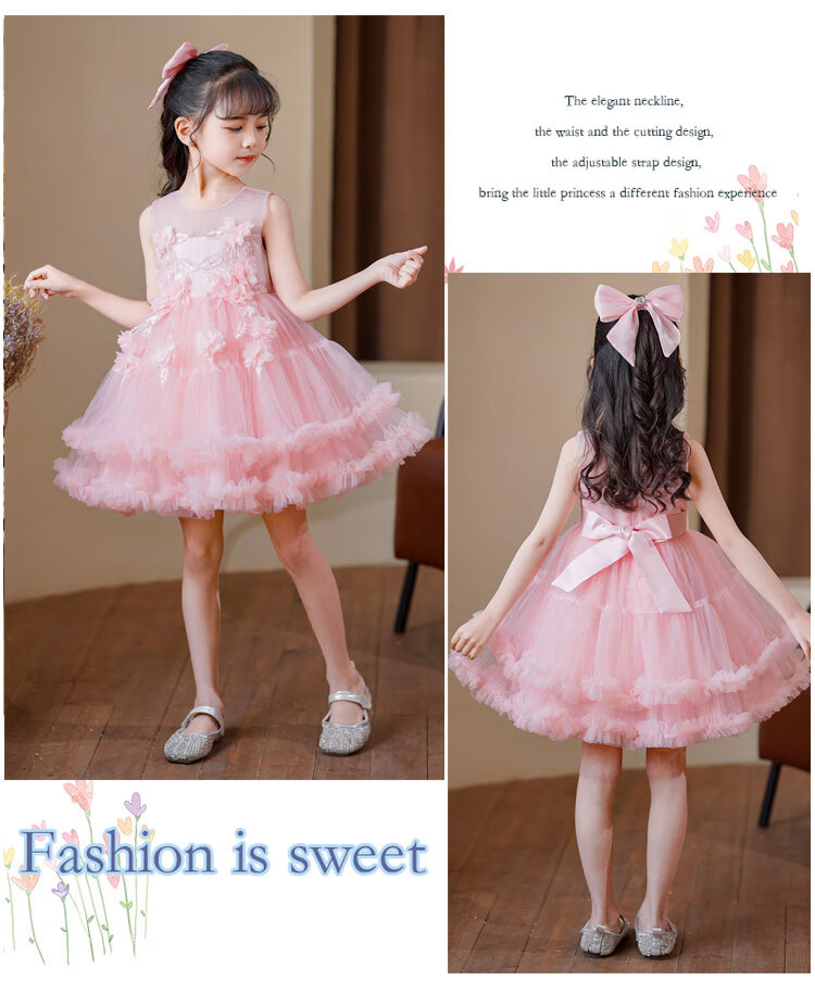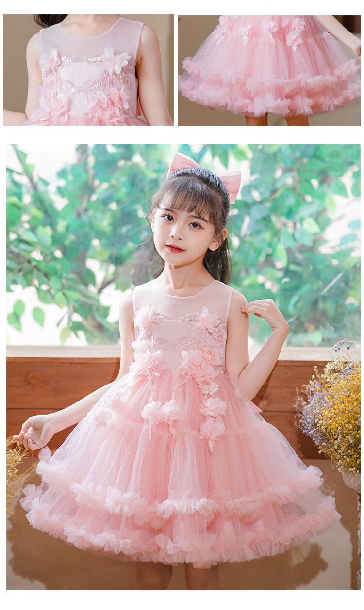 Girls Dress Summer Dress 2025 New Baby Girl Children's Fashionable Princess Dress Summer Little Girl Dress Thin 2207 Pink-Free Pearl Headband 110 Recommendation 28-33Jin Jin is equal to 0.5 kg