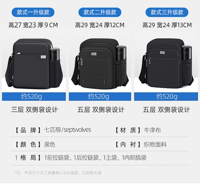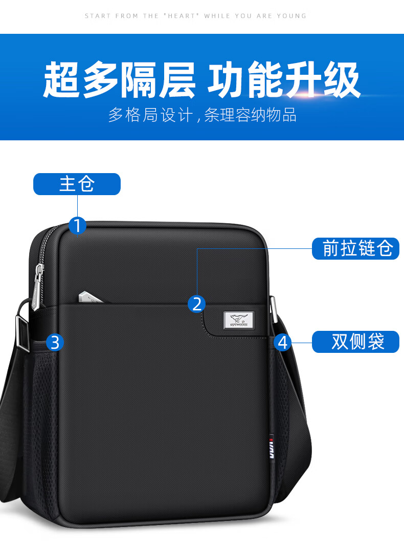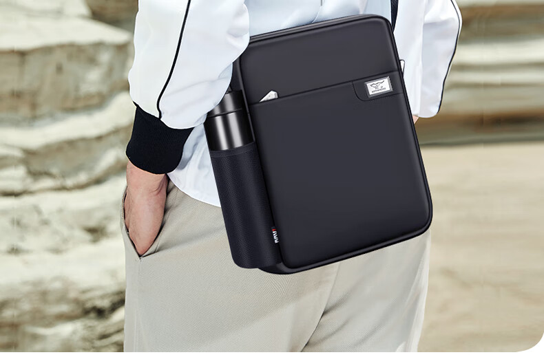 SEPTWOLVES SEPTWOLVES shoulder bag men's bag casual crossbody bag men's bag 2025 new dad canvas portable small backpack upgraded model double side pocket water cup umbrella