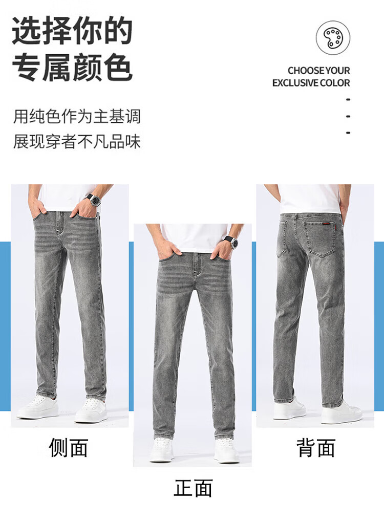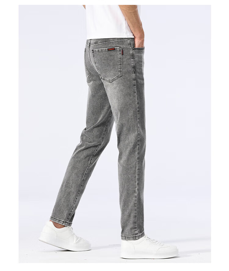 JASONWOOD High-End-Herrenjeans, Sommer, dünn, schlank, Stretch, gerade Hose, mittleres Alter, einfache, vielseitige, gewaschene Hose, 1049, Grau, 33