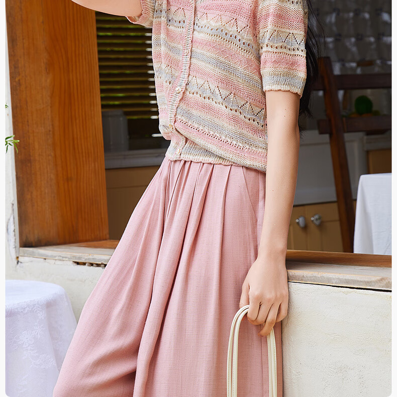 香影粉色垂坠感阔腿裤女高腰2025夏季新款松弛感含亚麻系带薄裤子 银牡丹色 M 160/64A/95-110斤