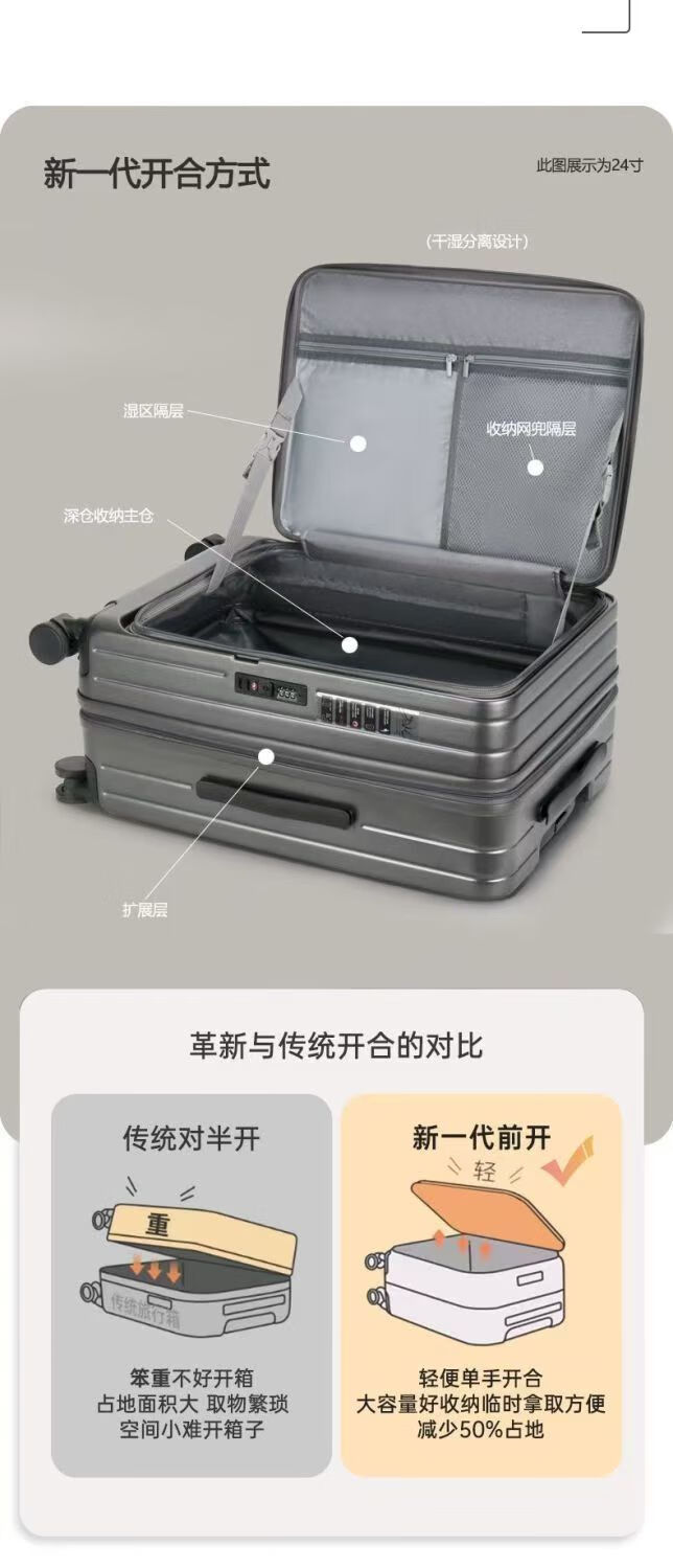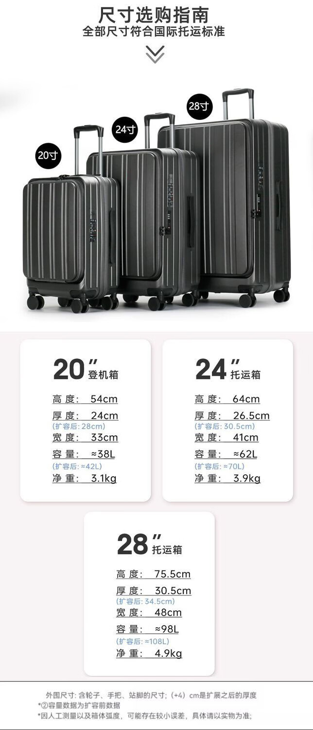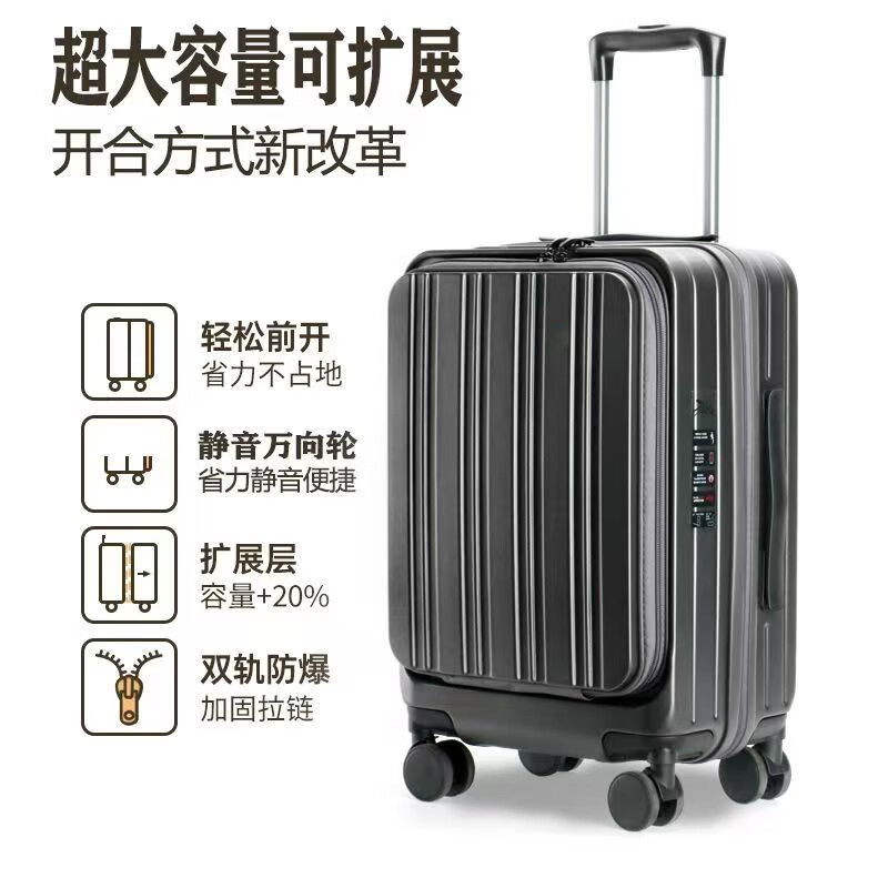 CaptainTony Maleta con apertura frontal, maletín con ruedas de almacenamiento profundo de gran capacidad expandible para mujer, 20 maletas de viaje con contraseña de embarque, maleta de cuero para hombre, color azul iris - apertura frontal de 20 pulgadas más vendida + cremallera a prueba de explosiones + compartimento para computadora