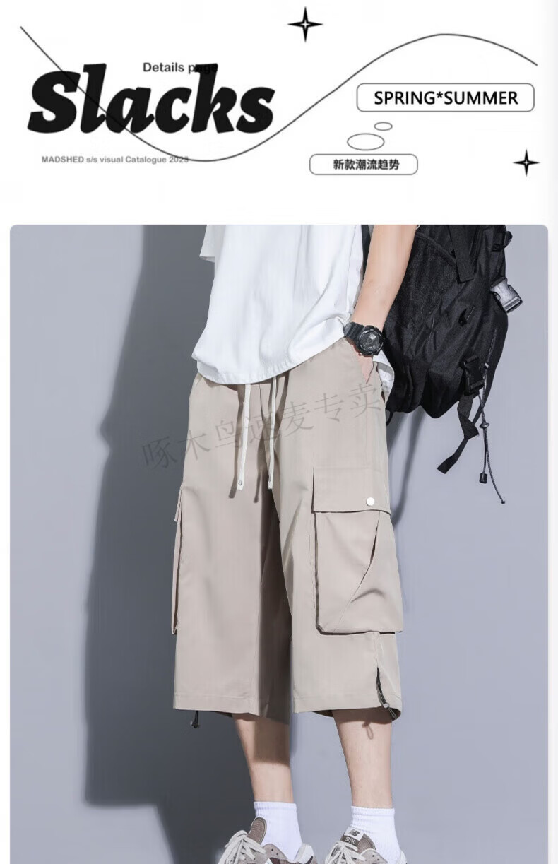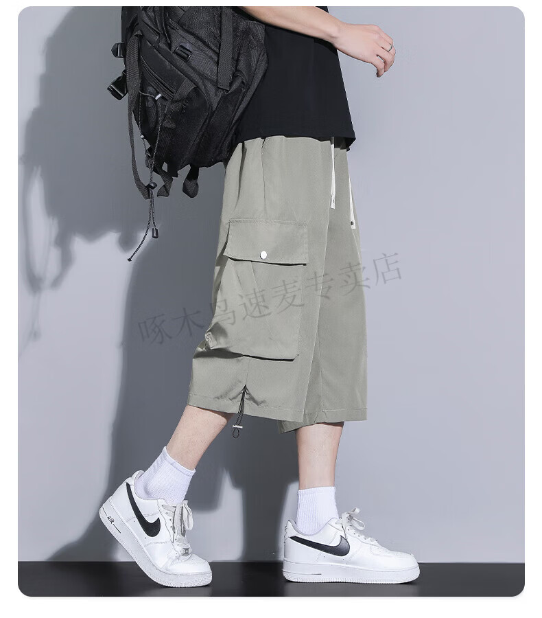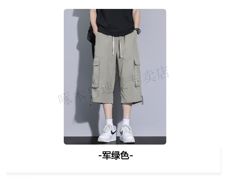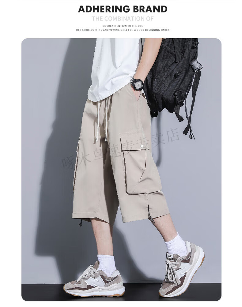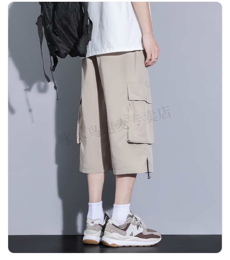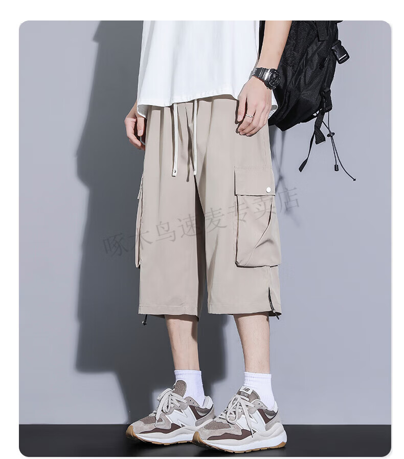啄木鸟(TUCANO)卡其色工装七分裤男夏季冰丝薄款宽松百搭短裤休闲运动过膝八分裤 FJA430-679卡其 3XL