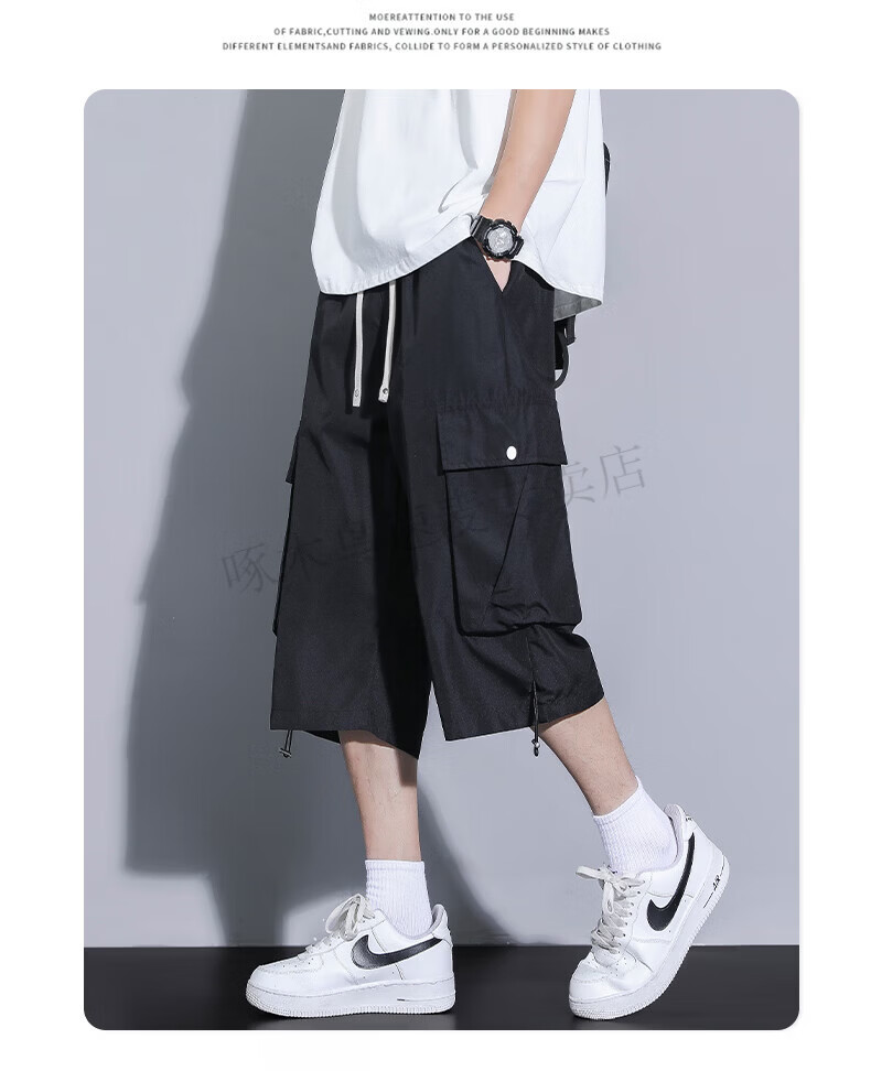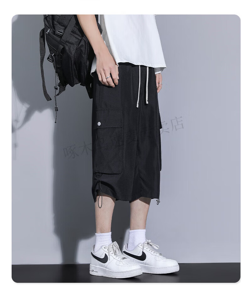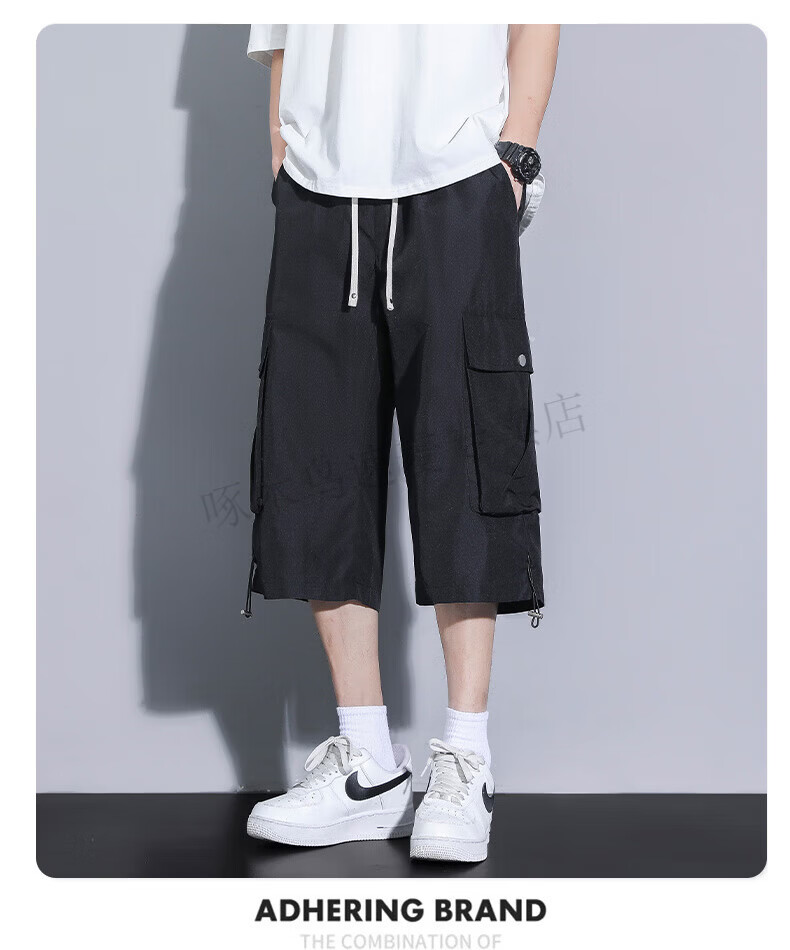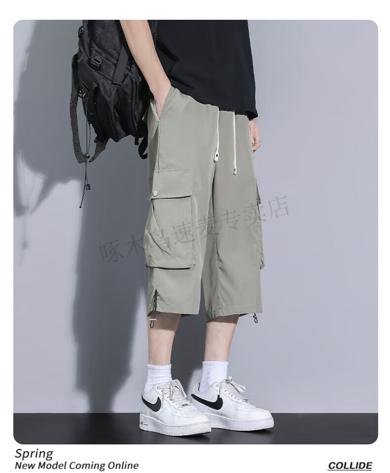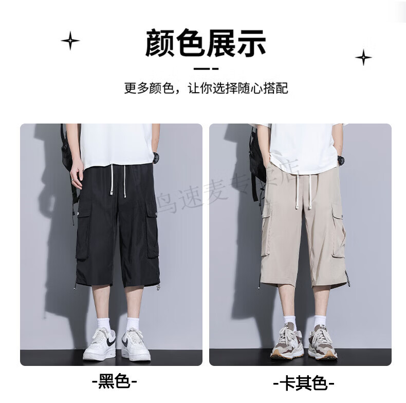 啄木鸟(TUCANO)卡其色工装七分裤男夏季冰丝薄款宽松百搭短裤休闲运动过膝八分裤 FJA430-679卡其 3XL
