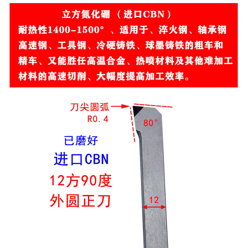 MnkuhgCBN herramienta de torneado de soldadura endurecida con nitruro de boro 20 cuadrados 90 grados YS8 cuchillo ordinario de enfriamiento del círculo exterior YT726YD0 CBN50 CBN50/agujero interior 12140/hierro fundido de acero duro