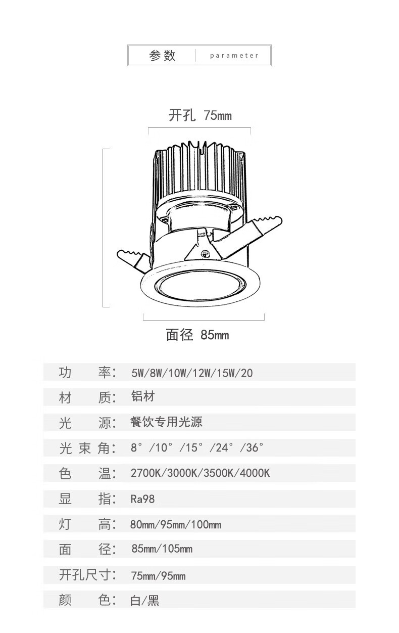 NVC Lighting (NVC) 2025 nouveau spot de plafond LED intégré anti-éblouissement profond haut CRI 2700K hôtel club restaurant restauration 15 7W 2700K haut CRI Ra9755 ouverture