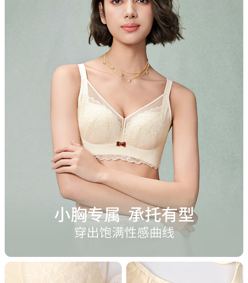 贵夫人小胸聚拢显大蕾丝内衣女优雅无钢圈收副乳调整型透气网纱文胸胸罩 黑色 85B /38