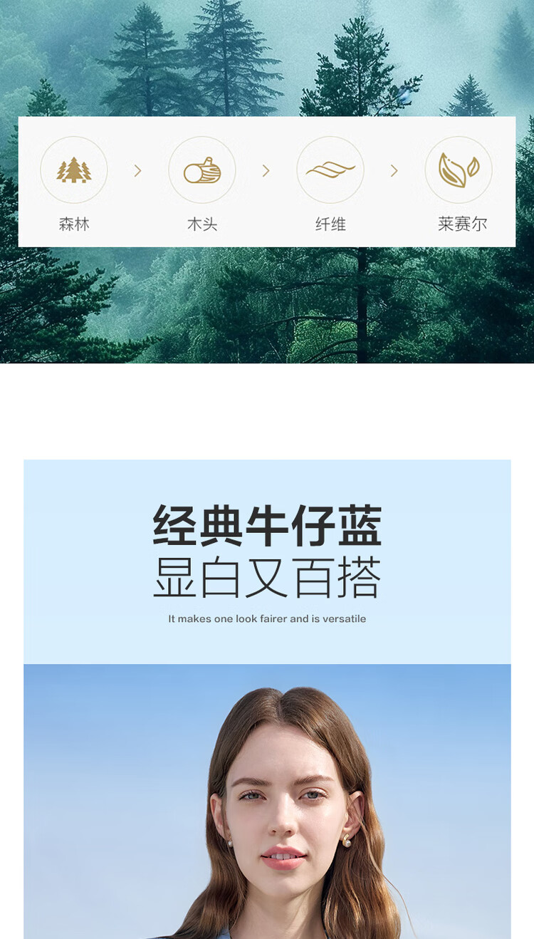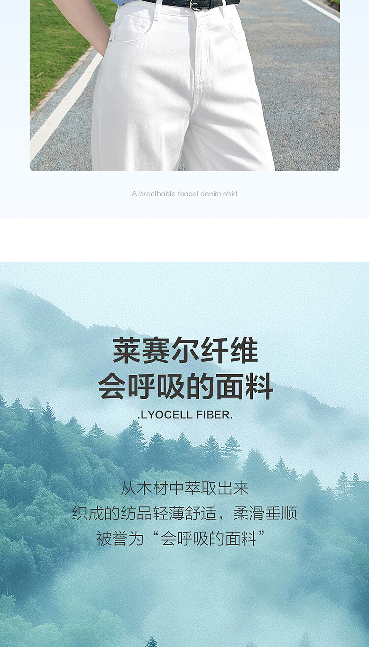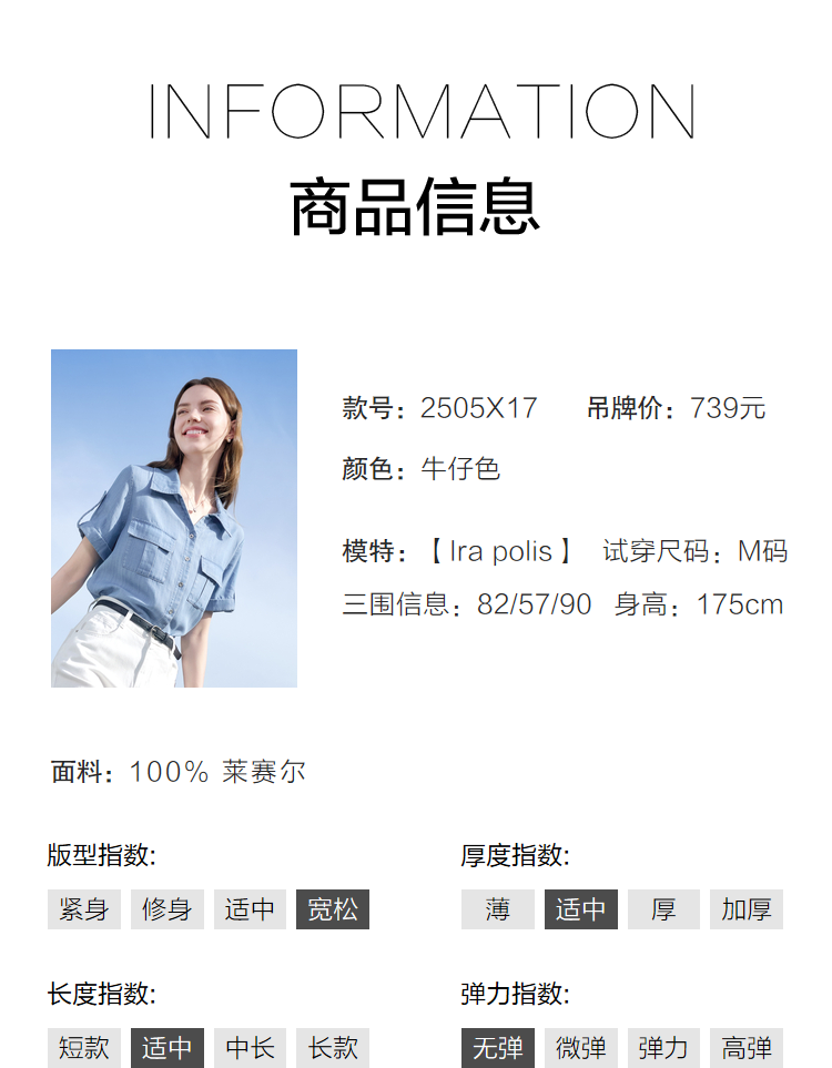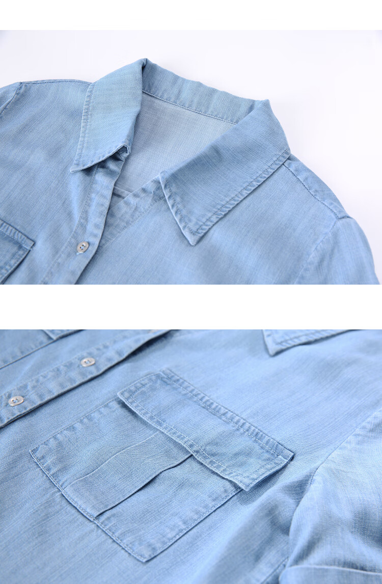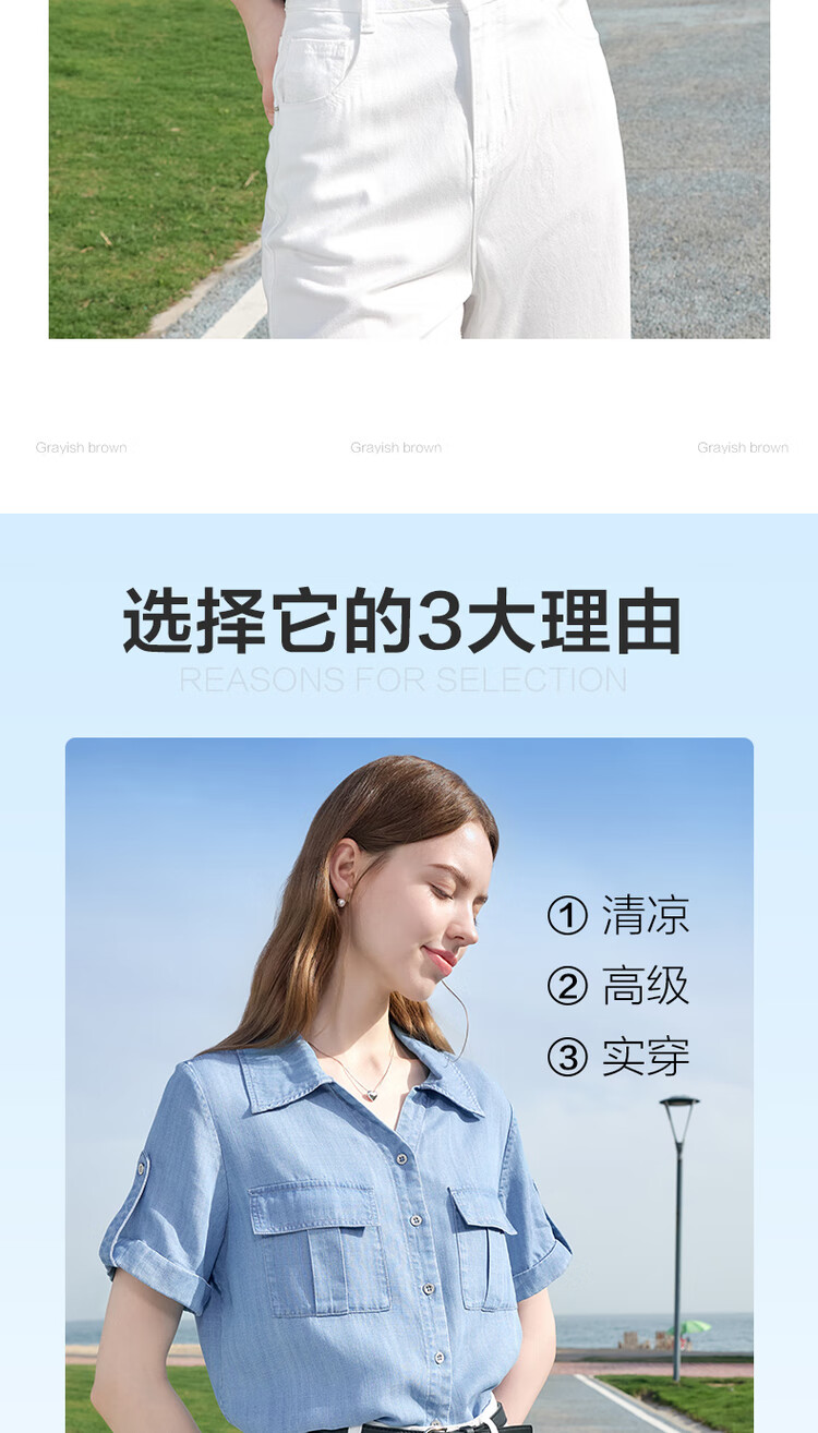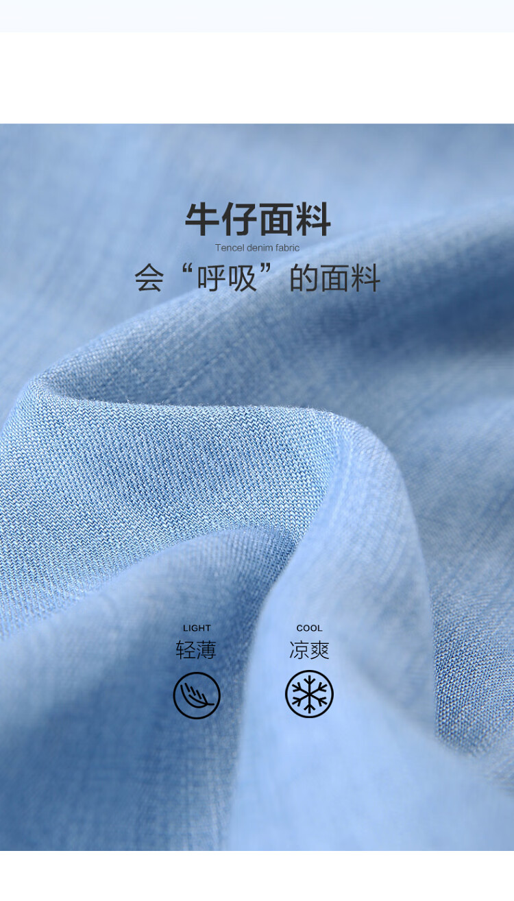 百图betu女装2025夏季新款衬衫莱赛尔莱赛尔凉感牛仔短袖上衣2505X17 牛仔色 M