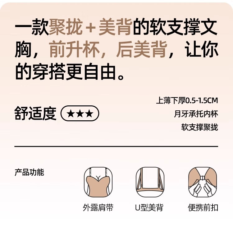MOXTOC前扣美背内衣女小胸聚拢显大性感胸罩字母肩带无痕文胸夏季薄款 黑色上衣 M 适合80-100斤