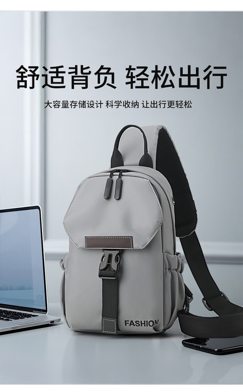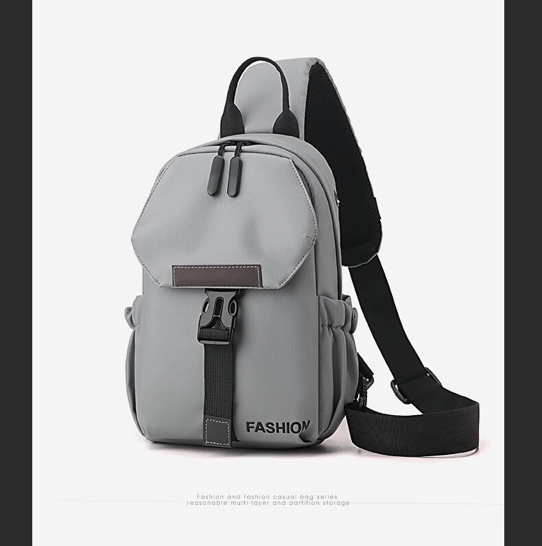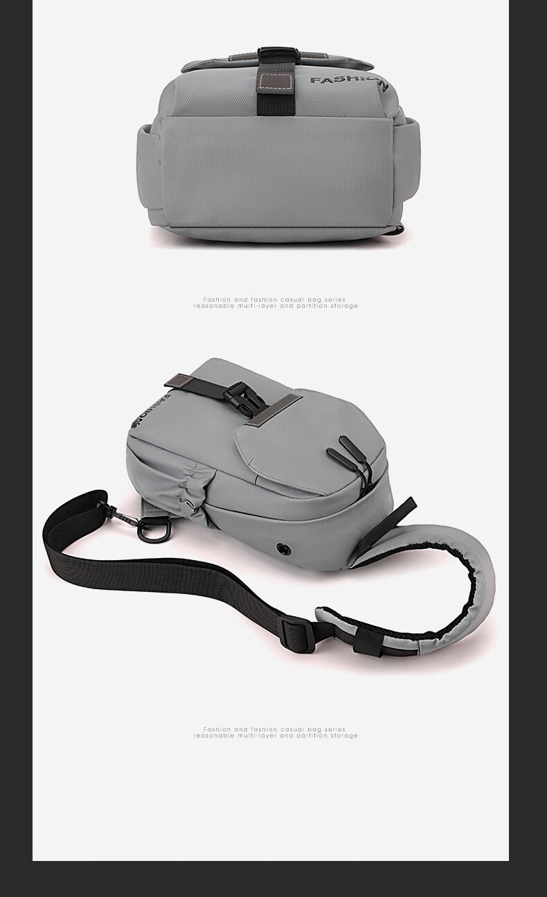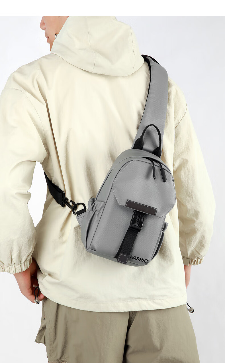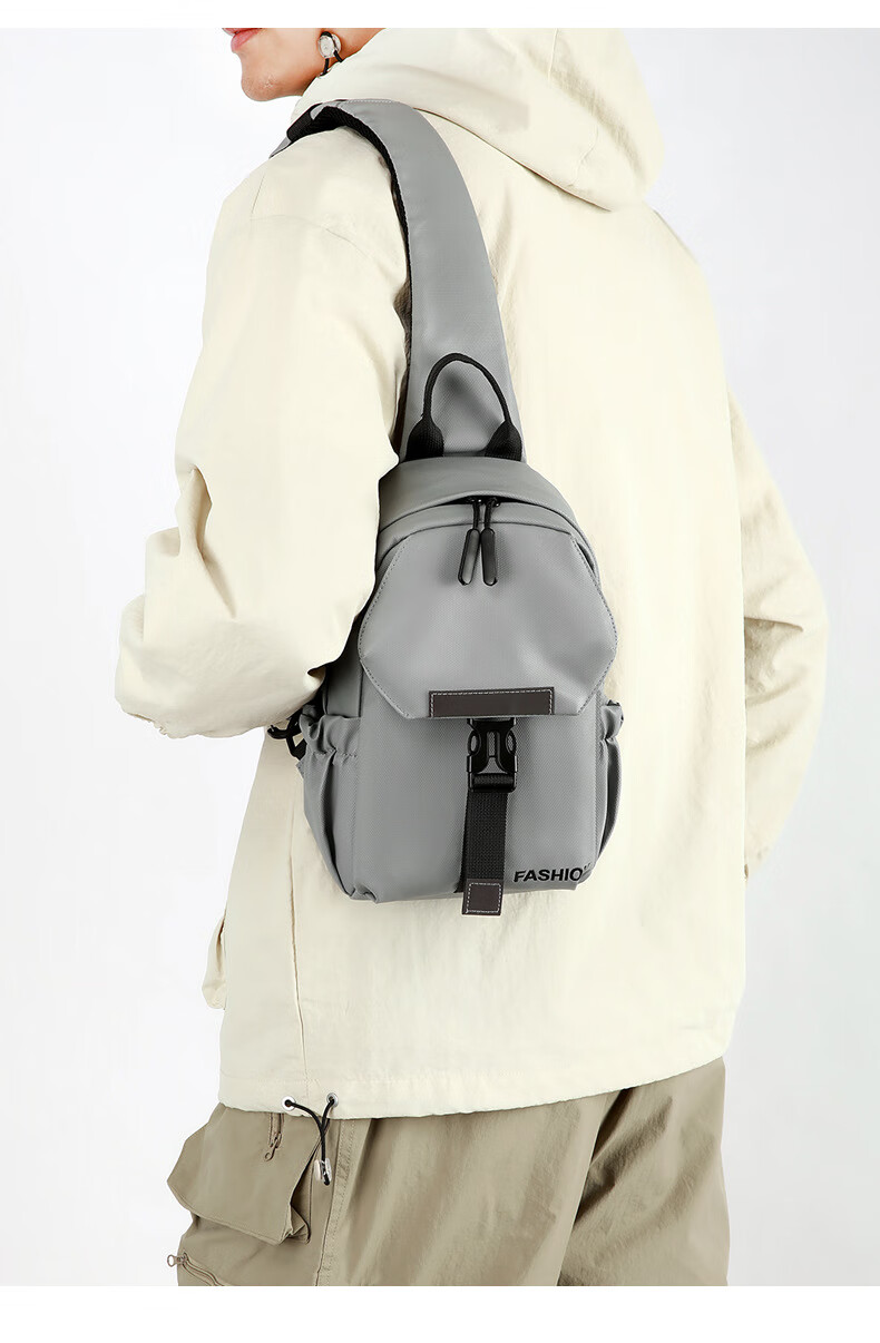 7240新款时尚斜挎包男士胸包大容量简约轻便背包休闲单肩包男包包 浅灰色