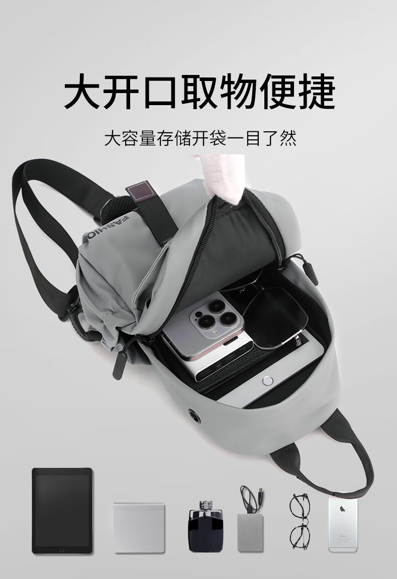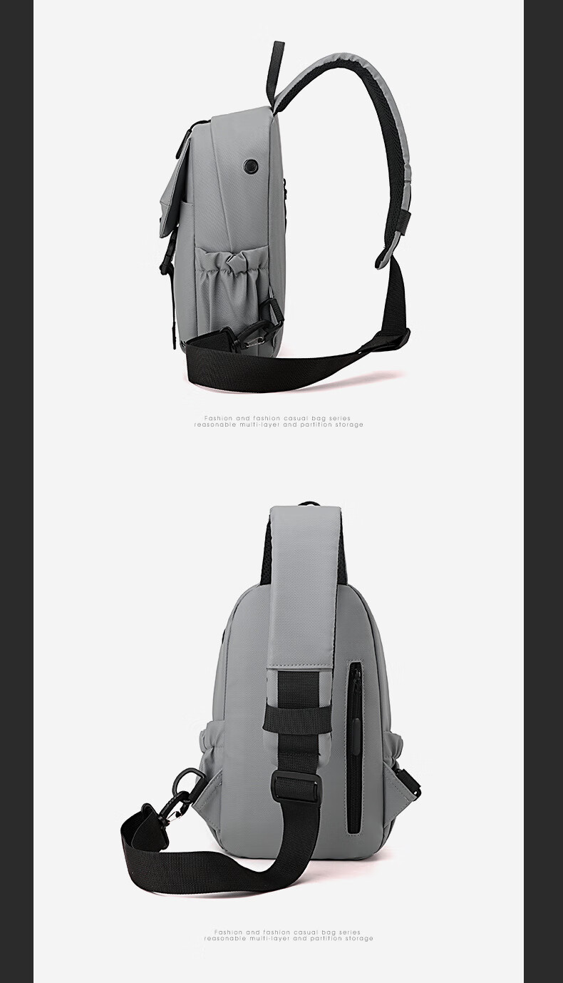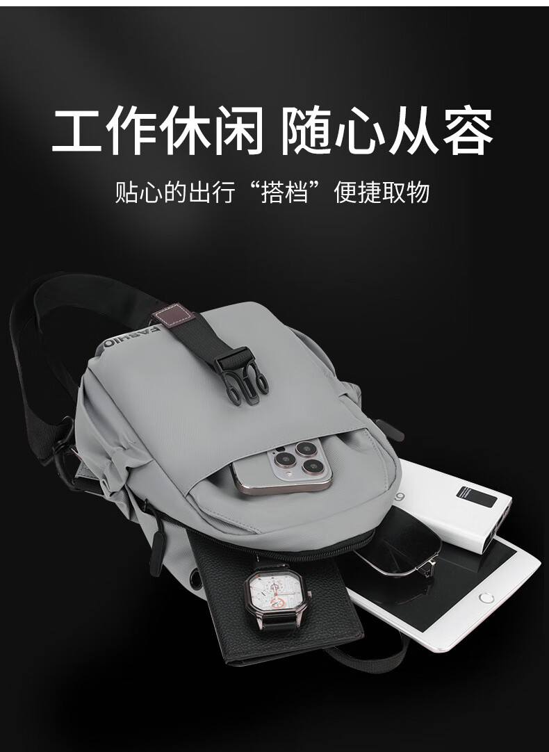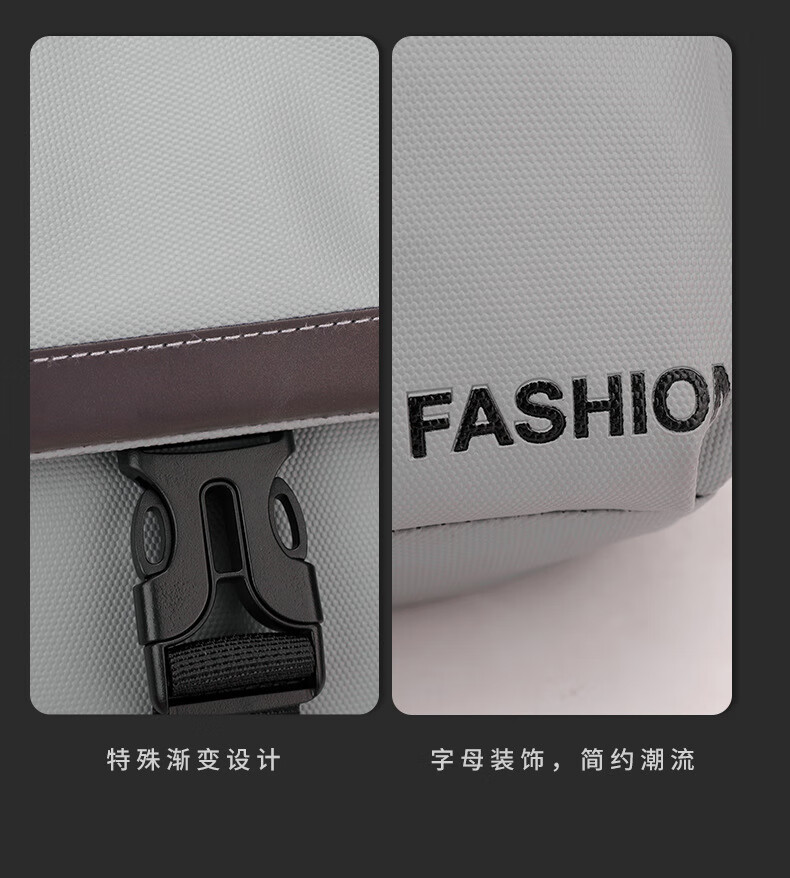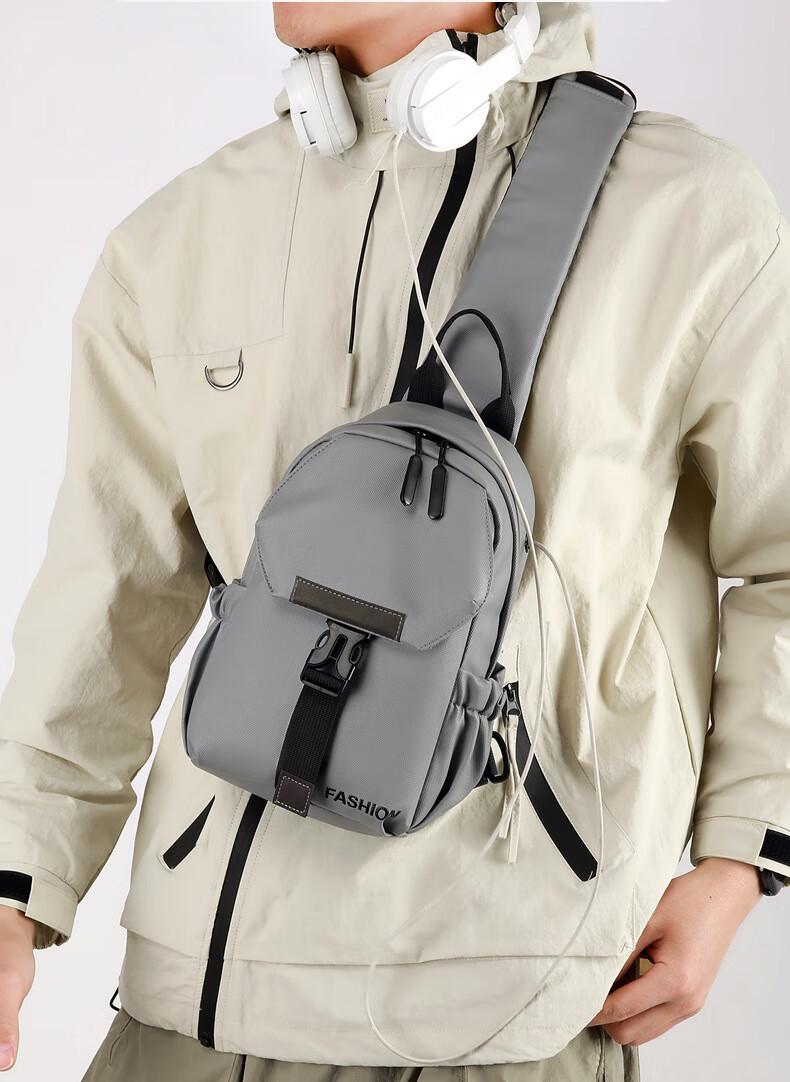 7240新款时尚斜挎包男士胸包大容量简约轻便背包休闲单肩包男包包 浅灰色
