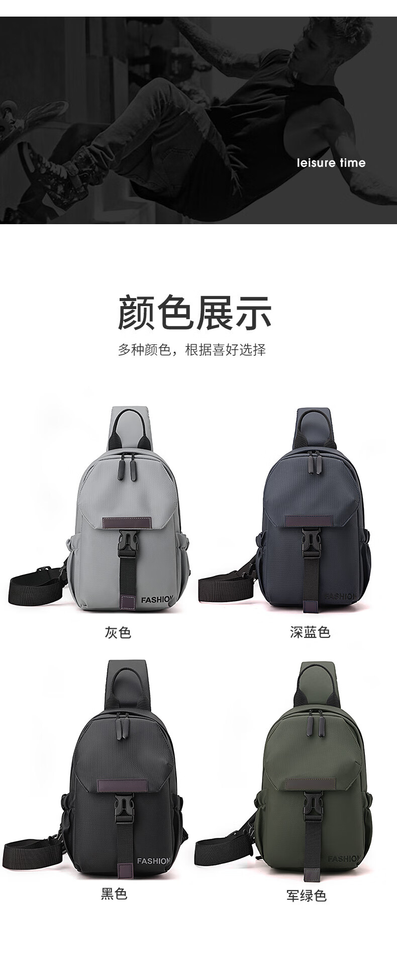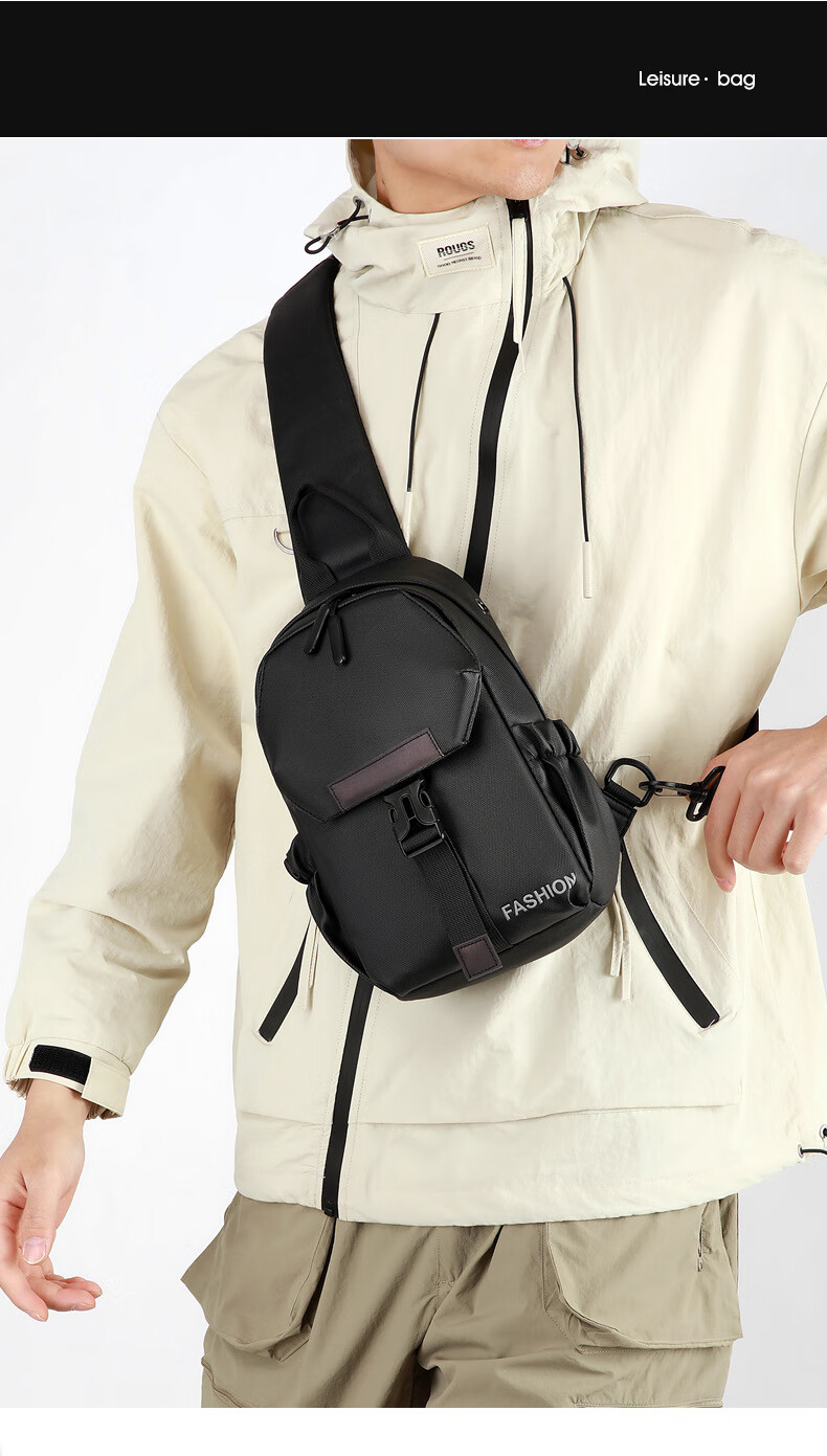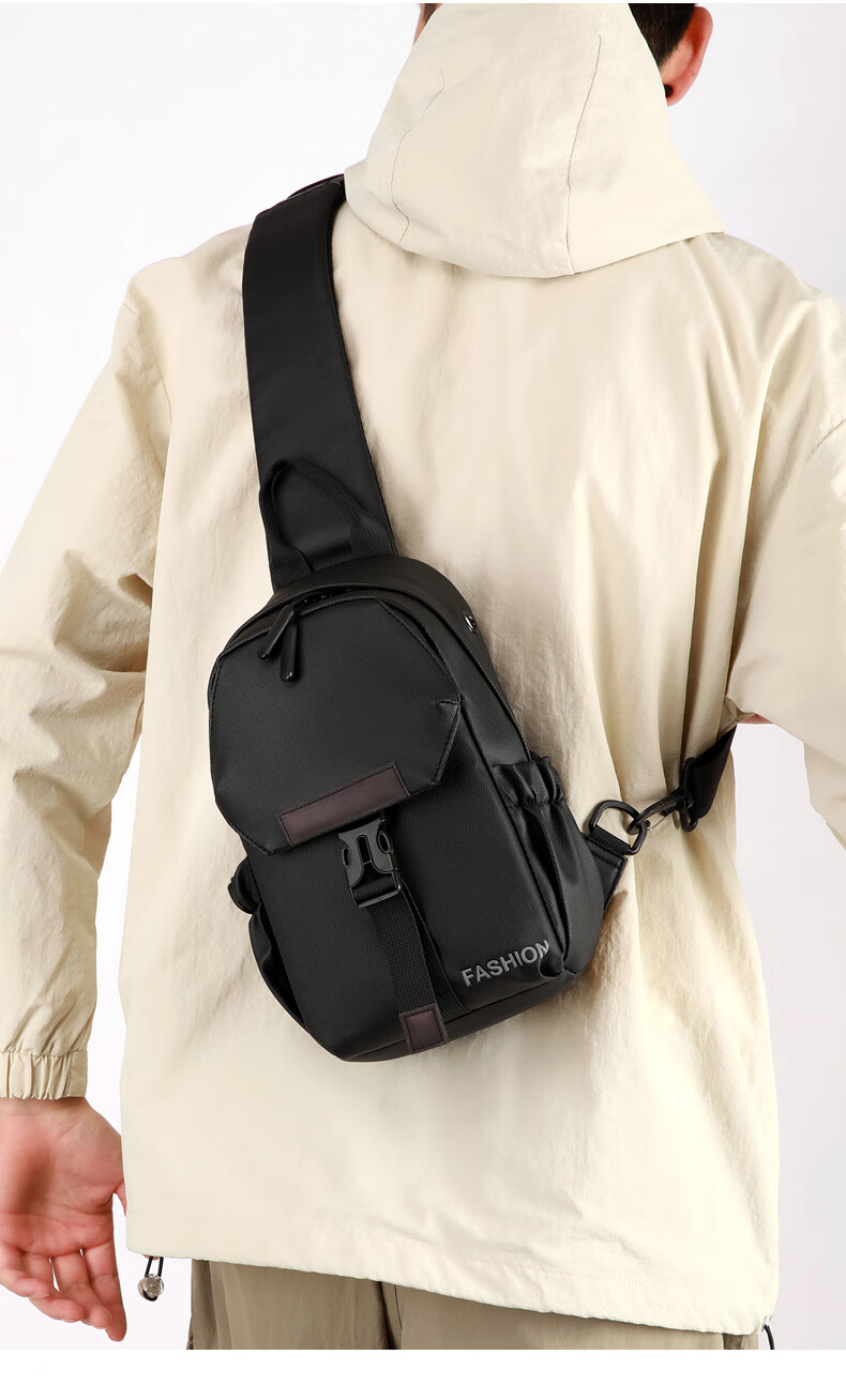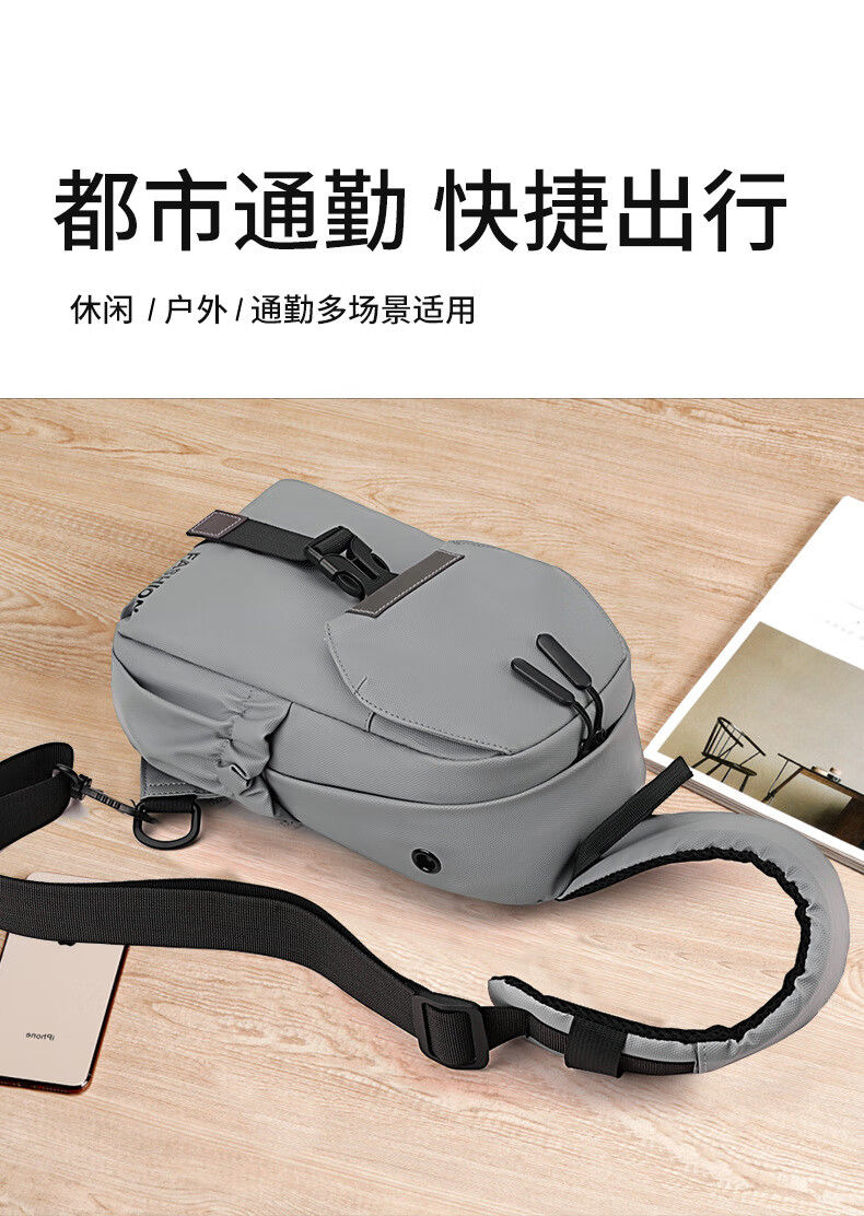 7240新款时尚斜挎包男士胸包大容量简约轻便背包休闲单肩包男包包 浅灰色