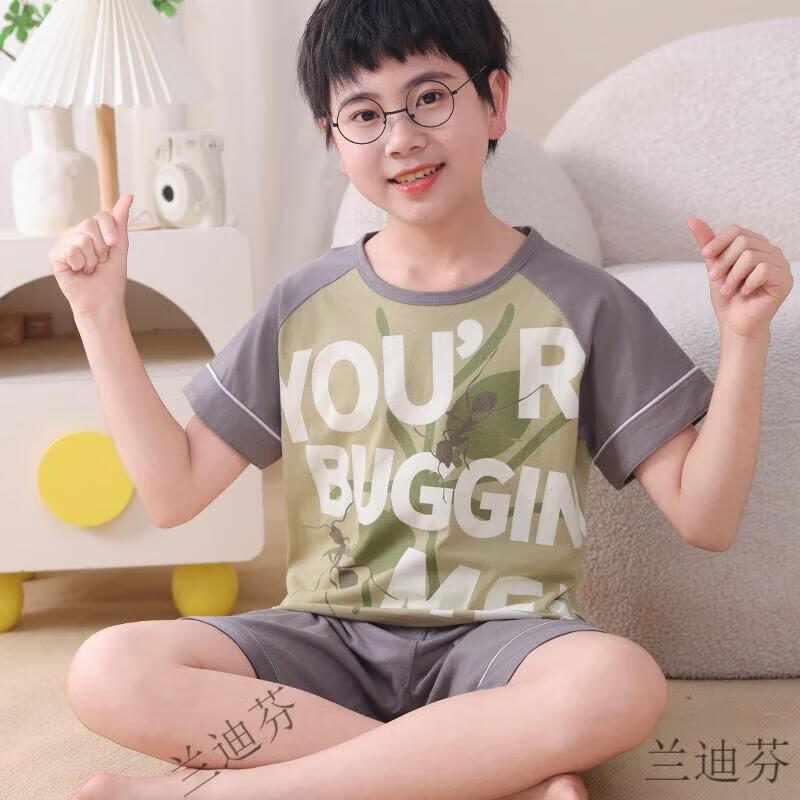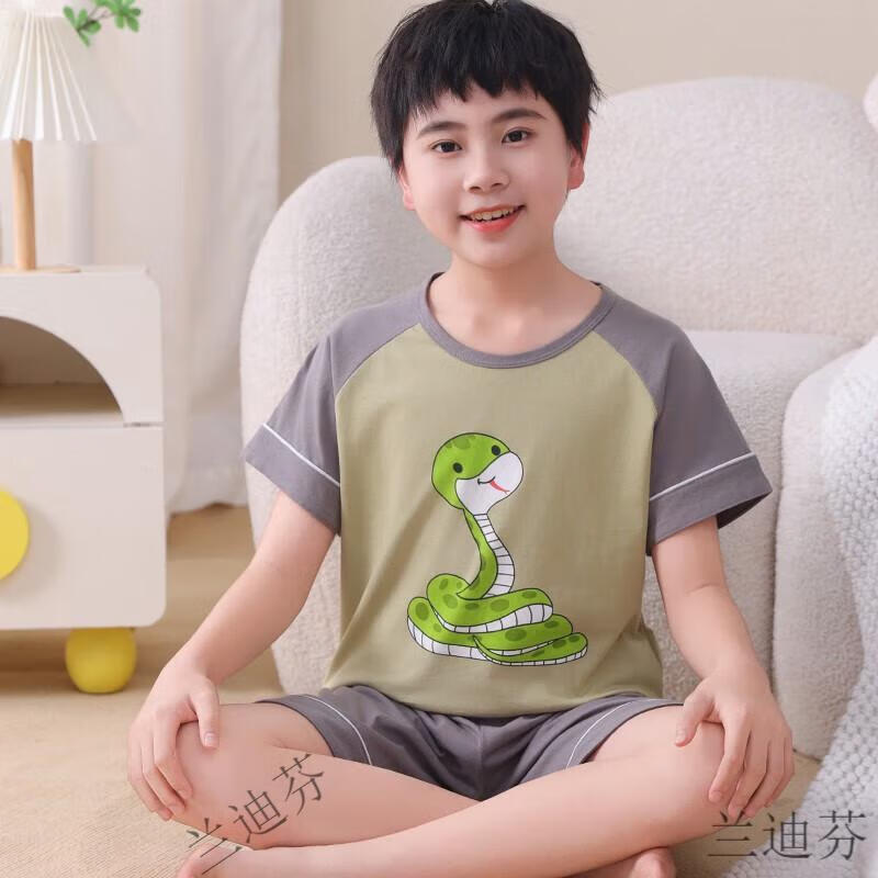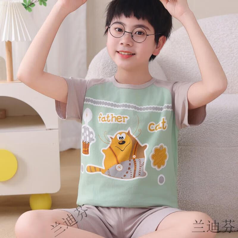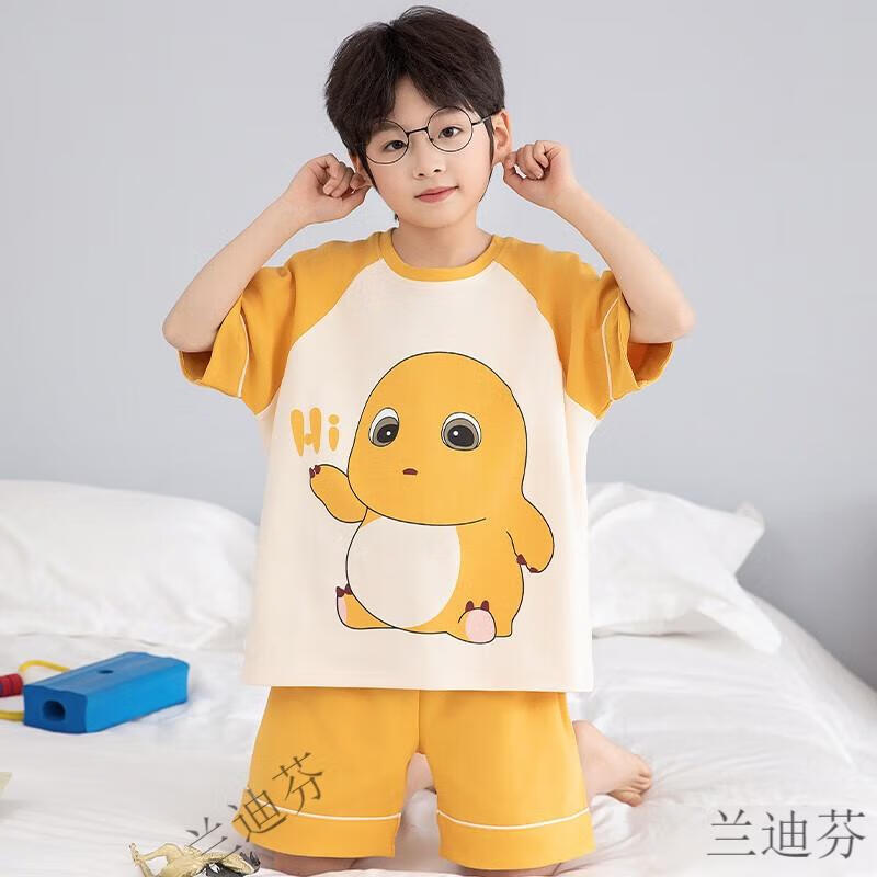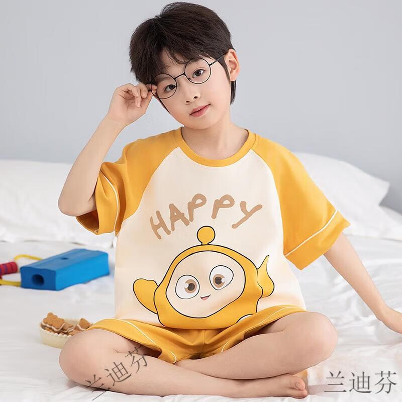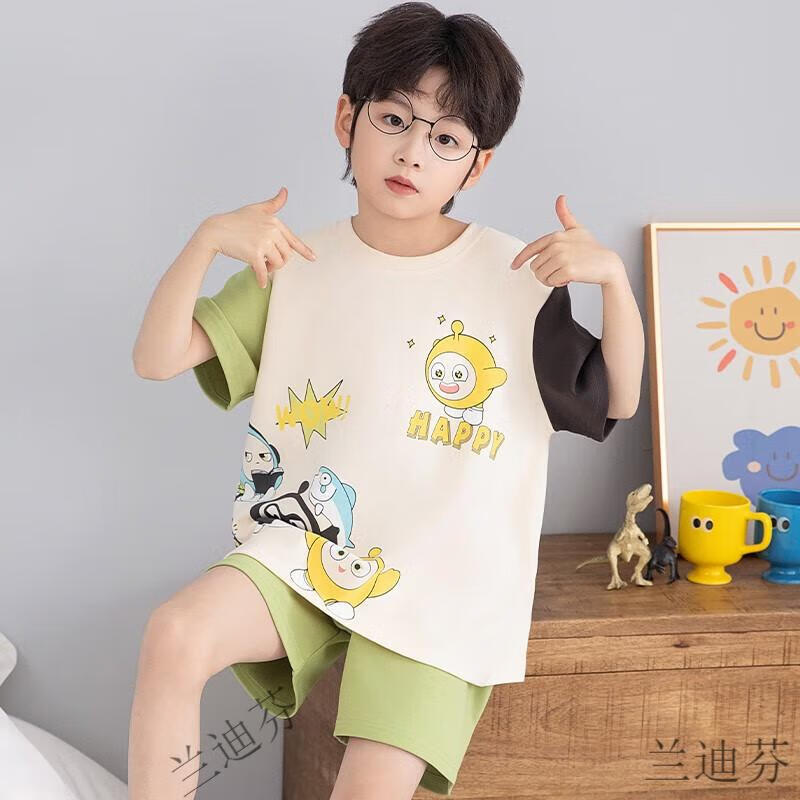 奶龙衣服套装奶龙儿童睡衣夏季薄款男孩短袖中大童卡通套装初中生 100棉nt-691蛋仔 均码 12码身高113-123厘米38-45斤