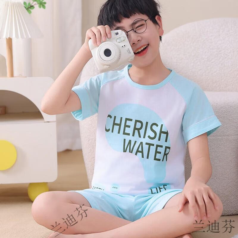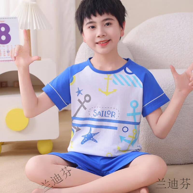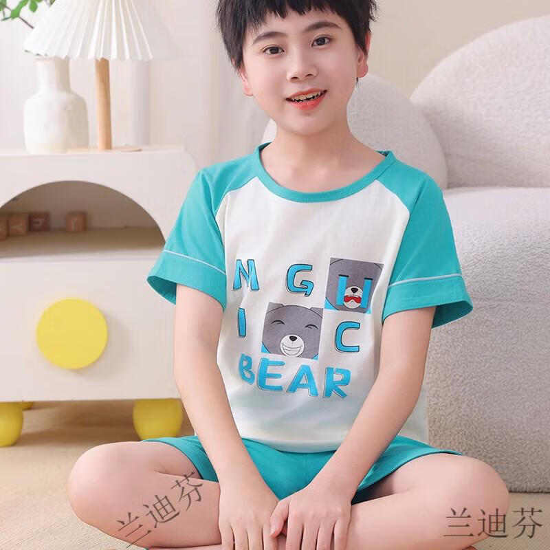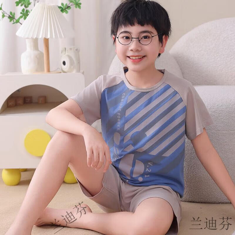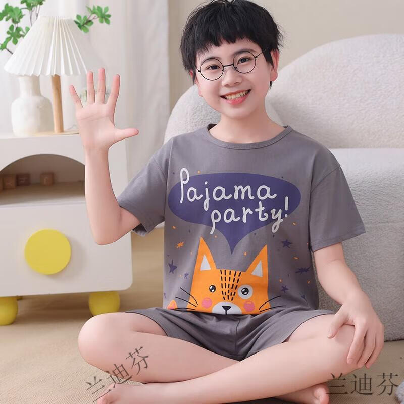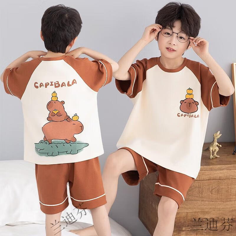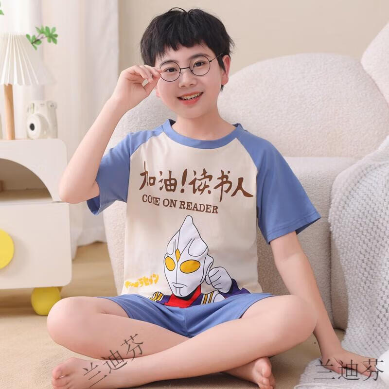 奶龙衣服套装奶龙儿童睡衣夏季薄款男孩短袖中大童卡通套装初中生 100棉nt-691蛋仔 均码 12码身高113-123厘米38-45斤