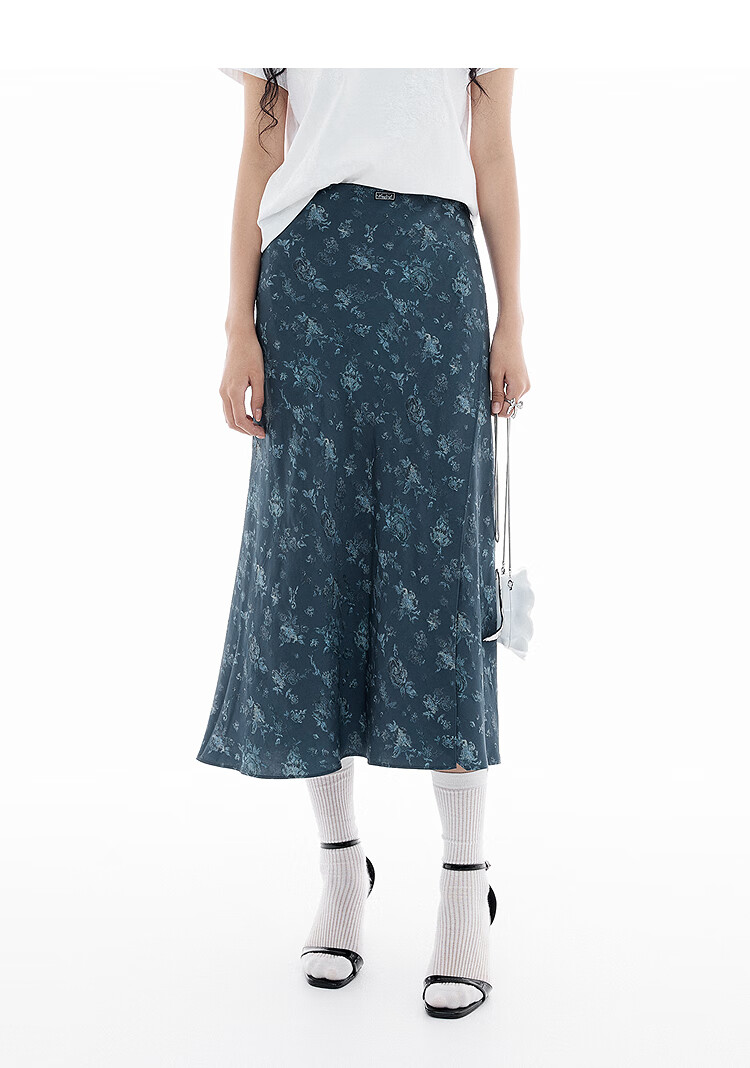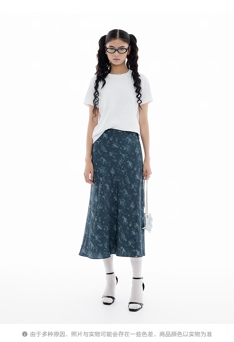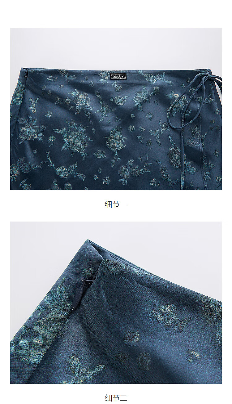 DZZIT地素半身裙2025夏季新款提花围裹式系带A字裙子女3J2S4176S 蓝色 XS
