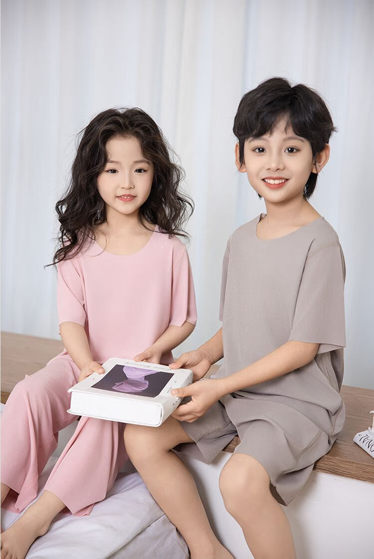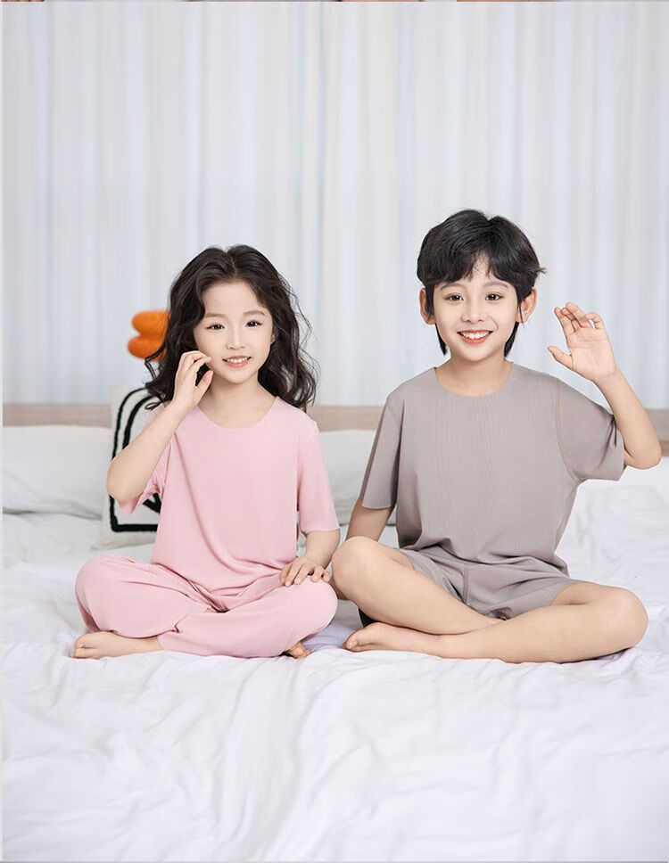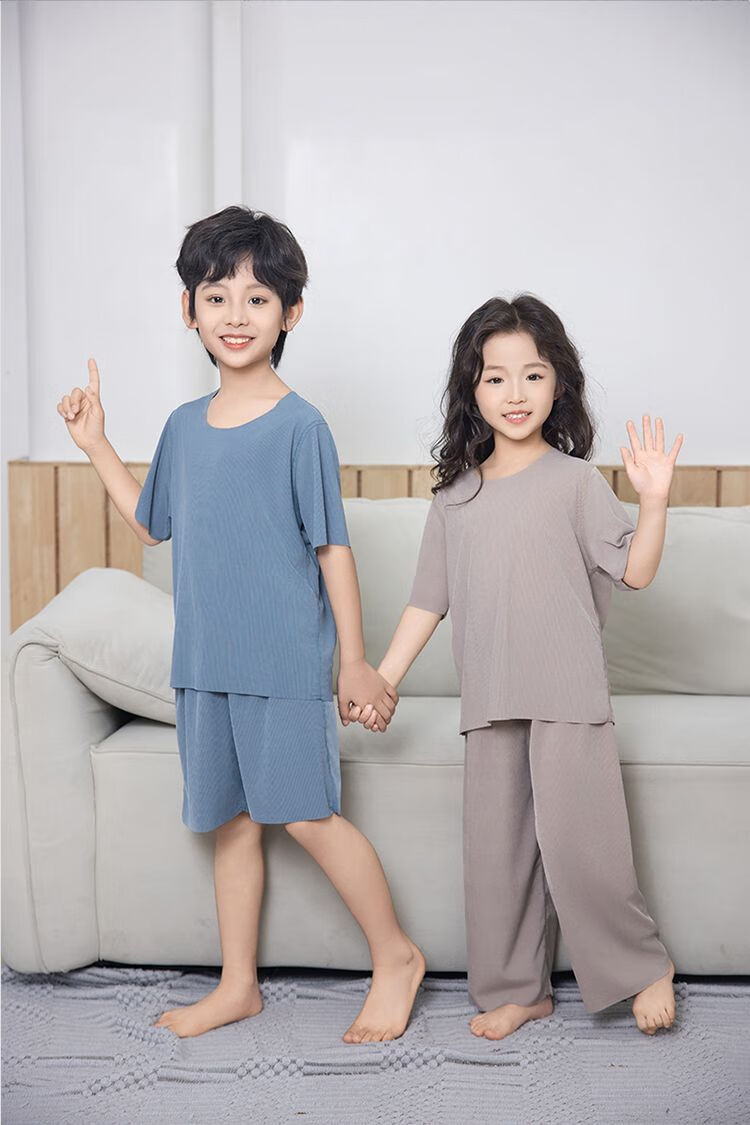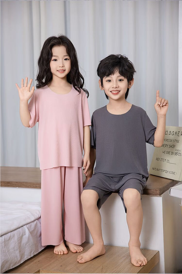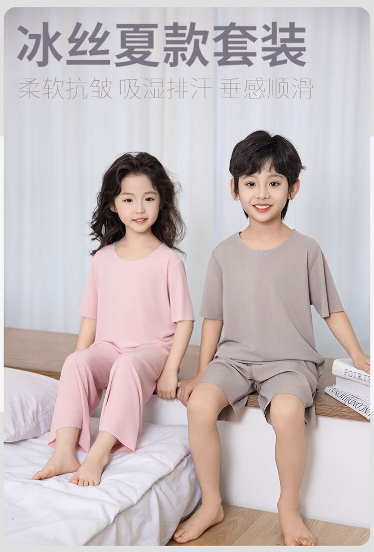 儿童睡衣冰丝莫代尔套装女童面膜亲子男童夏季薄款无痕空调家居服 男款-绿色 M (140码 65-75斤)