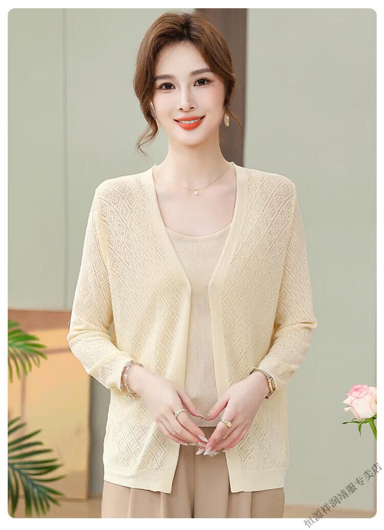 Hengyuanxiang Mutters kurze, dünne Klimaanlagen-Hemdjacke, Sommer-Eisseide, Sonnenschutzkleidung, Strickjacke, Frauen mittleren Alters, Frühling und Herbst, Außenschal, rosa, XL