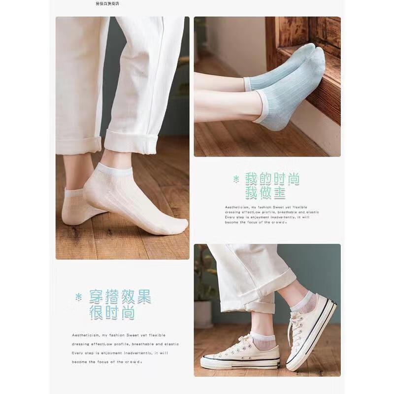 【冰淇淋拼色】袜子女夏季薄款无骨船袜吸汗防滑不掉跟隐形袜 试用专享 随机颜色 1双