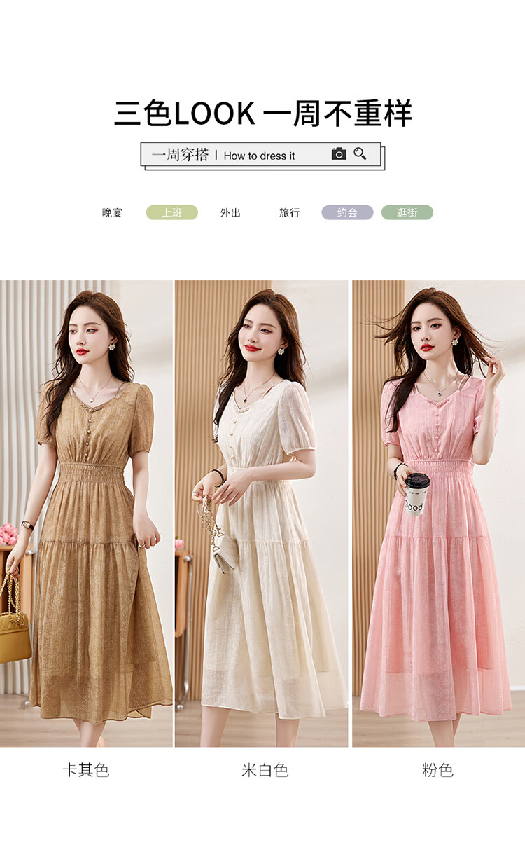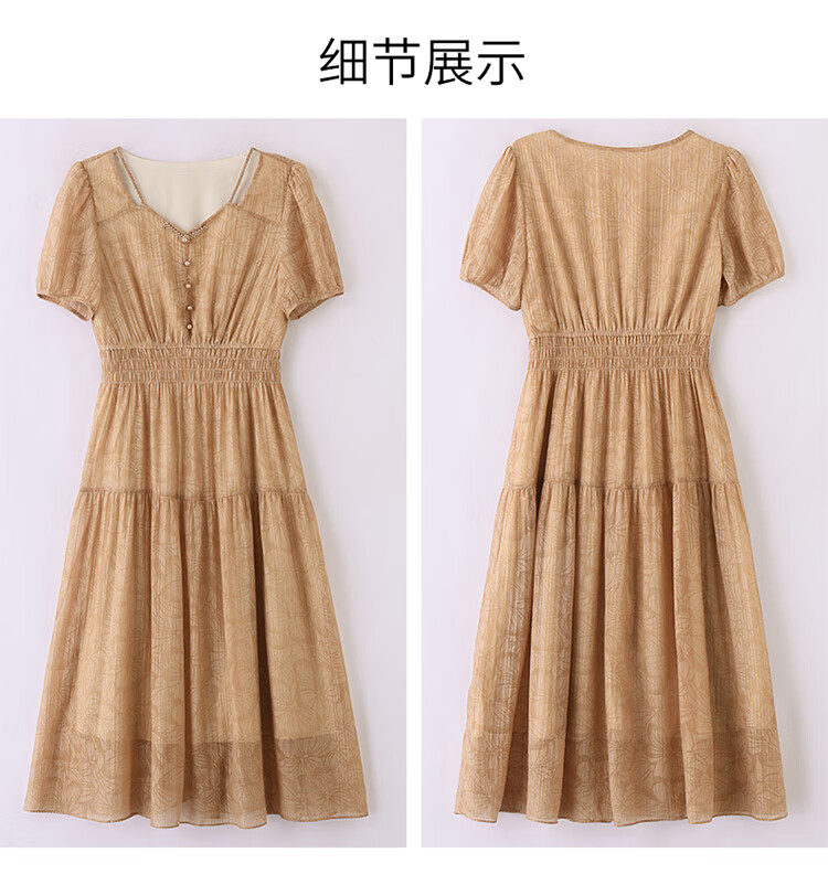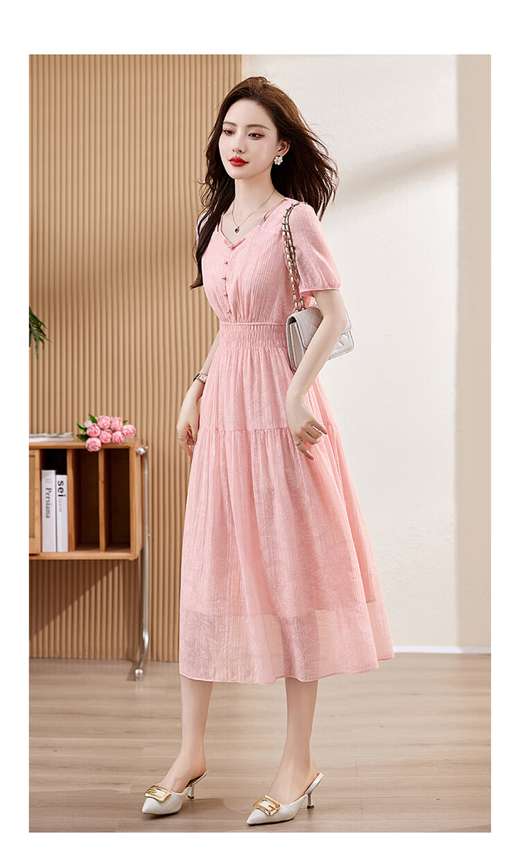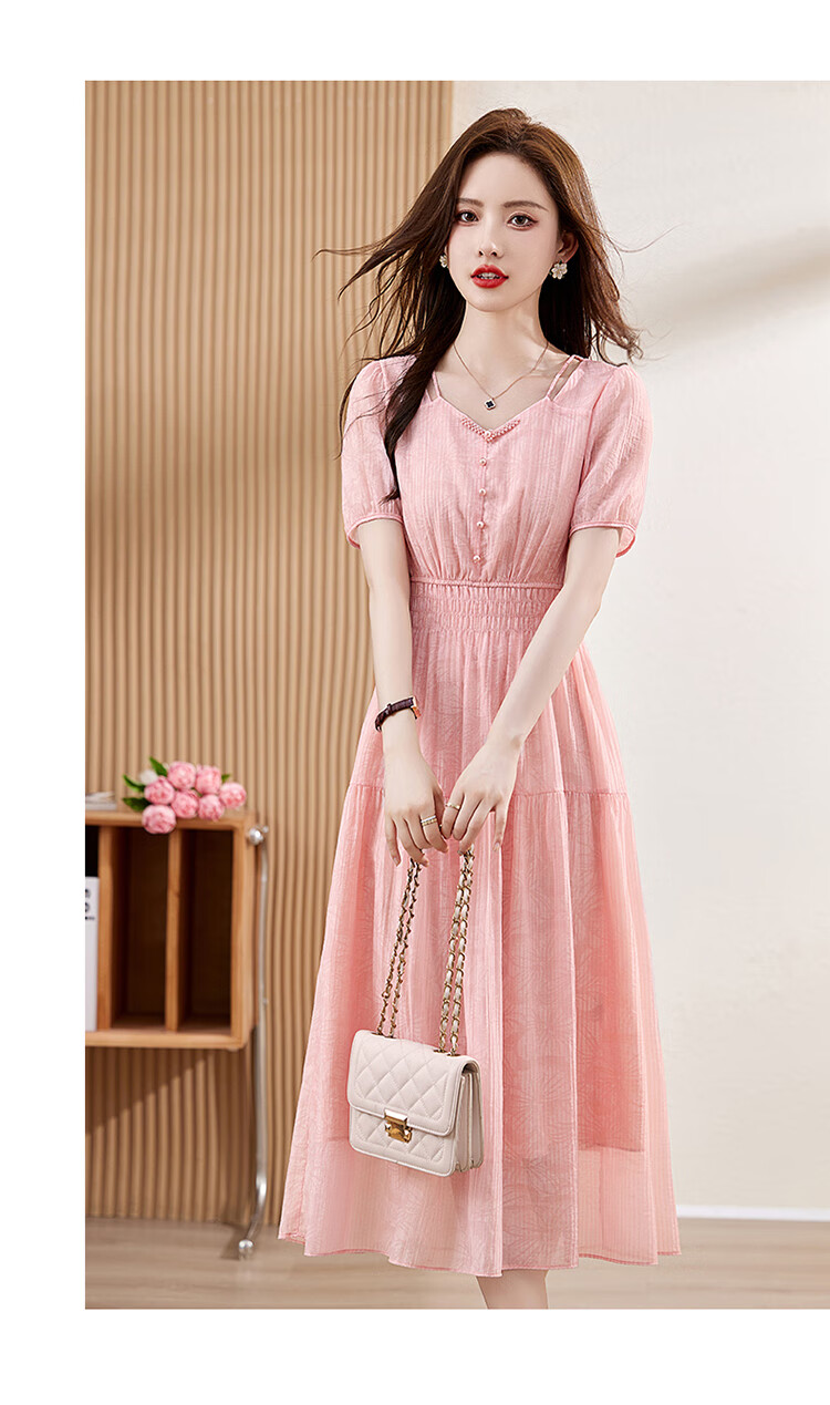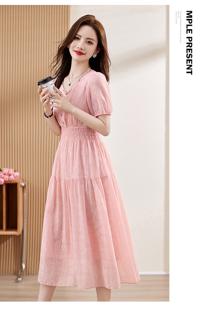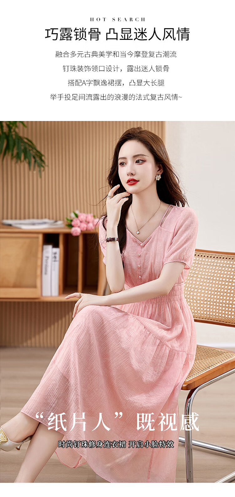 TJQ ​​​​Luxus-High-End-Markenkleid für Damen im neuen Sommerstil 2025, atemberaubender rosa bedruckter Taillen-Schlankheitsrock, cremefarbenes M empfohlen 105Jin Jin entspricht innerhalb von 0,5 kg