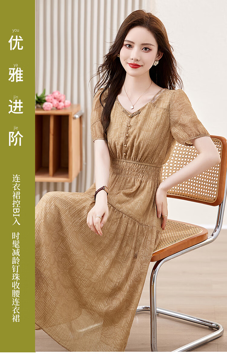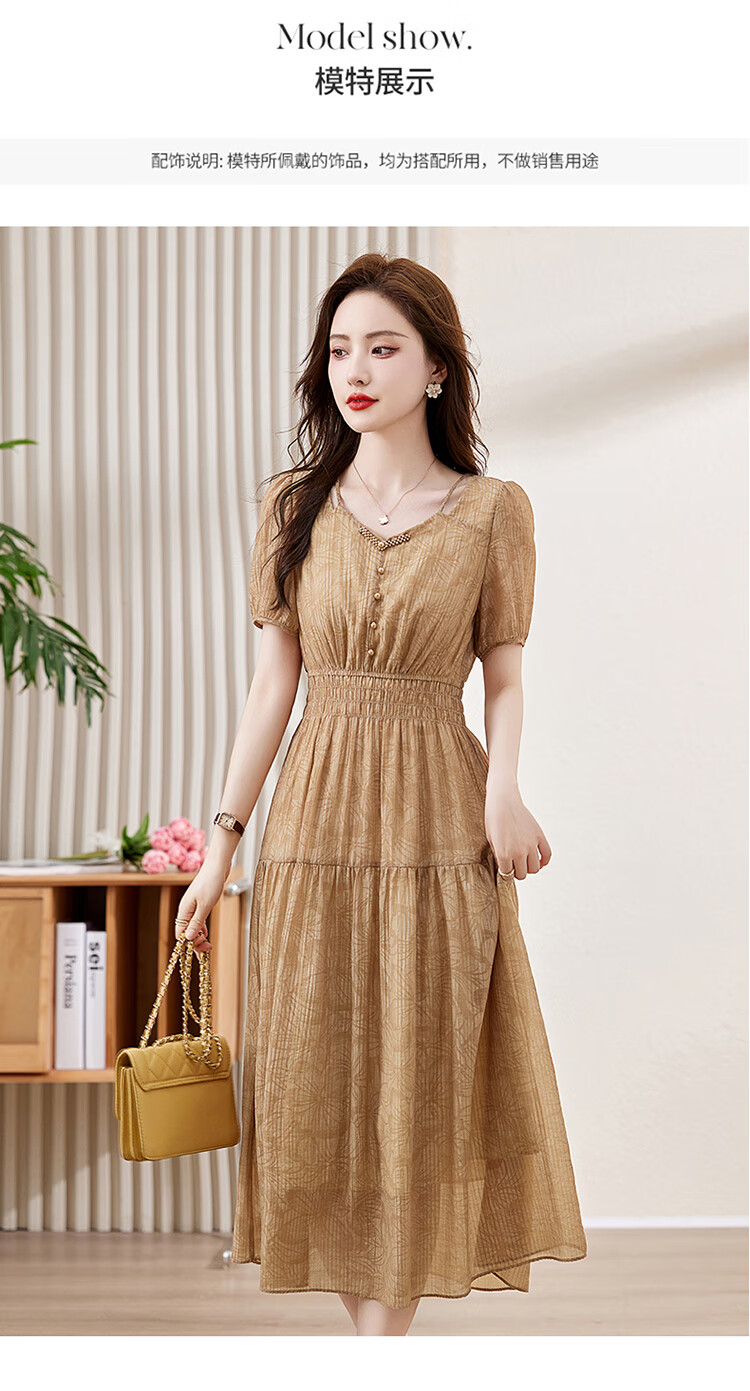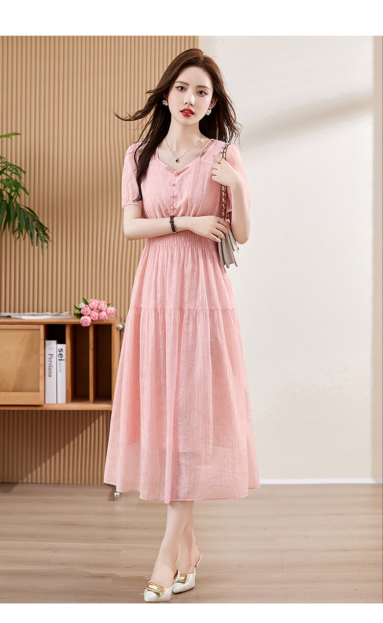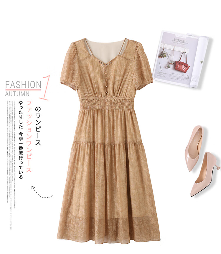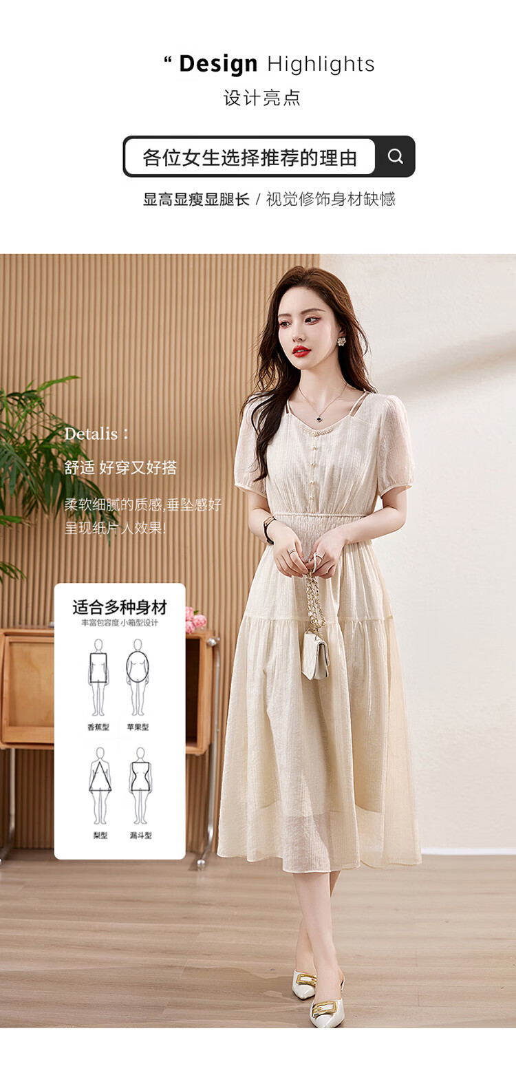 TJQ ​​​​Luxus-High-End-Markenkleid für Damen im neuen Sommerstil 2025, atemberaubender rosa bedruckter Taillen-Schlankheitsrock, cremefarbenes M empfohlen 105Jin Jin entspricht innerhalb von 0,5 kg