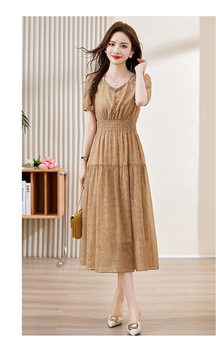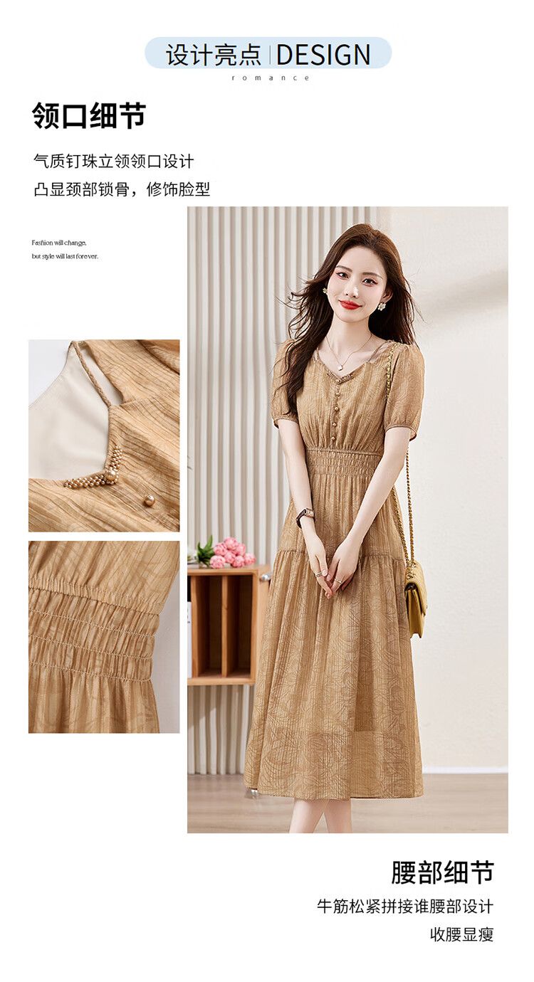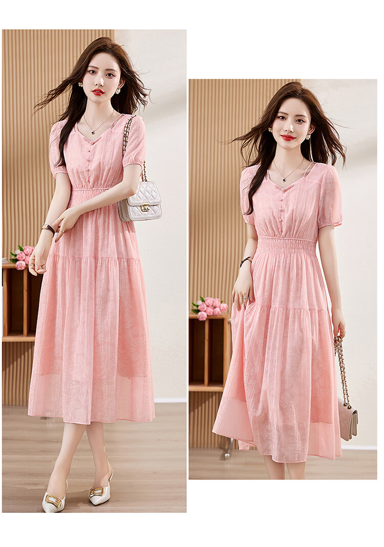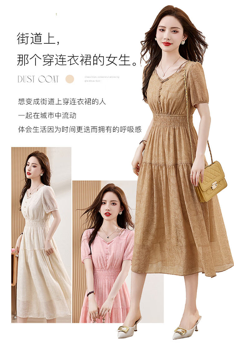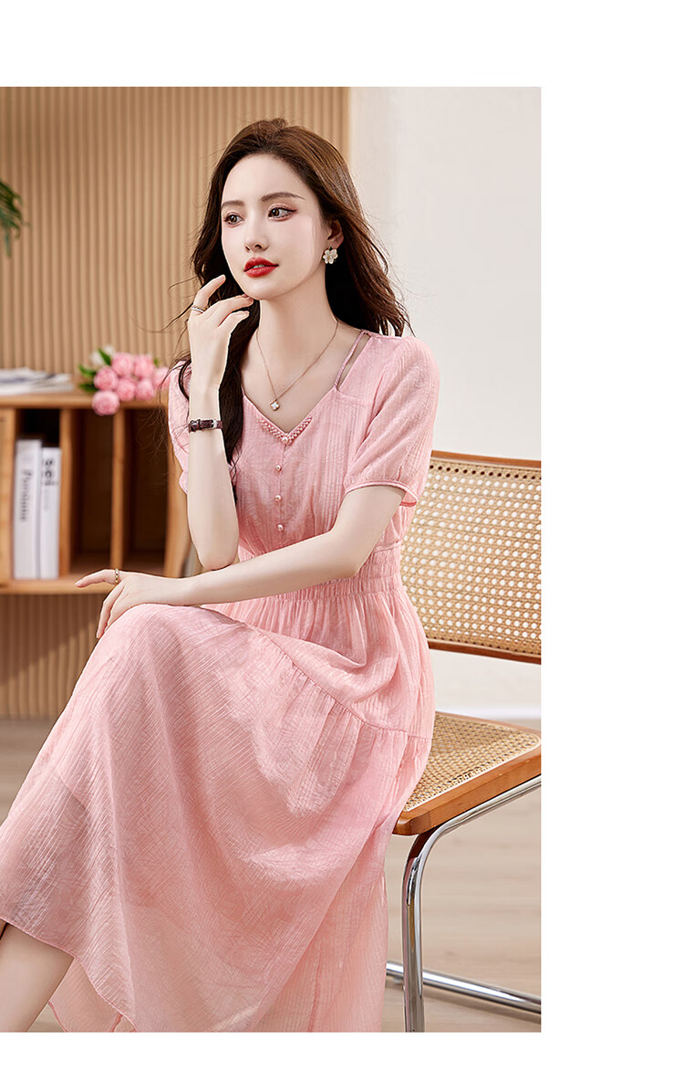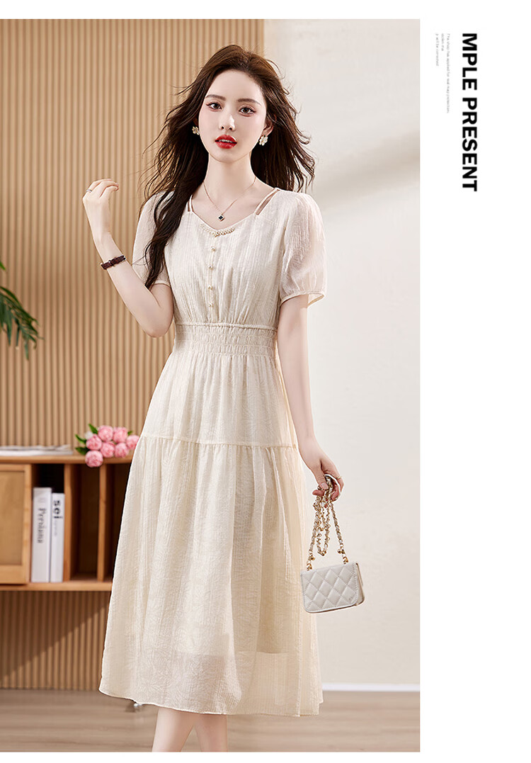 TJQ ​​​​Luxus-High-End-Markenkleid für Damen im neuen Sommerstil 2025, atemberaubender rosa bedruckter Taillen-Schlankheitsrock, cremefarbenes M empfohlen 105Jin Jin entspricht innerhalb von 0,5 kg