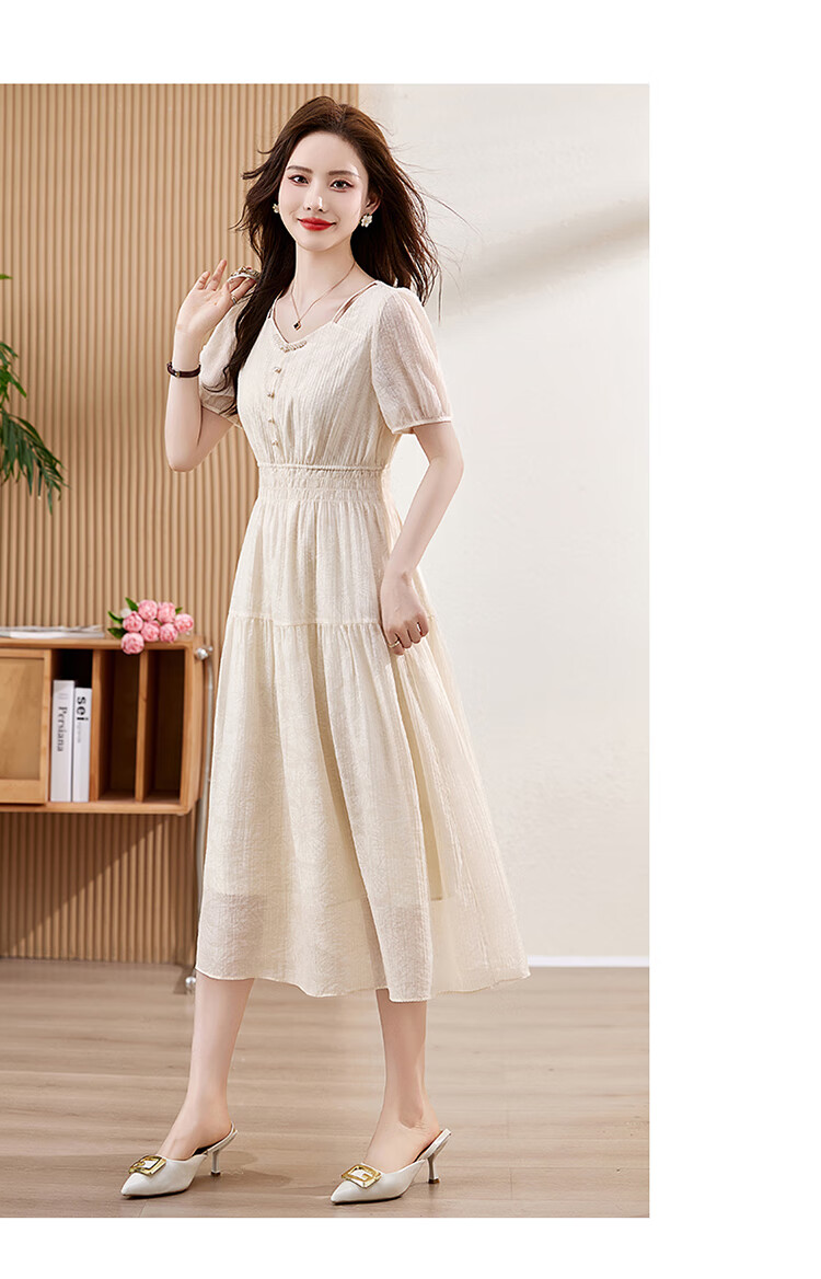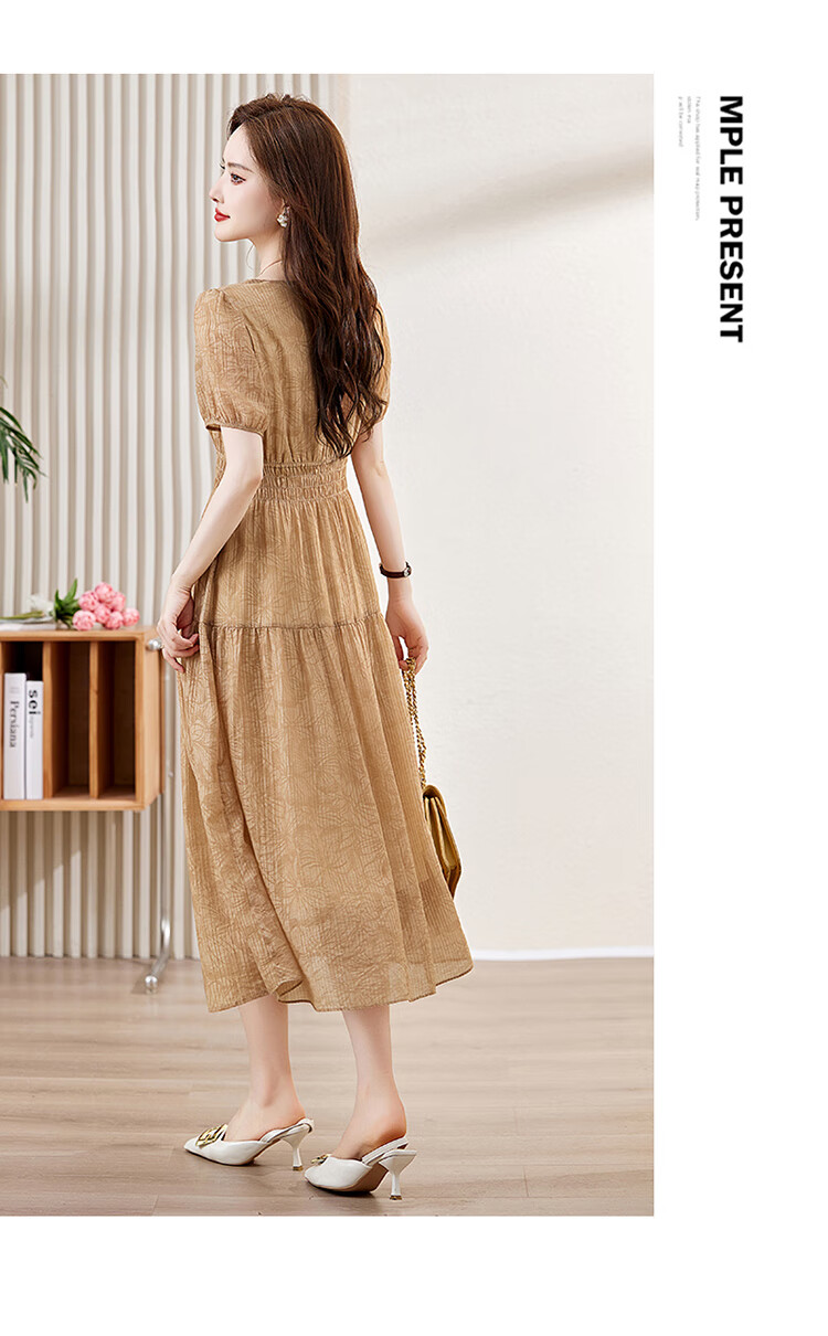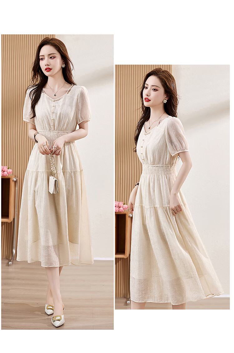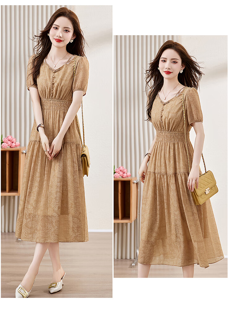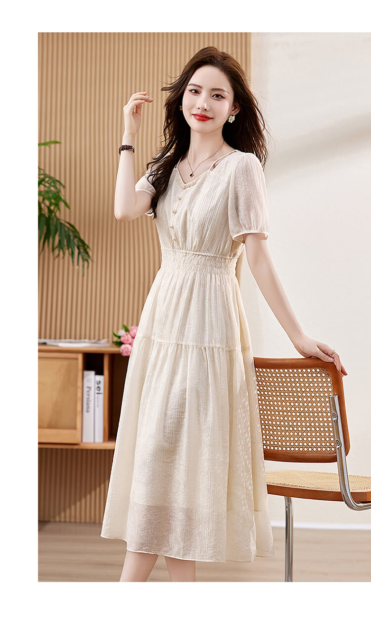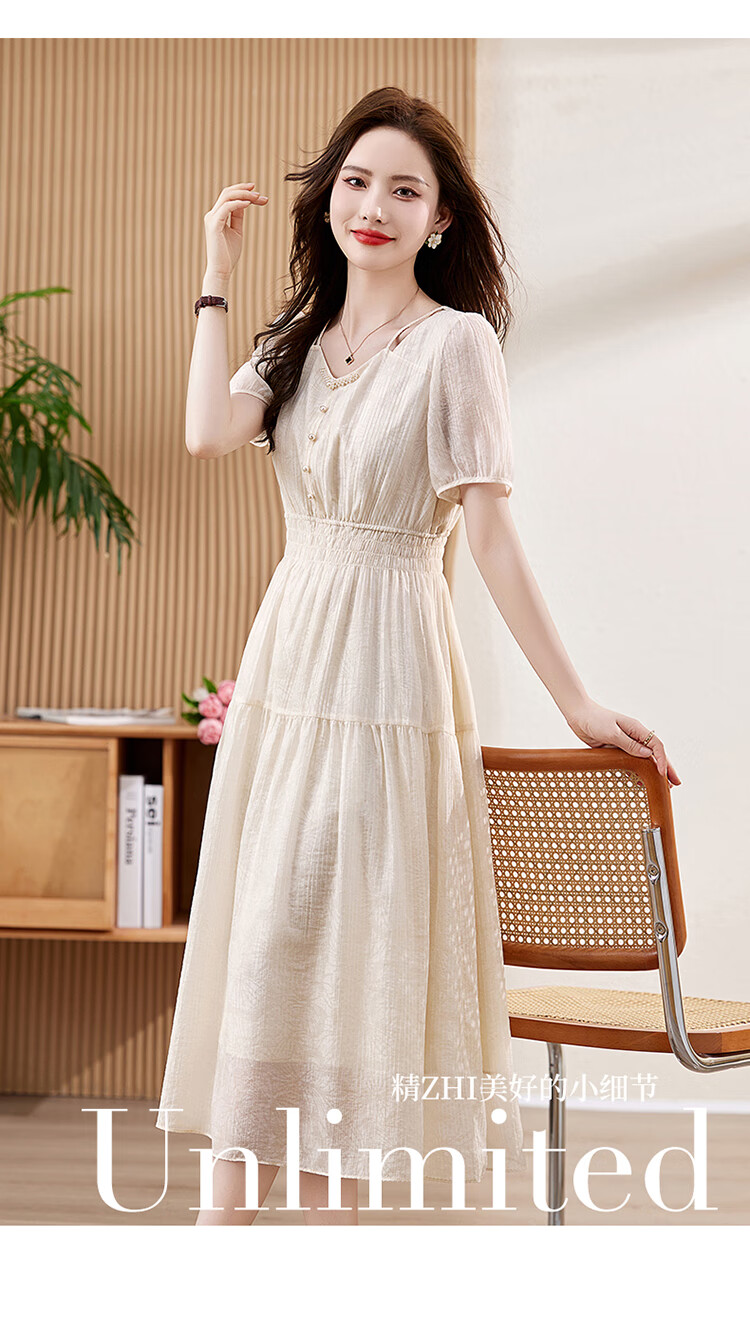 TJQ ​​​​Luxus-High-End-Markenkleid für Damen im neuen Sommerstil 2025, atemberaubender rosa bedruckter Taillen-Schlankheitsrock, cremefarbenes M empfohlen 105Jin Jin entspricht innerhalb von 0,5 kg
