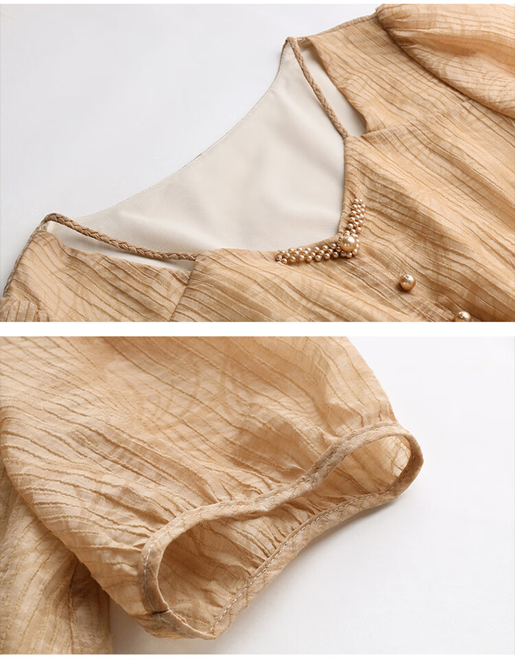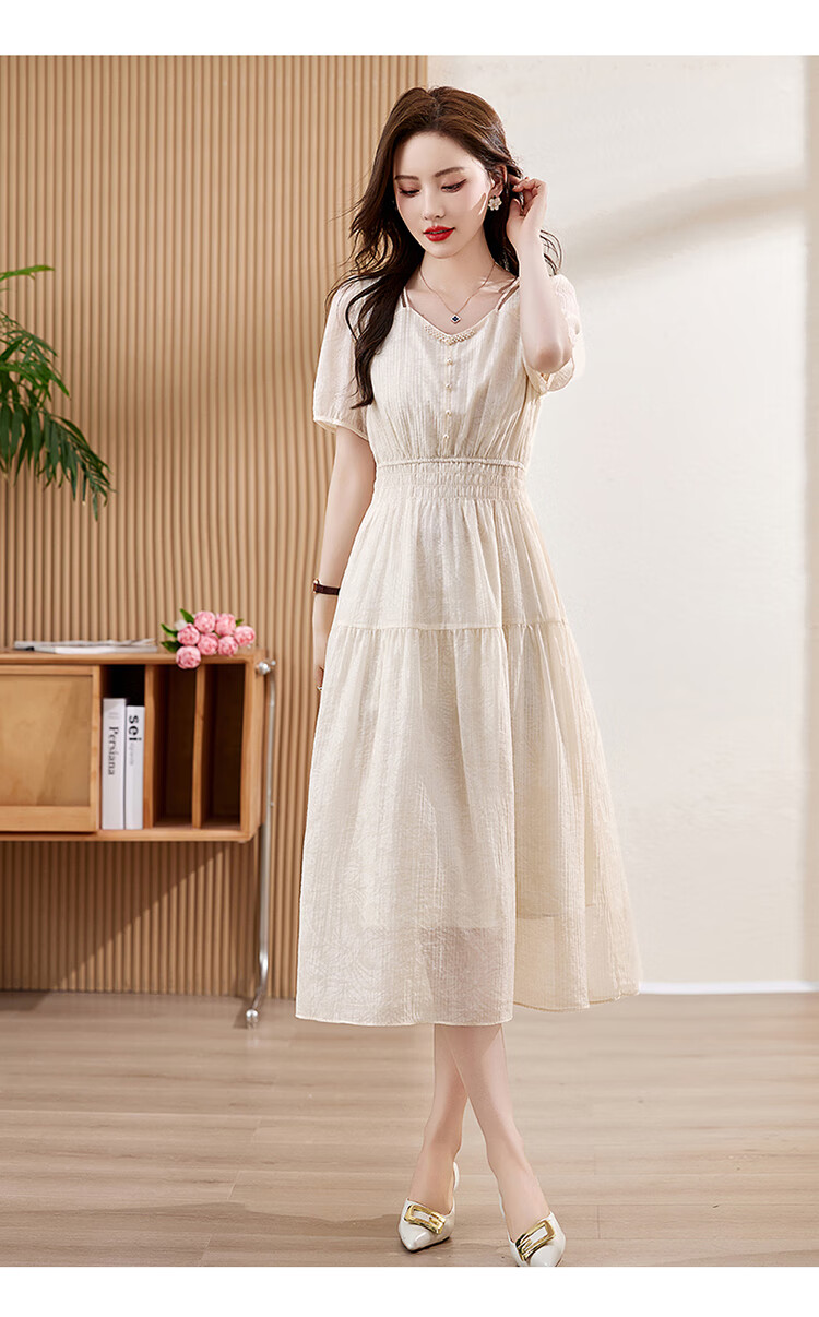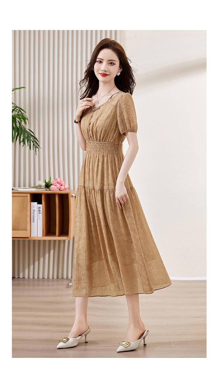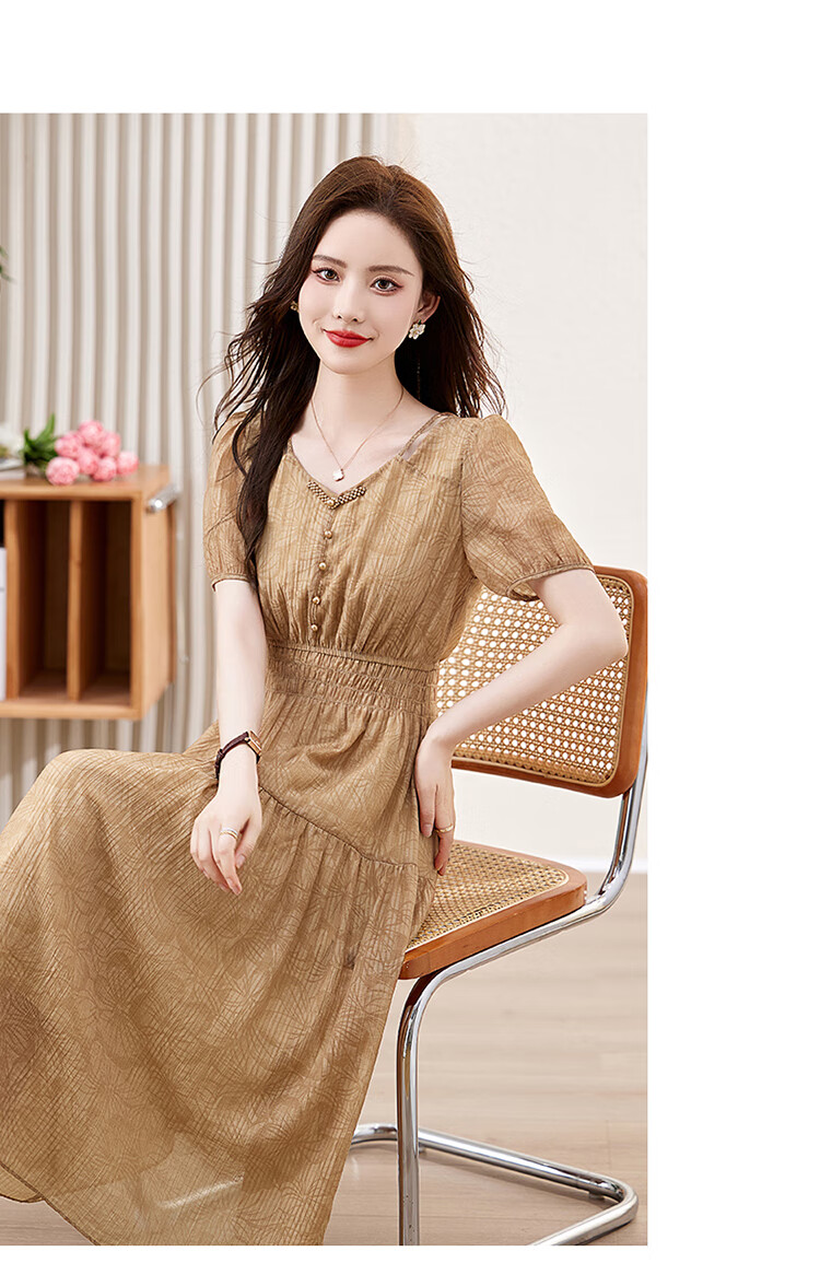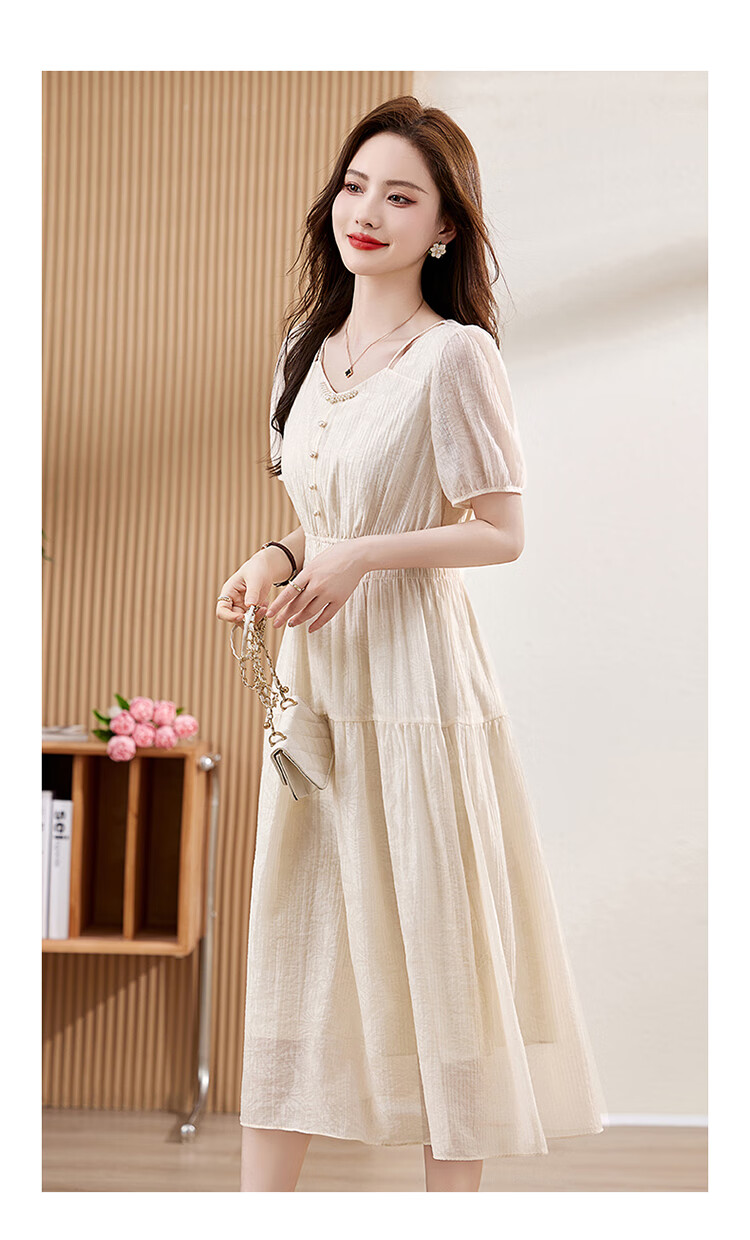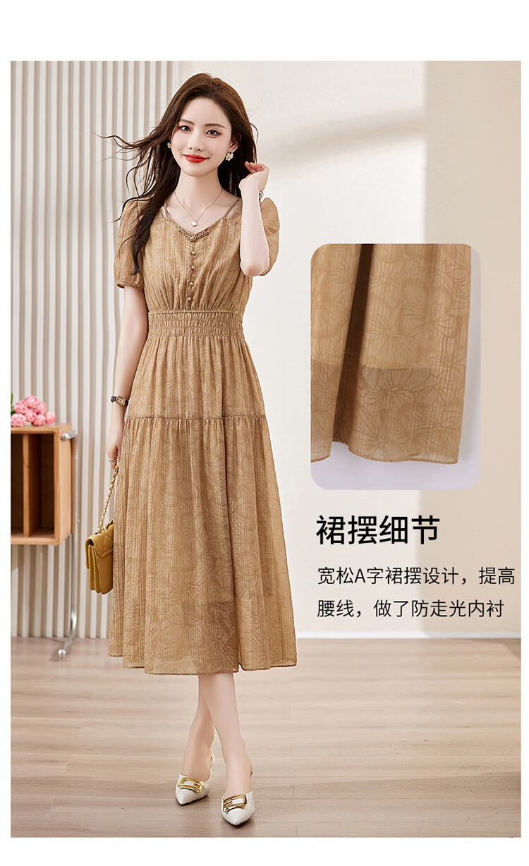 TJQ ​​​​Luxus-High-End-Markenkleid für Damen im neuen Sommerstil 2025, atemberaubender rosa bedruckter Taillen-Schlankheitsrock, cremefarbenes M empfohlen 105Jin Jin entspricht innerhalb von 0,5 kg