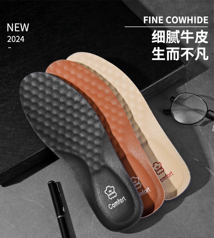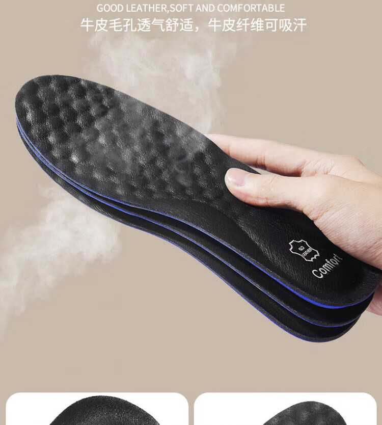 飒望德国品质鞋垫防臭防透气吸汗牛皮男士皮鞋专用运动柔软女舒适不累 【35-36码】2双装-黑色【牛皮吸