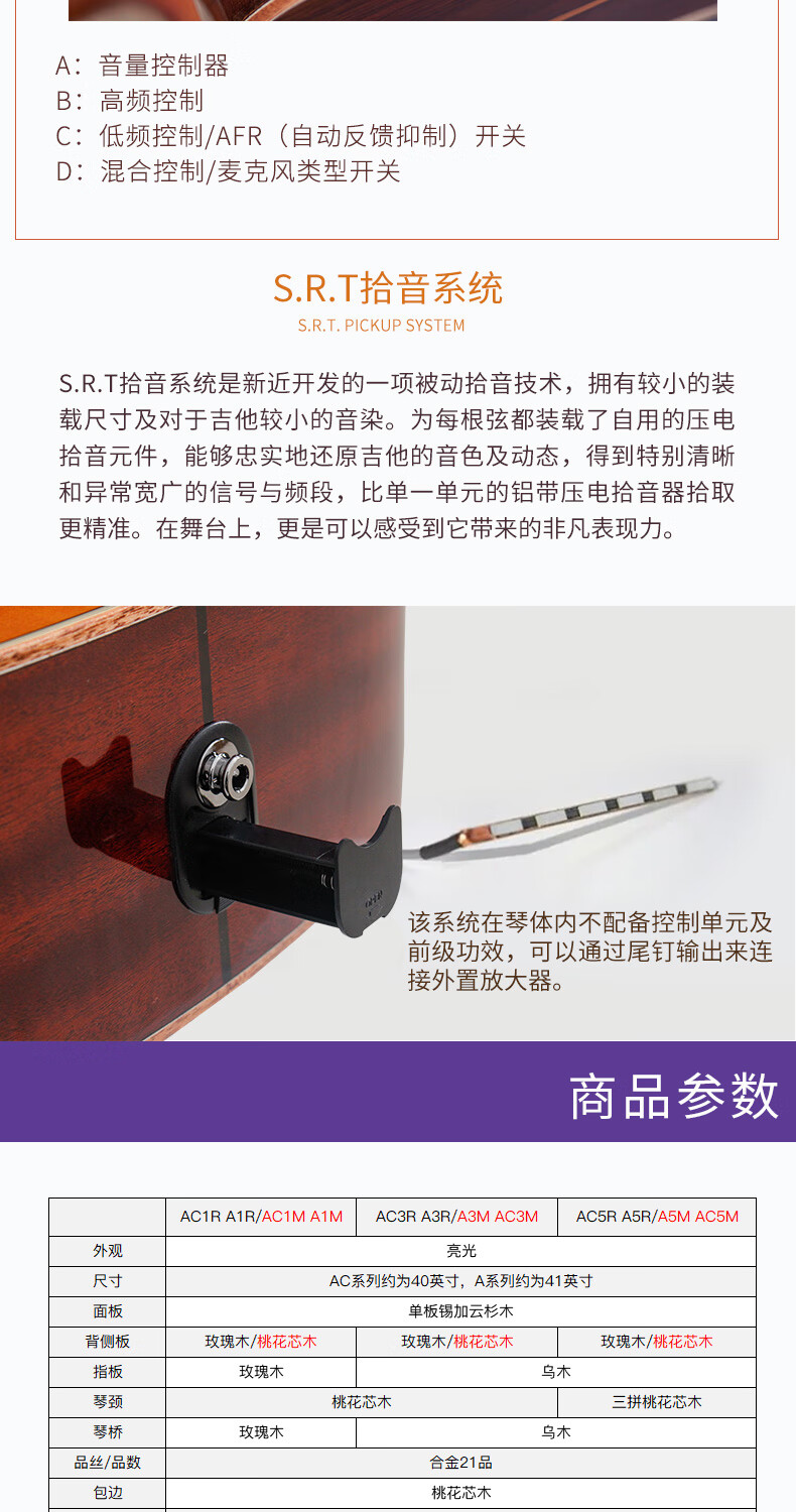 Yamaha (YAMAHA) guitarra folk caja eléctrica guitarra A1R/AC1R placa única A3R/AC3R/A5 guitarra individual completa 41 AC3R_TBS_ARE (individual completa) 40 pulgadas
