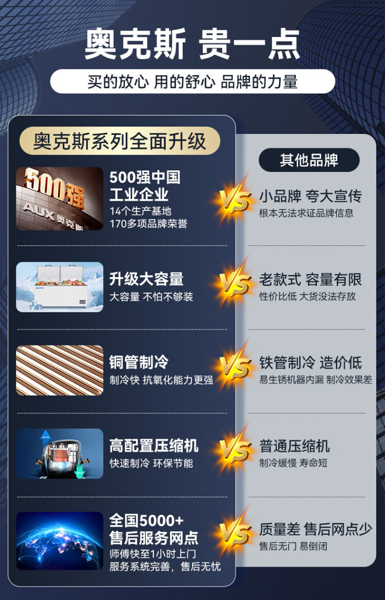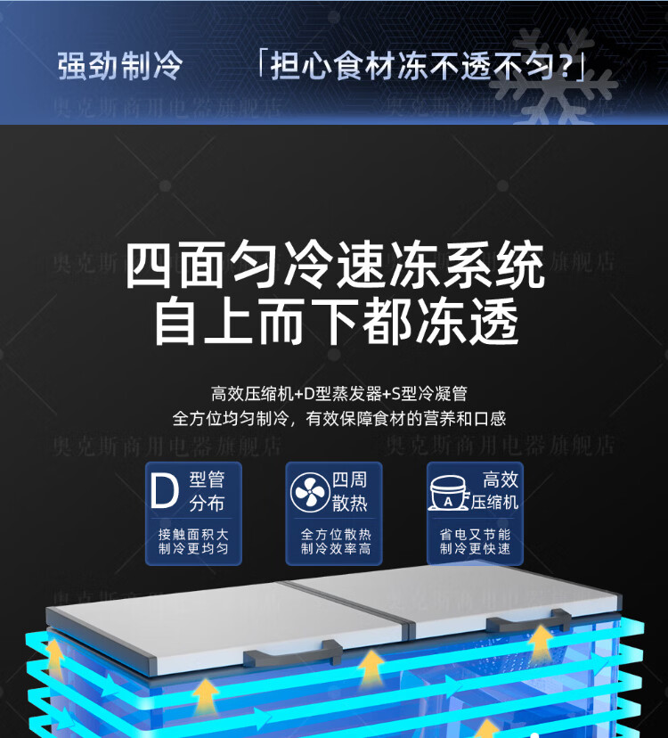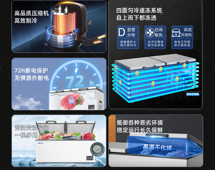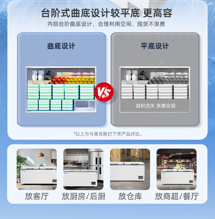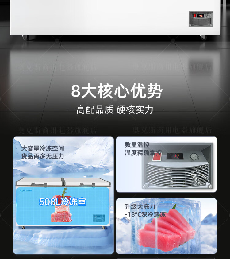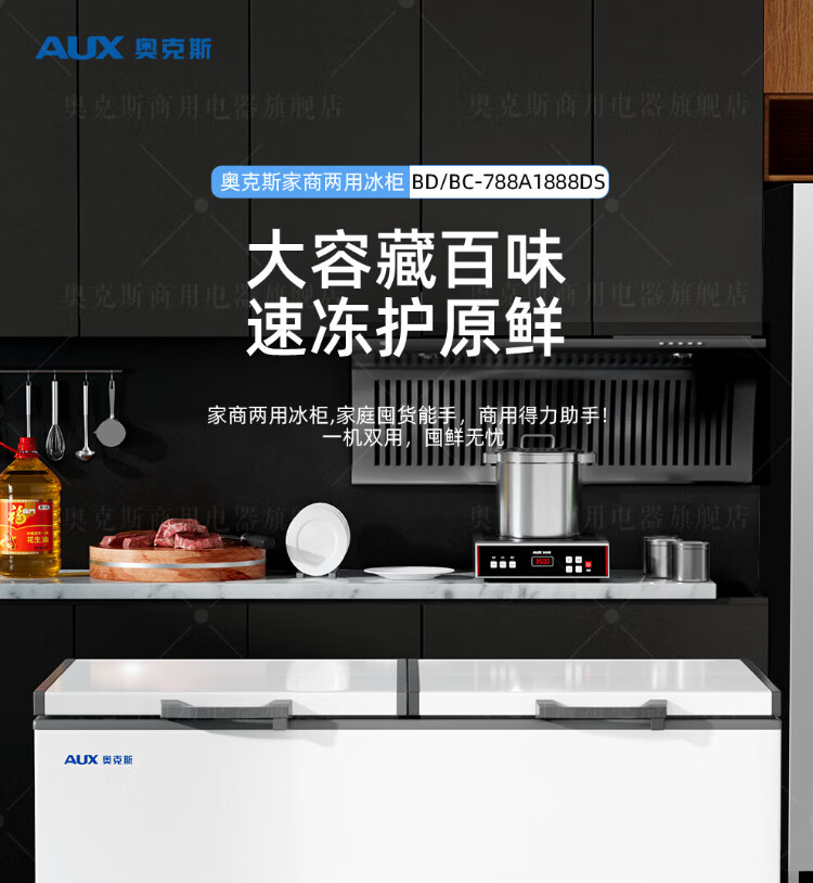 奥克斯(AUX)冰柜商用大容量全冷冻家用冷冻卧式冷柜单温冷冻冷藏冷冻柜顶开门300升以上双温商用大冰柜展示柜 【688单温】长1.65米 | 机械温控