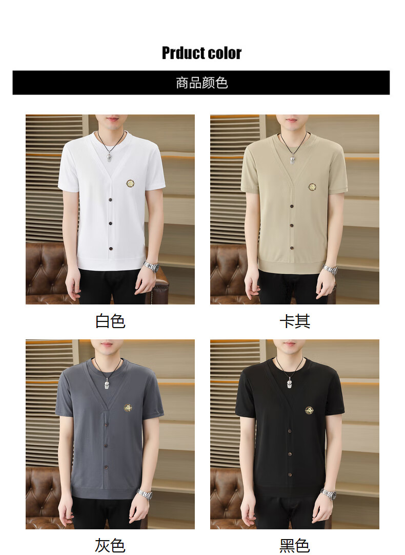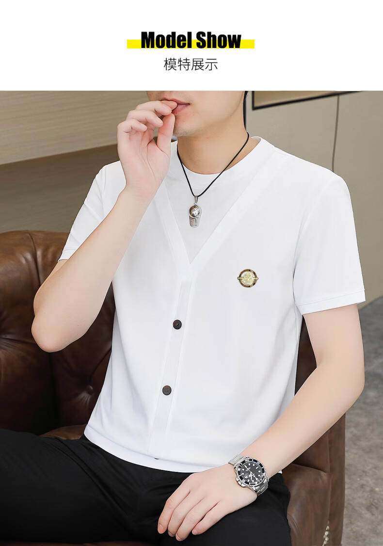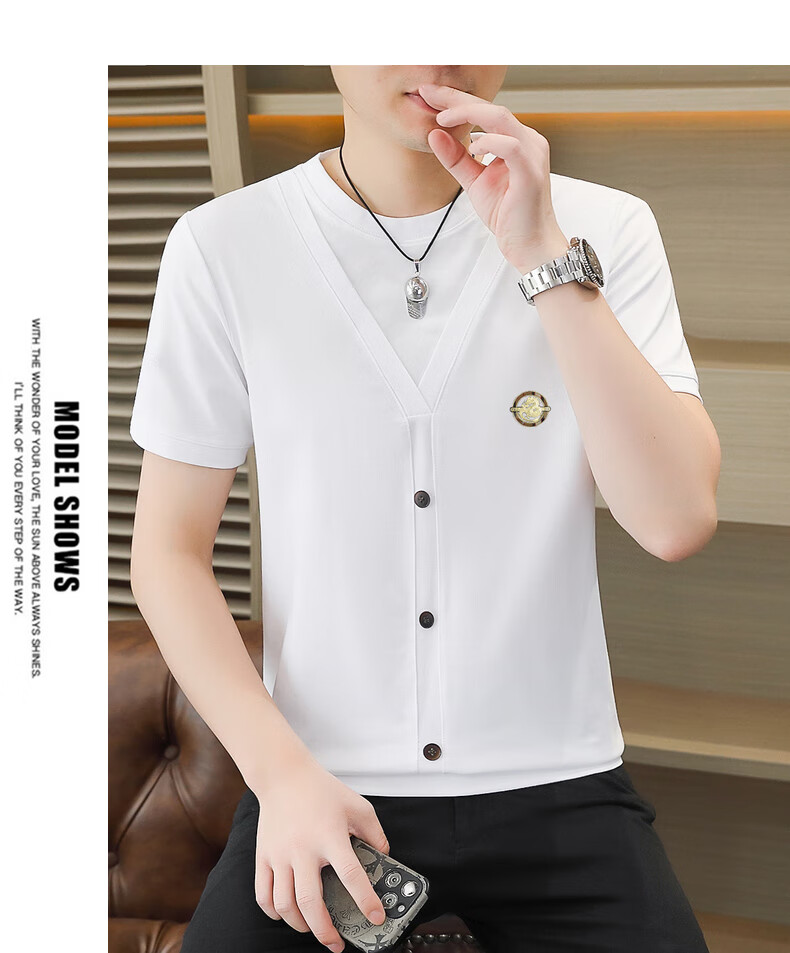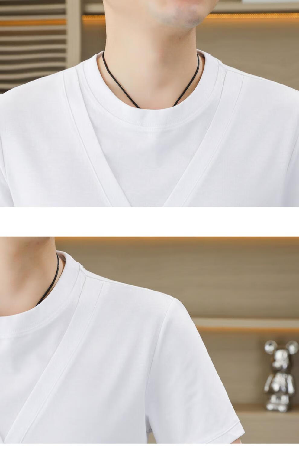 铠私乐(KMUYSL)夏季冰丝针织假两件短袖T恤男韩版修身痞帅凉感薄款半袖体恤上衣 6623白色 M (90-110斤)