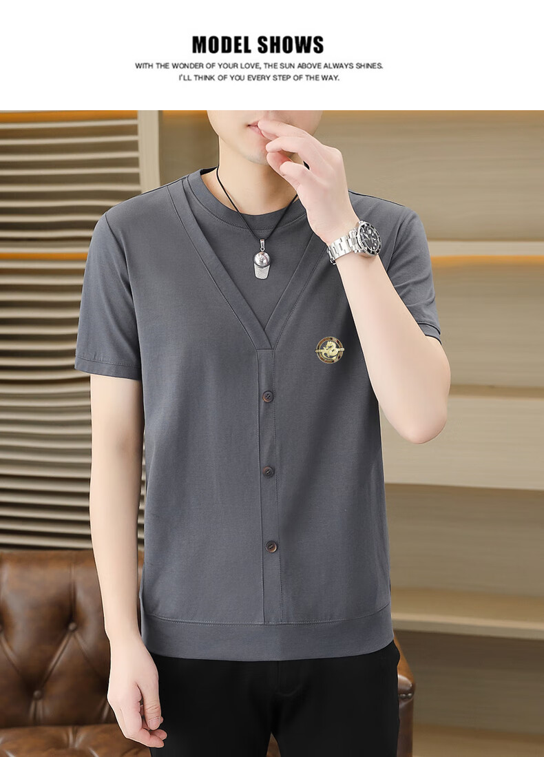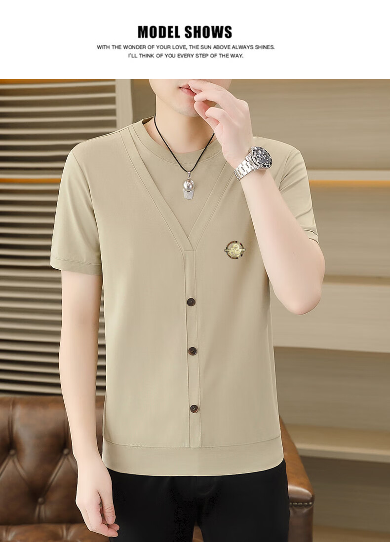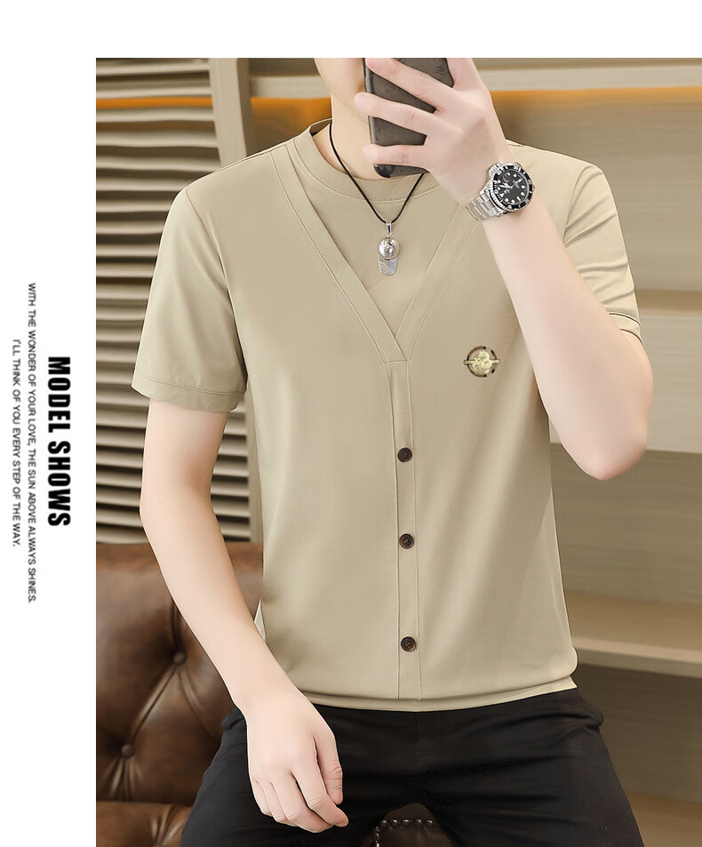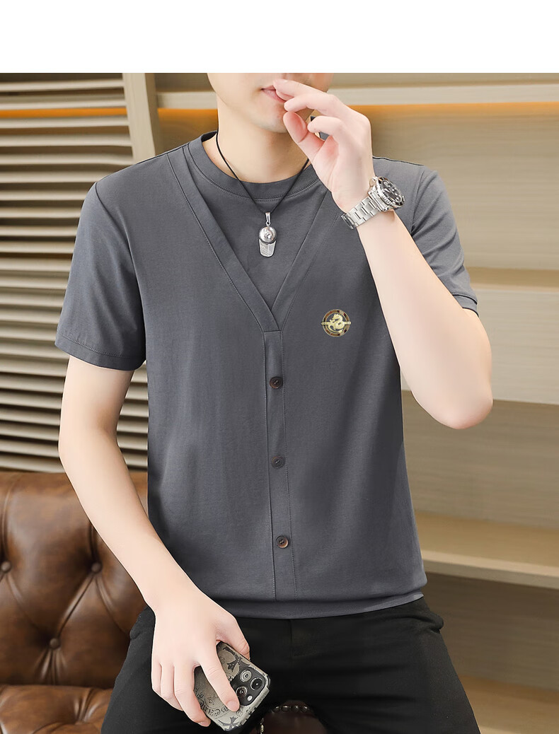 铠私乐(KMUYSL)夏季冰丝针织假两件短袖T恤男韩版修身痞帅凉感薄款半袖体恤上衣 6623白色 M (90-110斤)