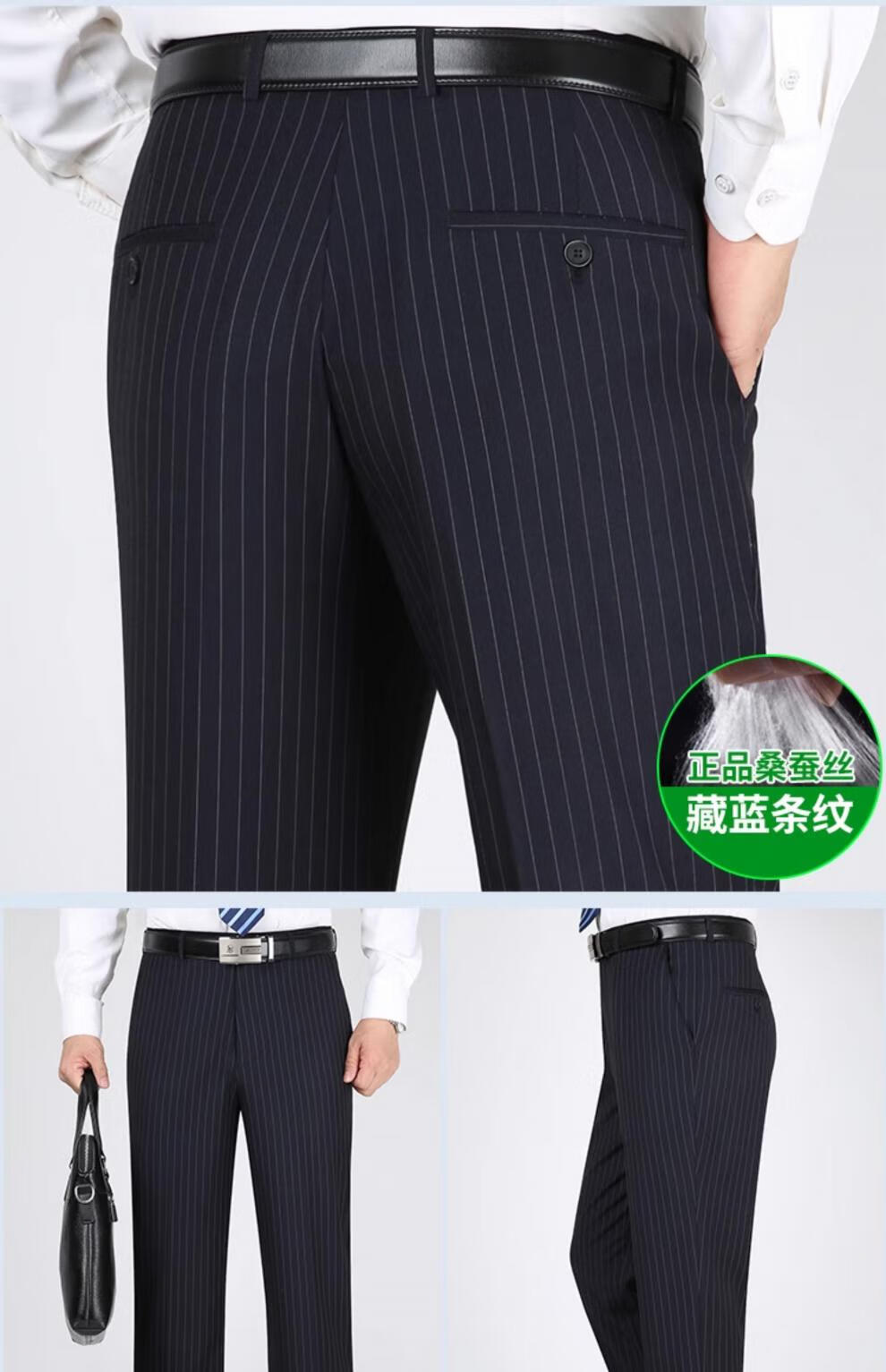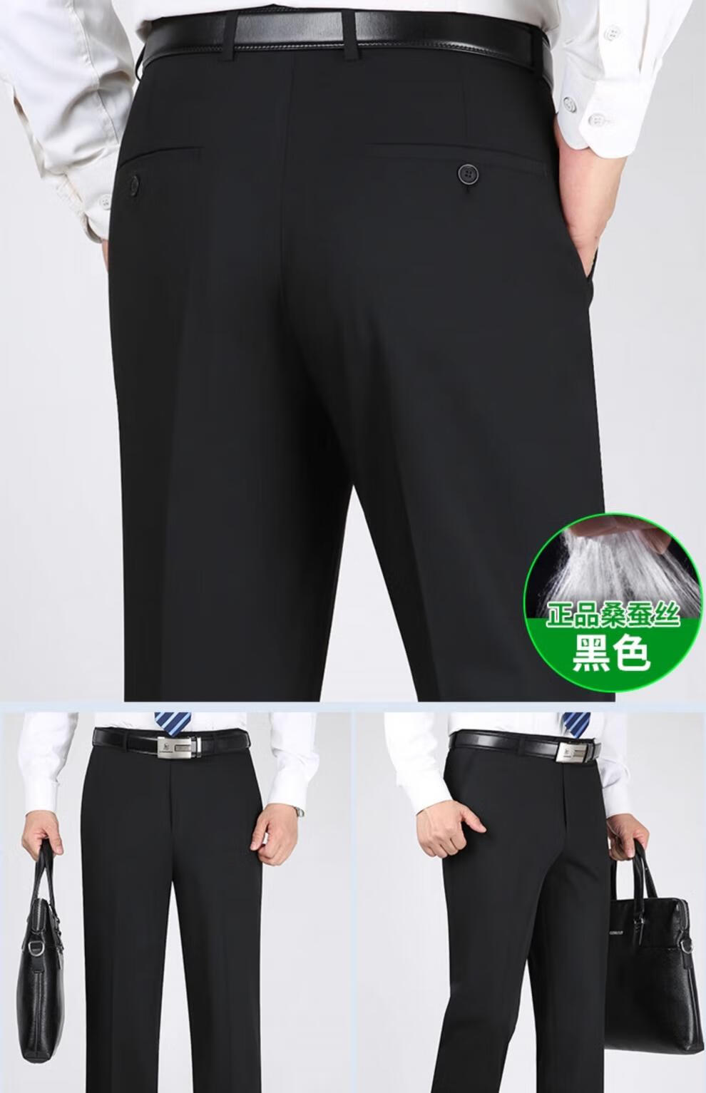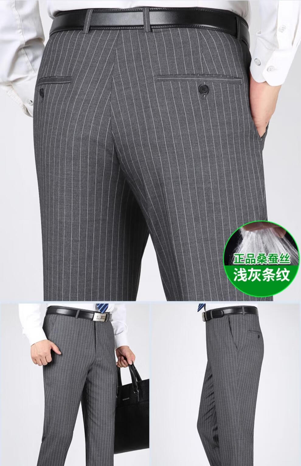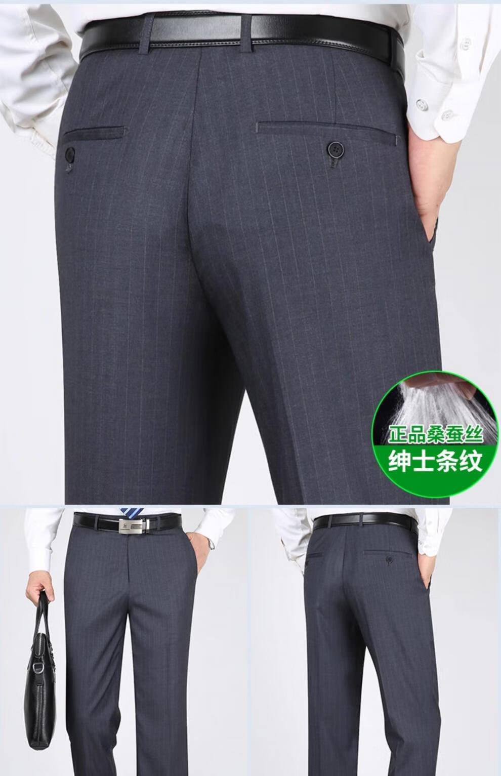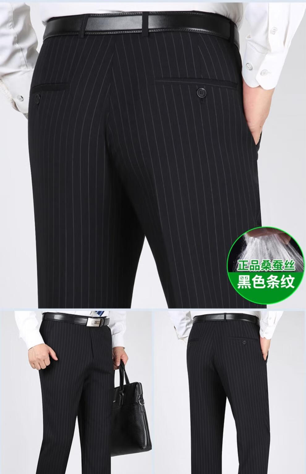Hengyuanxiang 2025 summer middle-aged men's mulberry silk trousers thin middle-aged casual men's trousers loose dad suit trousers mulberry silk 9207-black stripes thin 29 2 feet 2 waist