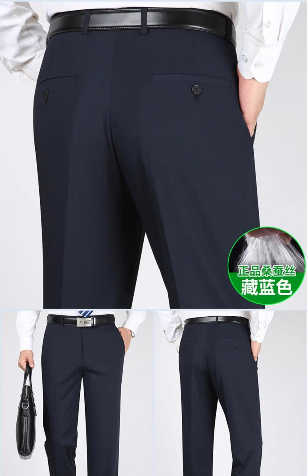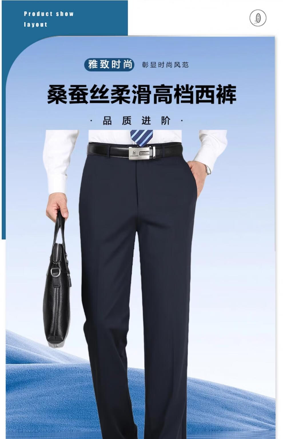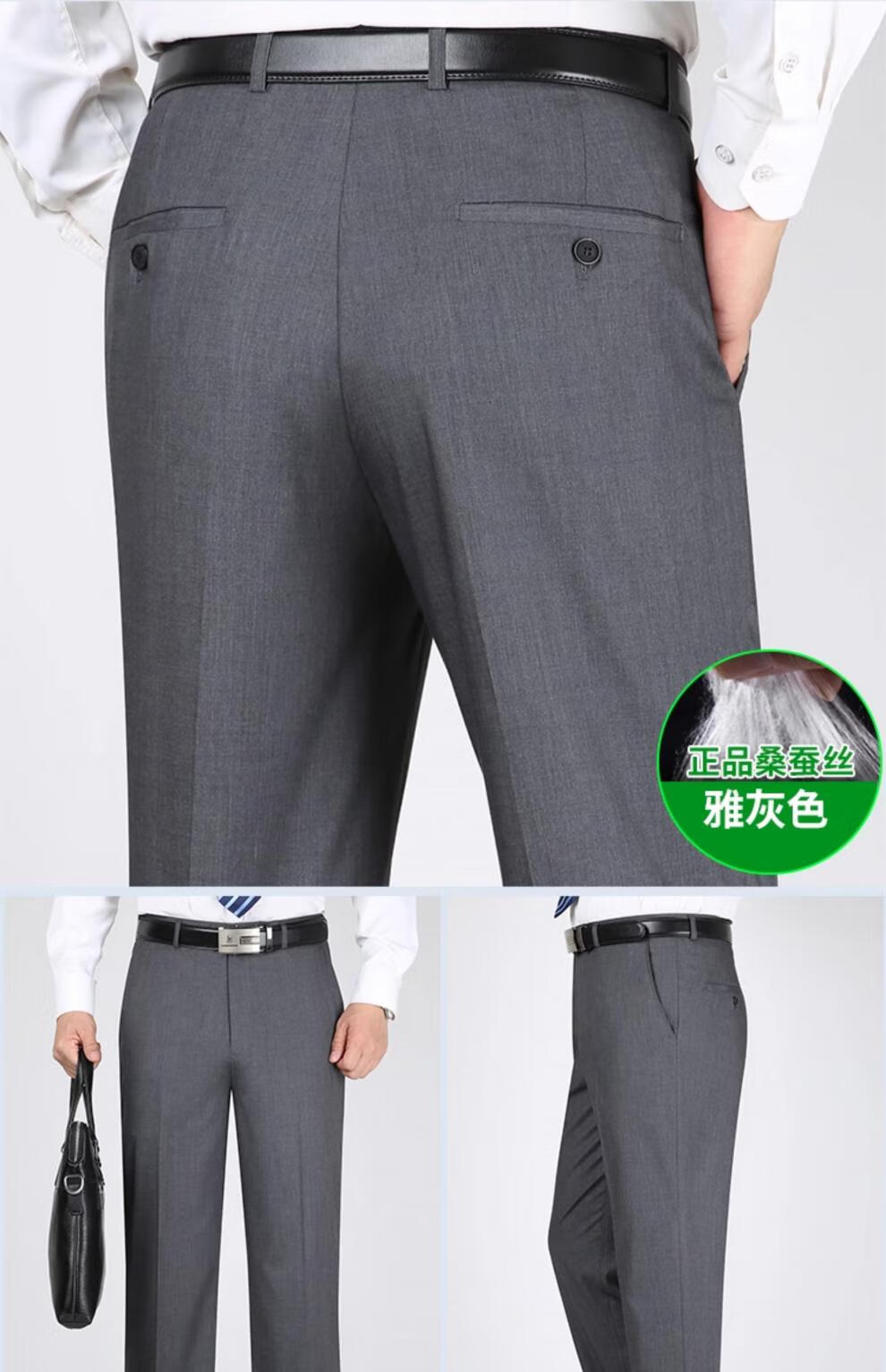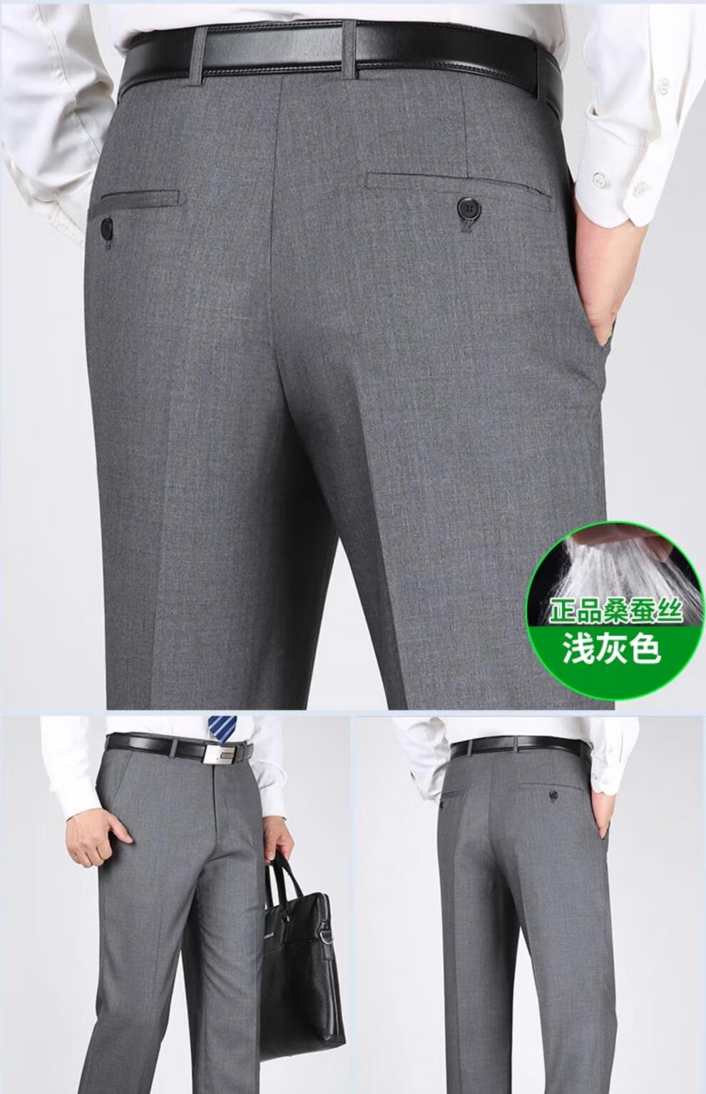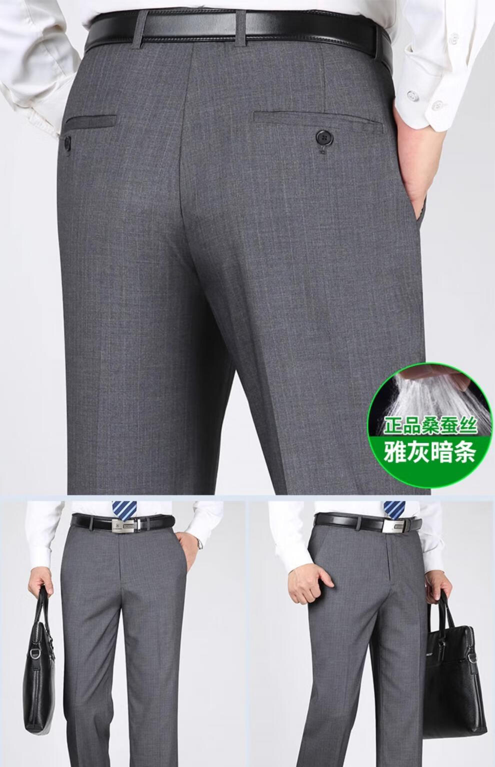 Hengyuanxiang 2025 summer middle-aged men's mulberry silk trousers thin middle-aged casual men's trousers loose dad suit trousers mulberry silk 9207-black stripes thin 29 2 feet 2 waist